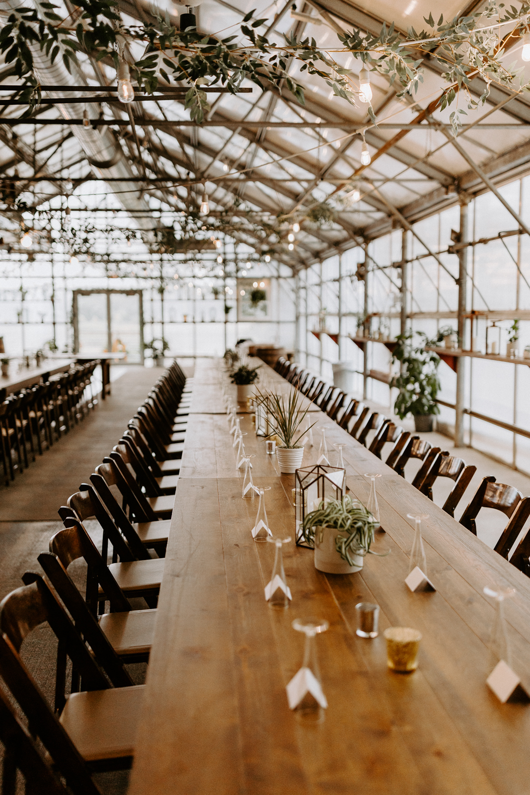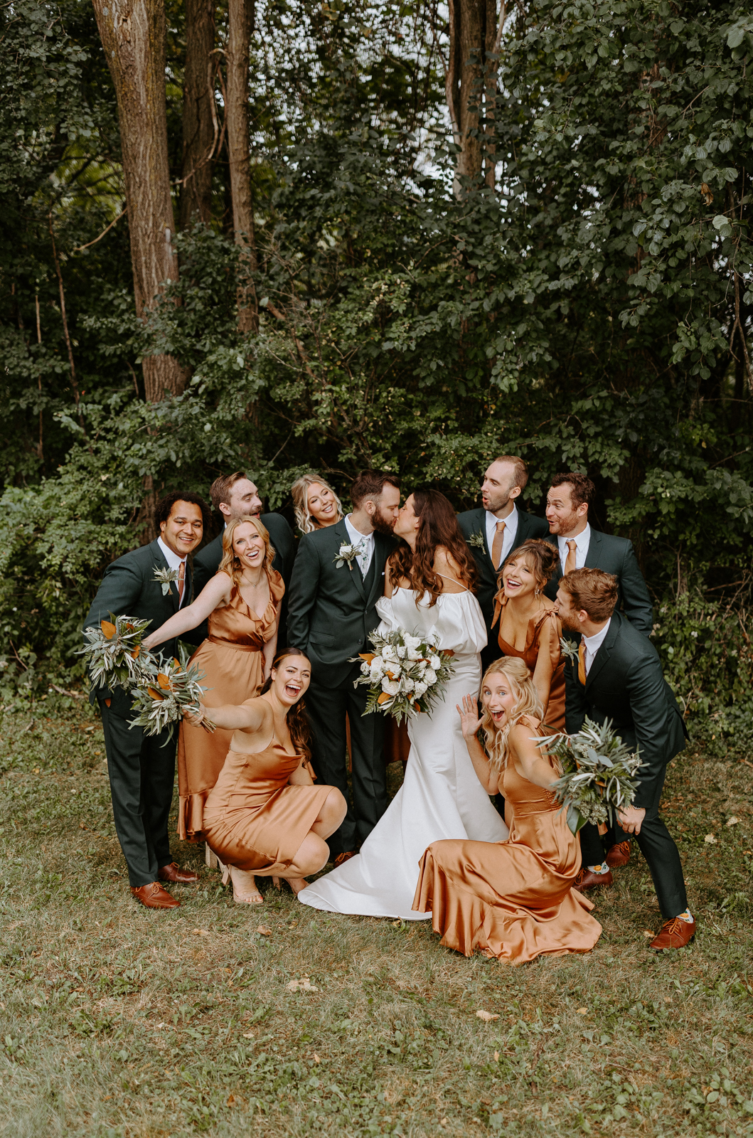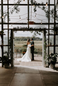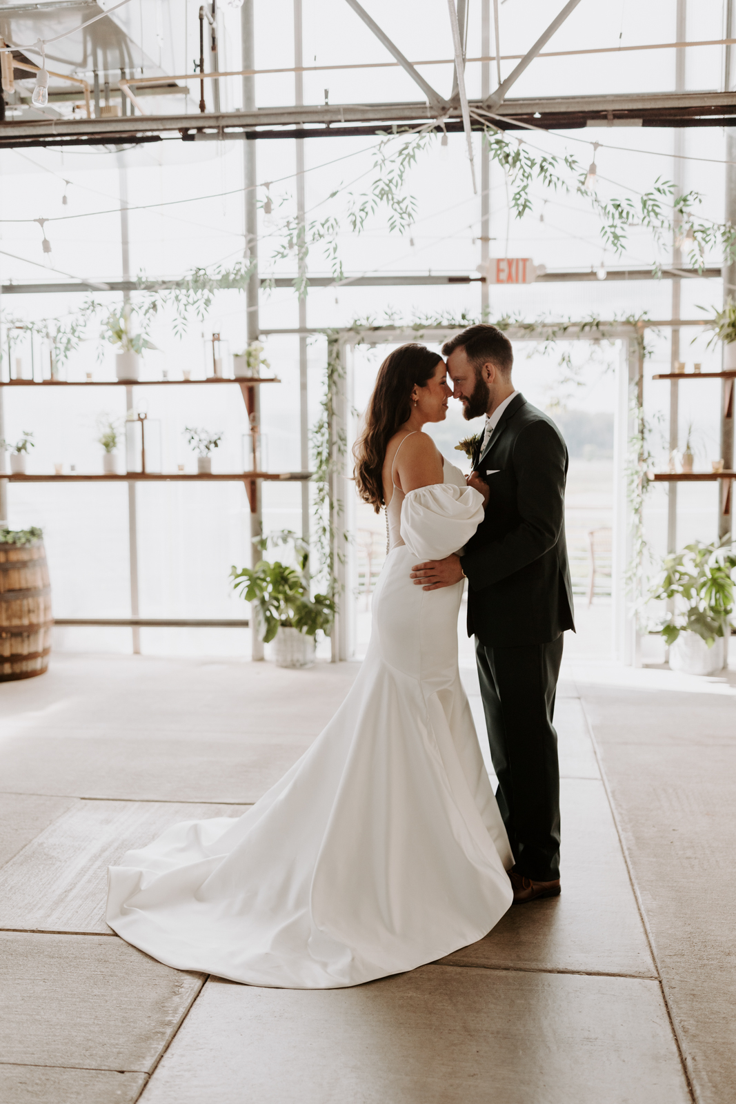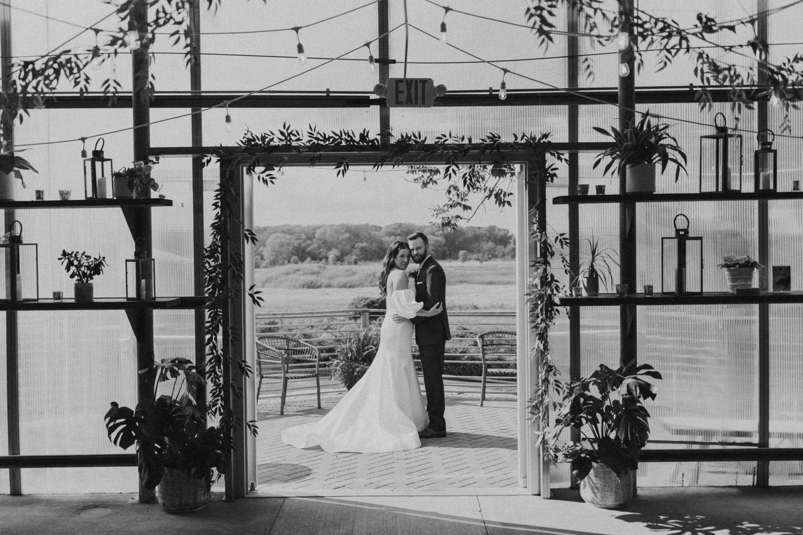 Chloe and Devin celebrated the start of their lifelong love story against the backdrop of The Greenhouse at Bittersweet in La Crosse, Wisconsin, brought to life with lush and whimsical greenery around every corner. Following the earthy themes, the day truly felt like a garden party, and the couple felt right at home with the venue’s welcoming, down-to-earth farmhouse feel. Gorgeous florals, also the work of Bittersweet Flower Market, had a subtle and classic feel with an abundance of greenery and magnolia leaves to match the shimmering, satin copper bridesmaid dresses.