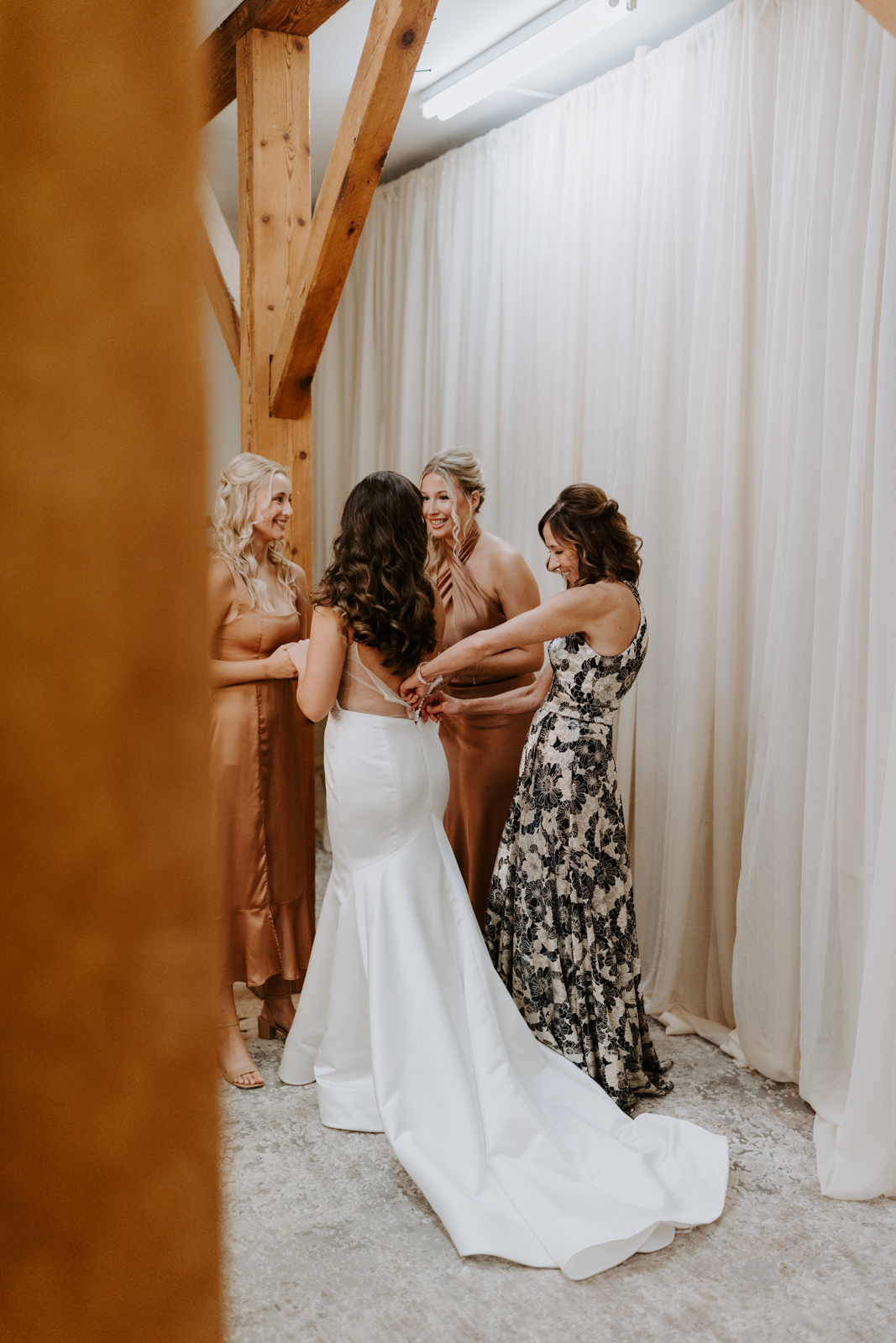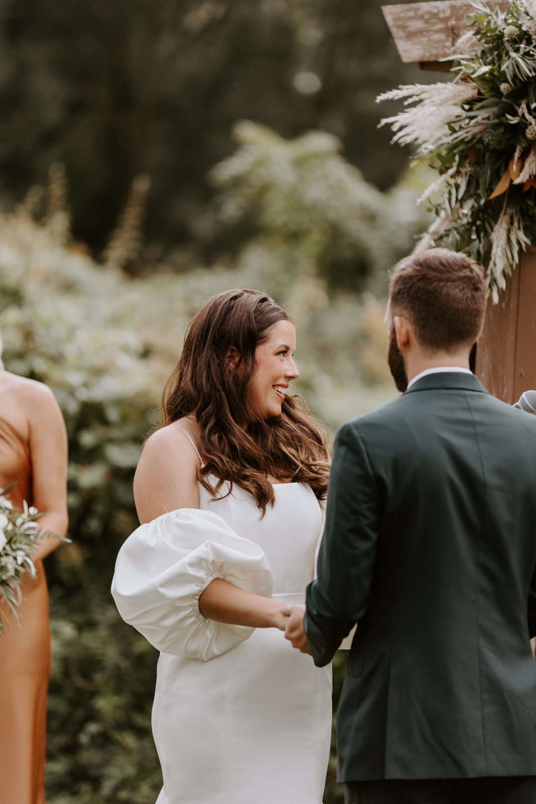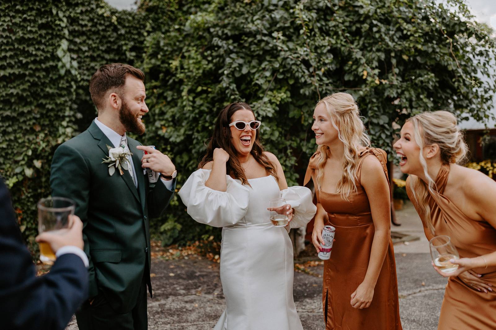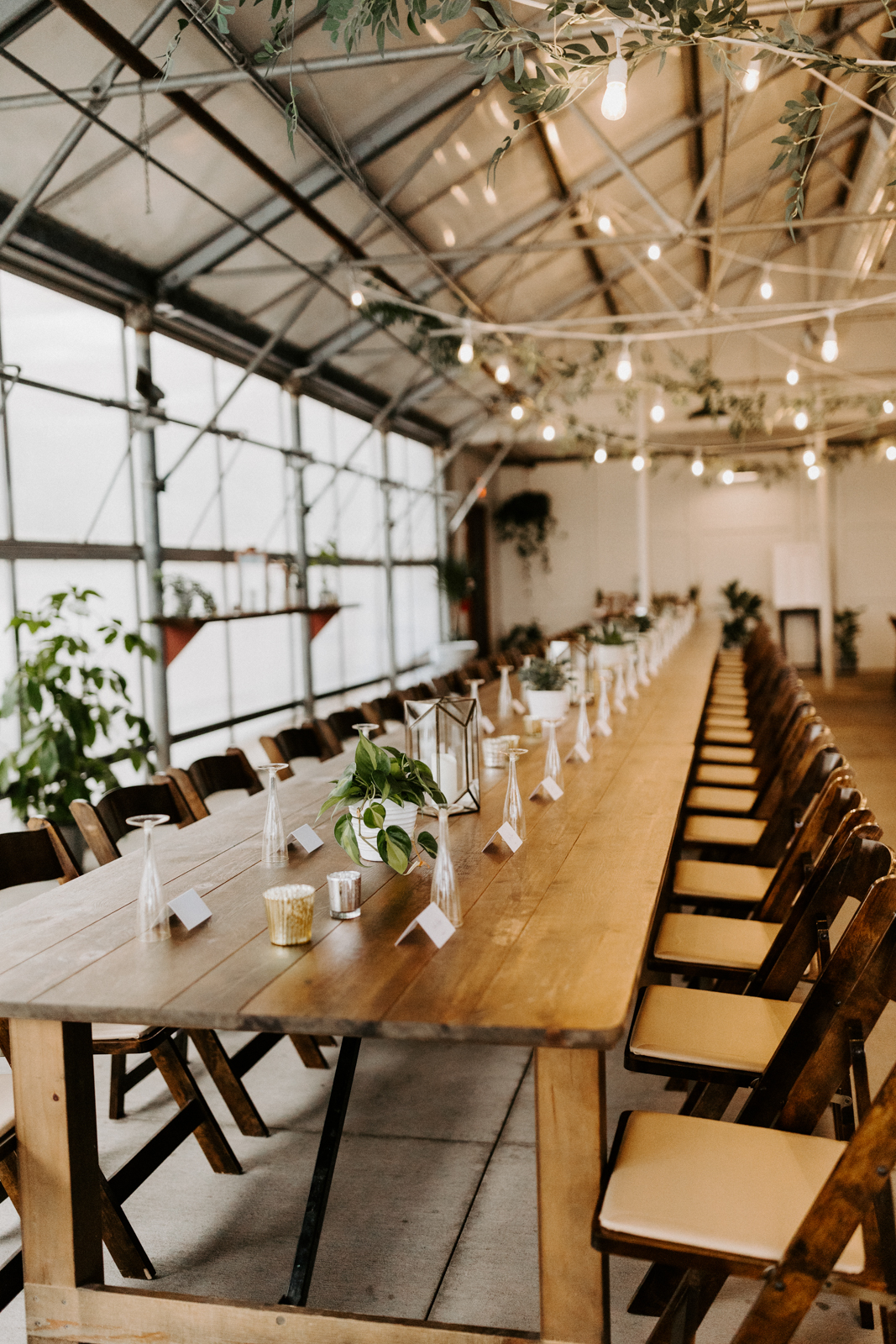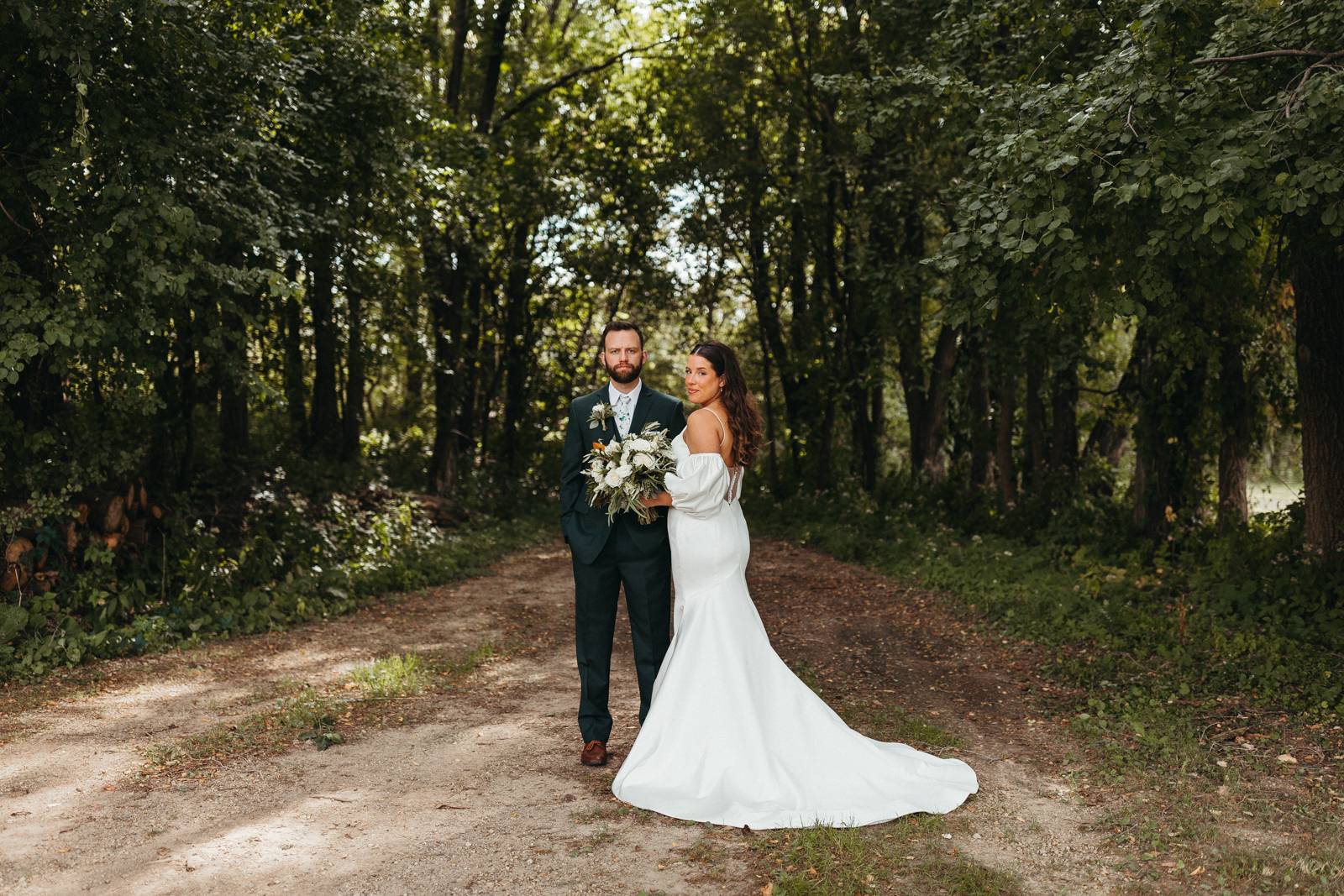 Chloe and Devin celebrated the start of their lifelong love story against the backdrop of The Greenhouse at Bittersweet in La Crosse, Wisconsin, brought to life with lush and whimsical greenery around every corner. Following the earthy themes, the day truly felt like a garden party, and the couple felt right at home with the venue’s welcoming, down-to-earth farmhouse feel. Gorgeous florals, also the work of Bittersweet Flower Market, had a subtle and classic feel with an abundance of greenery and magnolia leaves to match the shimmering, satin copper bridesmaid dresses.