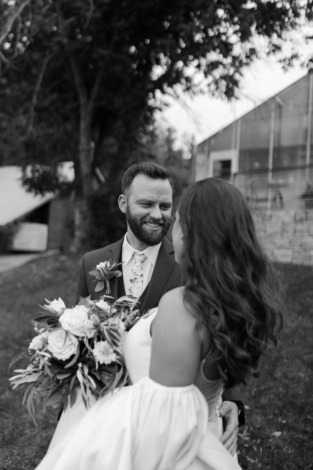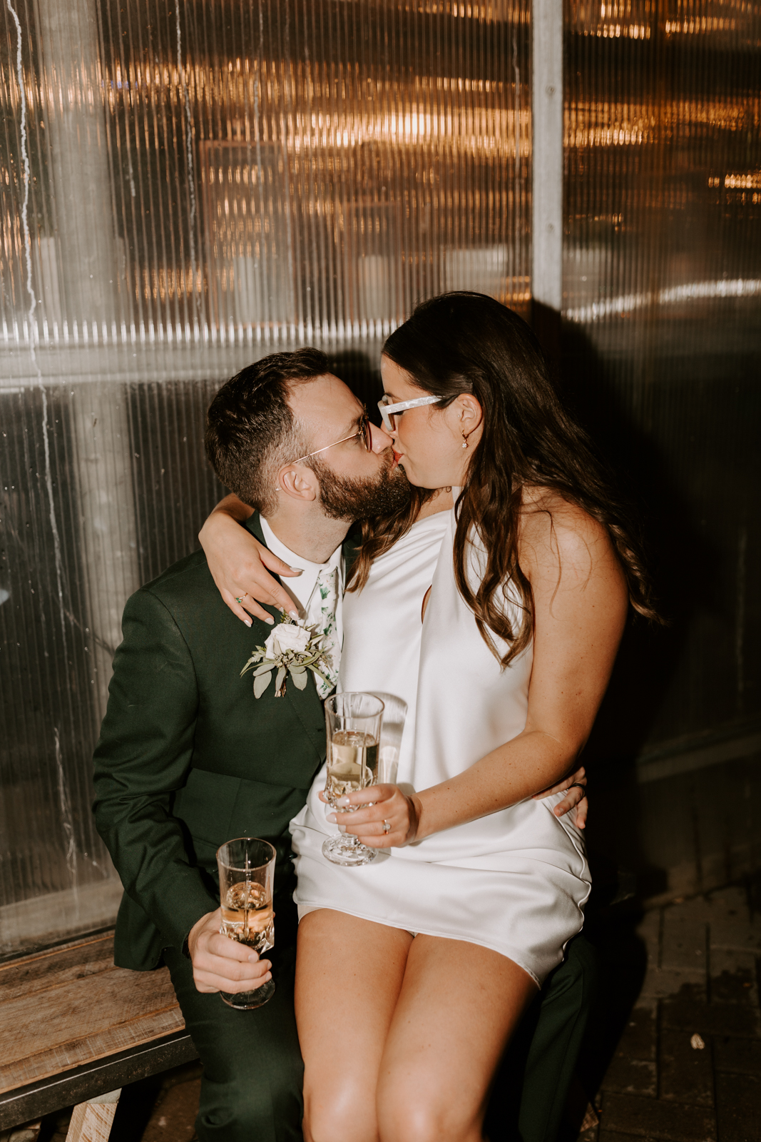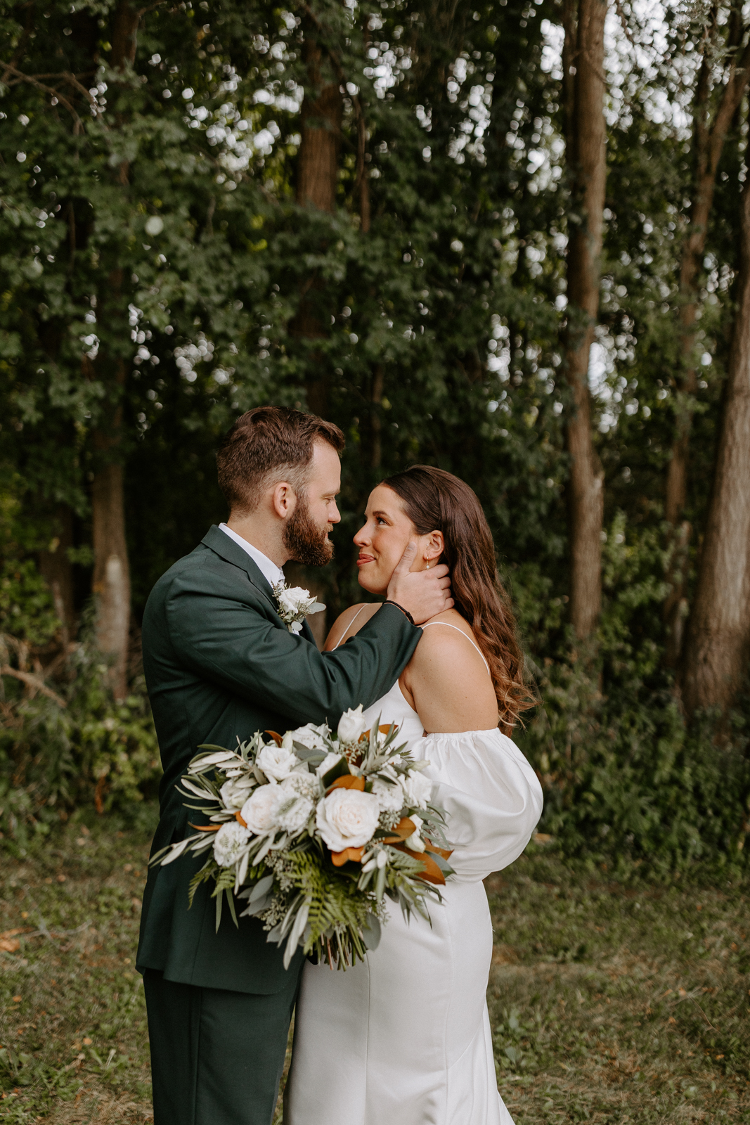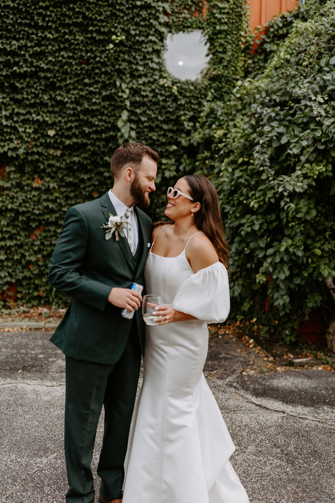 Chloe and Devin celebrated the start of their lifelong love story against the backdrop of The Greenhouse at Bittersweet in La Crosse, Wisconsin, brought to life with lush and whimsical greenery around every corner. Following the earthy themes, the day truly felt like a garden party, and the couple felt right at home with the venue’s welcoming, down-to-earth farmhouse feel. Gorgeous florals, also the work of Bittersweet Flower Market, had a subtle and classic feel with an abundance of greenery and magnolia leaves to match the shimmering, satin copper bridesmaid dresses.