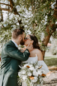 The couple paid tribute to Devin’s late father with a picture of Devin and his father inside his tie, and even a stitched handwritten message on his handkerchief that sat over Devin’s heart throughout the wedding. La Crosse is a special place for these two, as Devin proposed to Chloe here during a road trip the two took to avoid going "stir crazy" in 2020. While planning their special day, they found their perfect venue, and the rest, as they say, is history! Experience all the boho-chic garden party inspiration below!