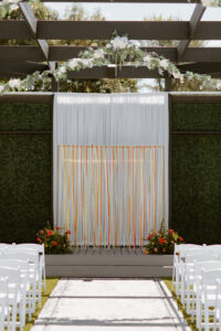 This brand-new event space boasted a private outdoor patio and bar, a serene courtyard for the ceremony enclosed by lush boxwood walls, and an elegant neutral-toned indoor reception area. Among Celebration’s trio of venues, this beautiful new space stood out as the ideal choice to host this warm and colorful wedding day!