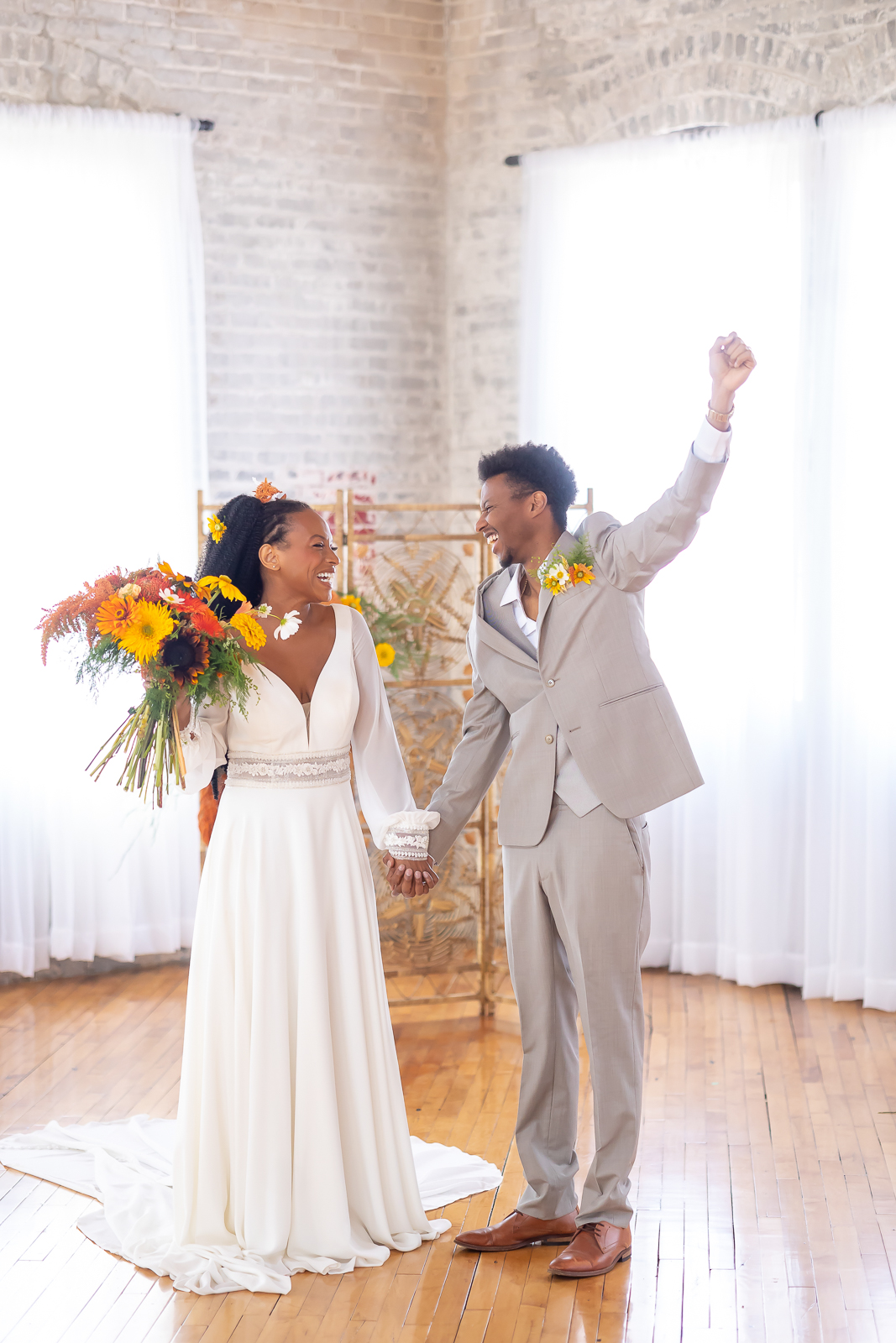 Featuring Emily Jean Photography, BP Creationery, Orange Door Weddings, Brides N’ Belles, Melanin Beauty Bar, AliLou Events, Hoffland Films, Southern Aprons, and BBJ La Tavola, come fall in love with all the happy and eclectic details below! Can you dig it? ‘Cause we sure can.