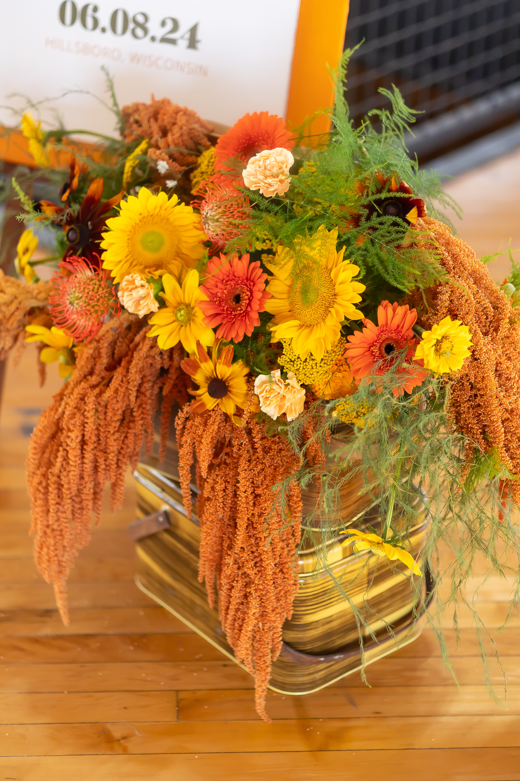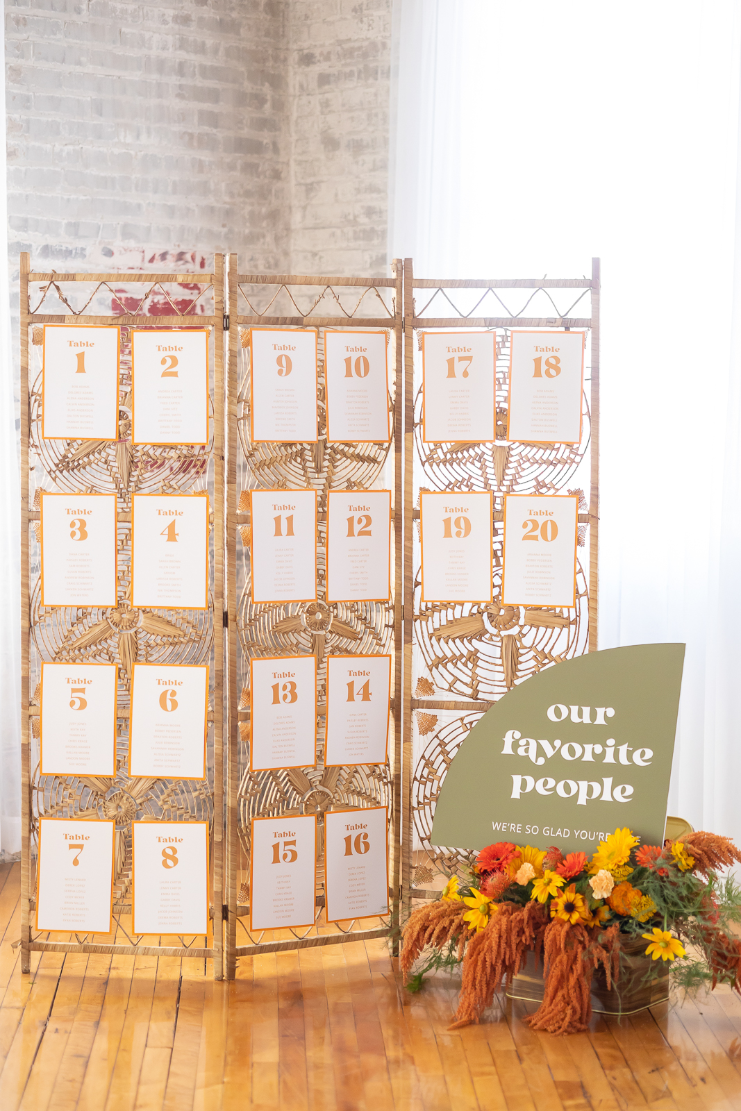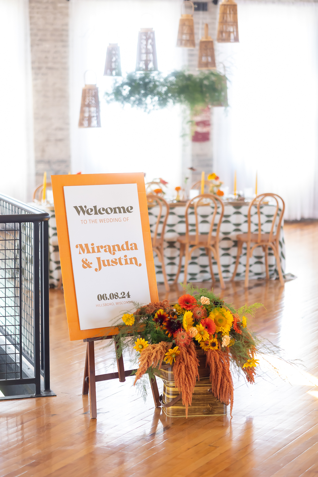 Bring on the flower power, free-spirited boho vibes, and all the funky charm of the 1970s in this cheerful wedding design at Willow + Oak in Hillsboro, Wisconsin. With coordination, design, planning, and floral by Skies the Limit Events, this inspiring celebration was overflowing with peace, love, and vibrant orange and yellow hues ready to make you say, “Let’s get groovy!”