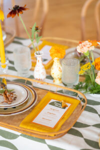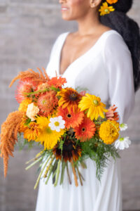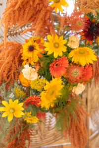 Skies the Limit Events brought an elevated bohemian style and all the ’70s-inspired vibes to life in this inspiring celebration at Willow + Oak. They artfully arranged vivid blooms in warm, vibrant hues that evoked a lively, free-spirited feel to the space and painted the neutral venue with color.