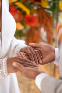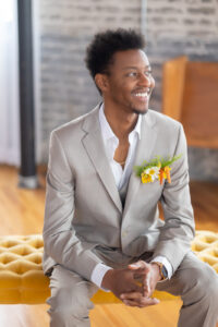 Melanin Beauty Bar brought the bride’s whole look together by crafting not one but two stunning hairstyles, both adorned with flowers that matched the floral theme of the celebration. They designed a glowing, golden makeup look for our bride to enhance her natural beauty while adding a touch of enchantment to her wedding day look.