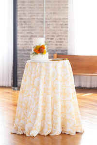 Mirroring the half-circle-patterned linens found on the reception table, a cake from Southern Aprons was a simple yet impactful display that matched all th
