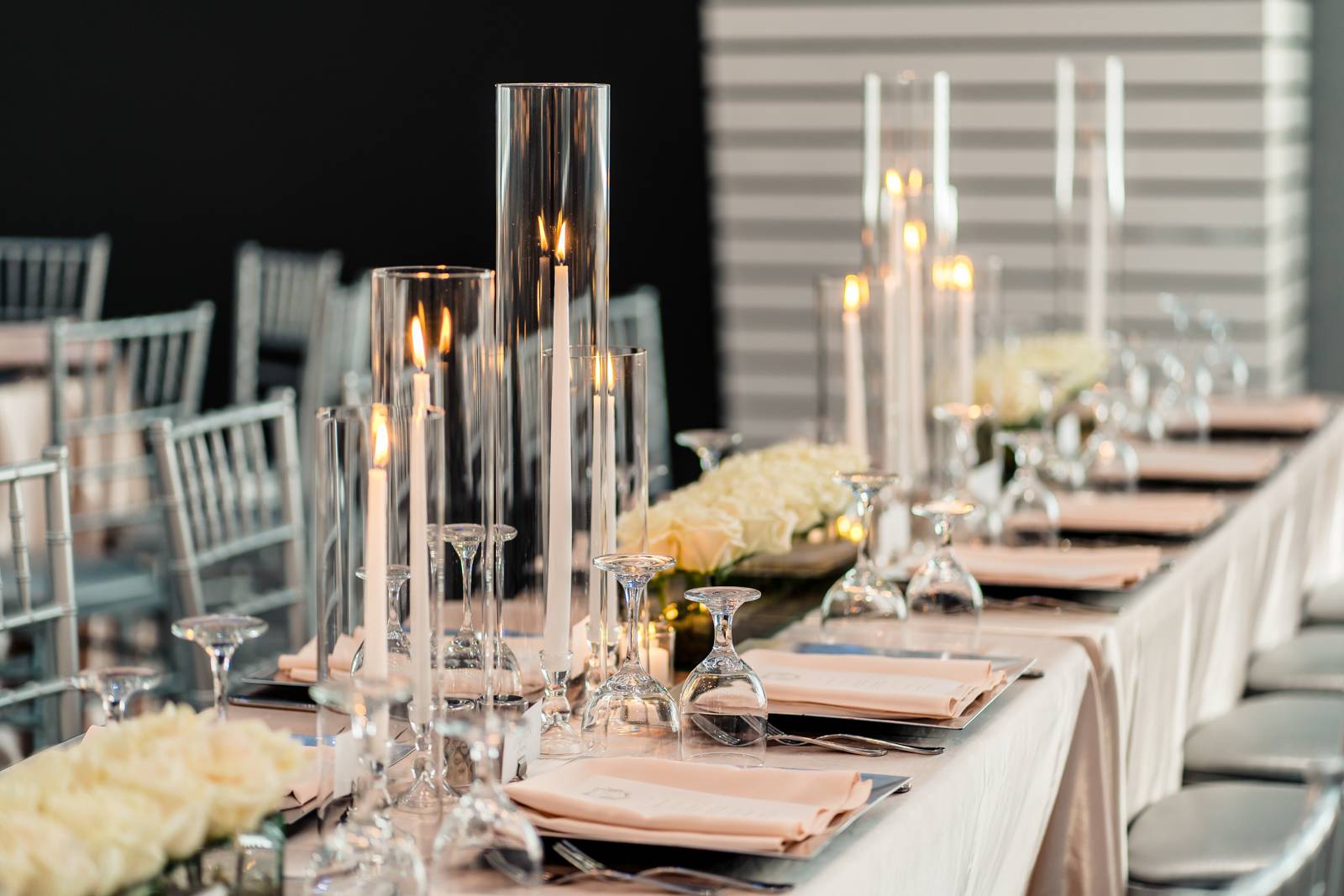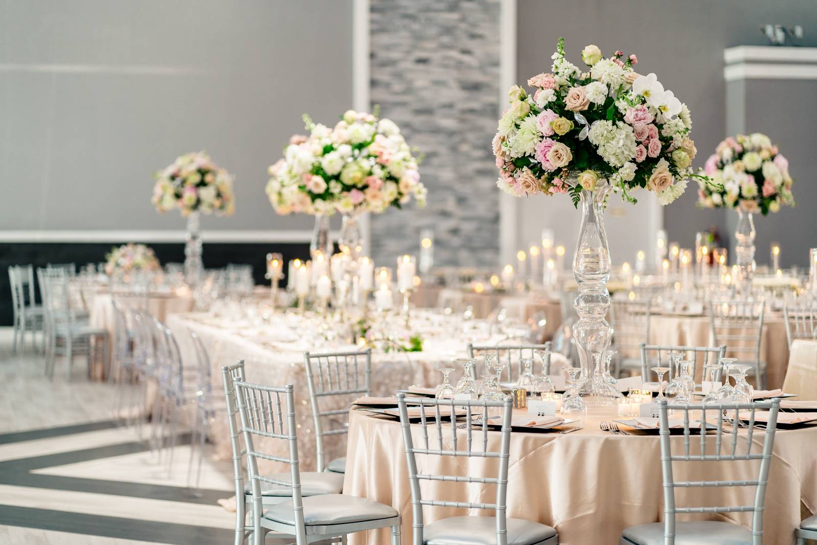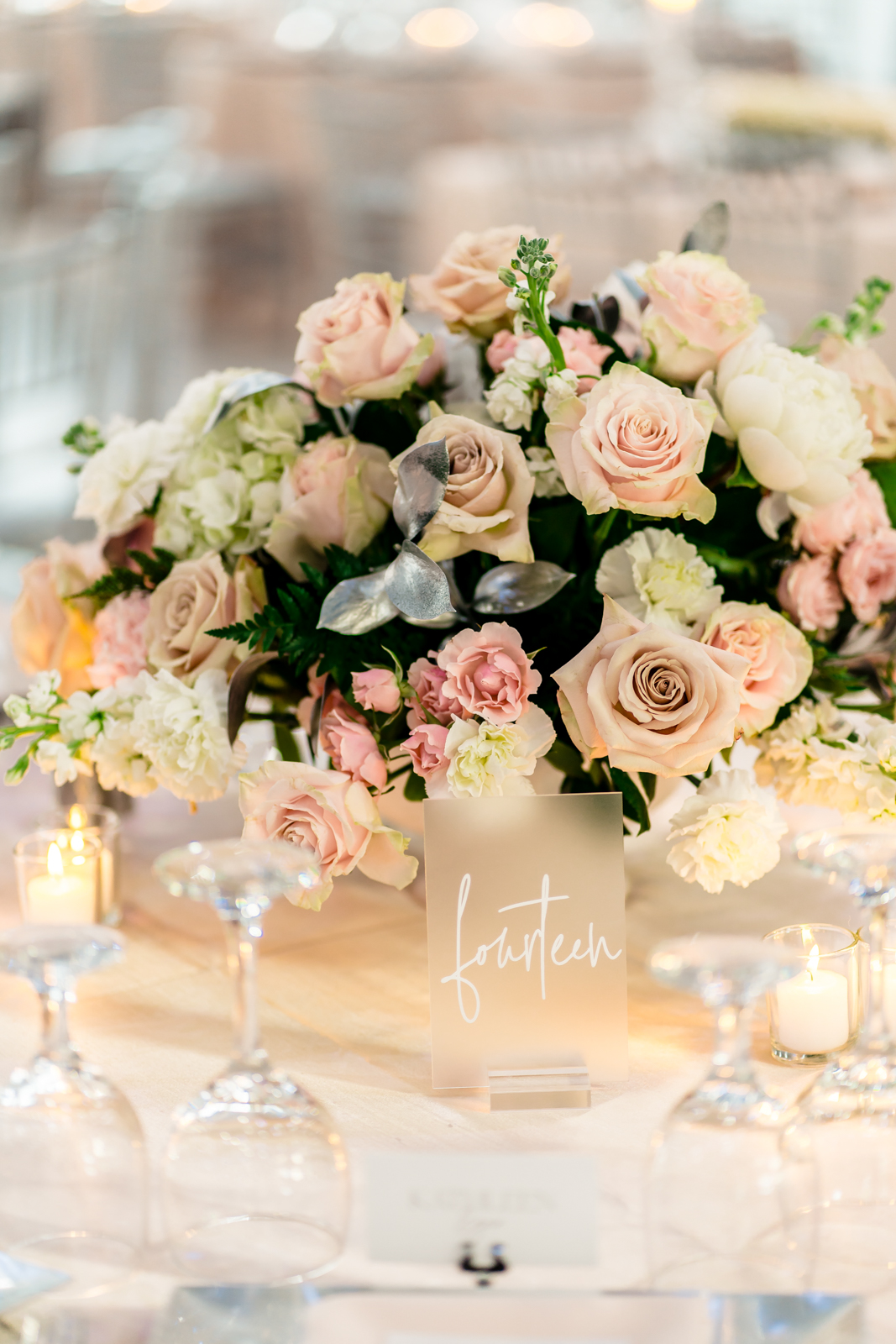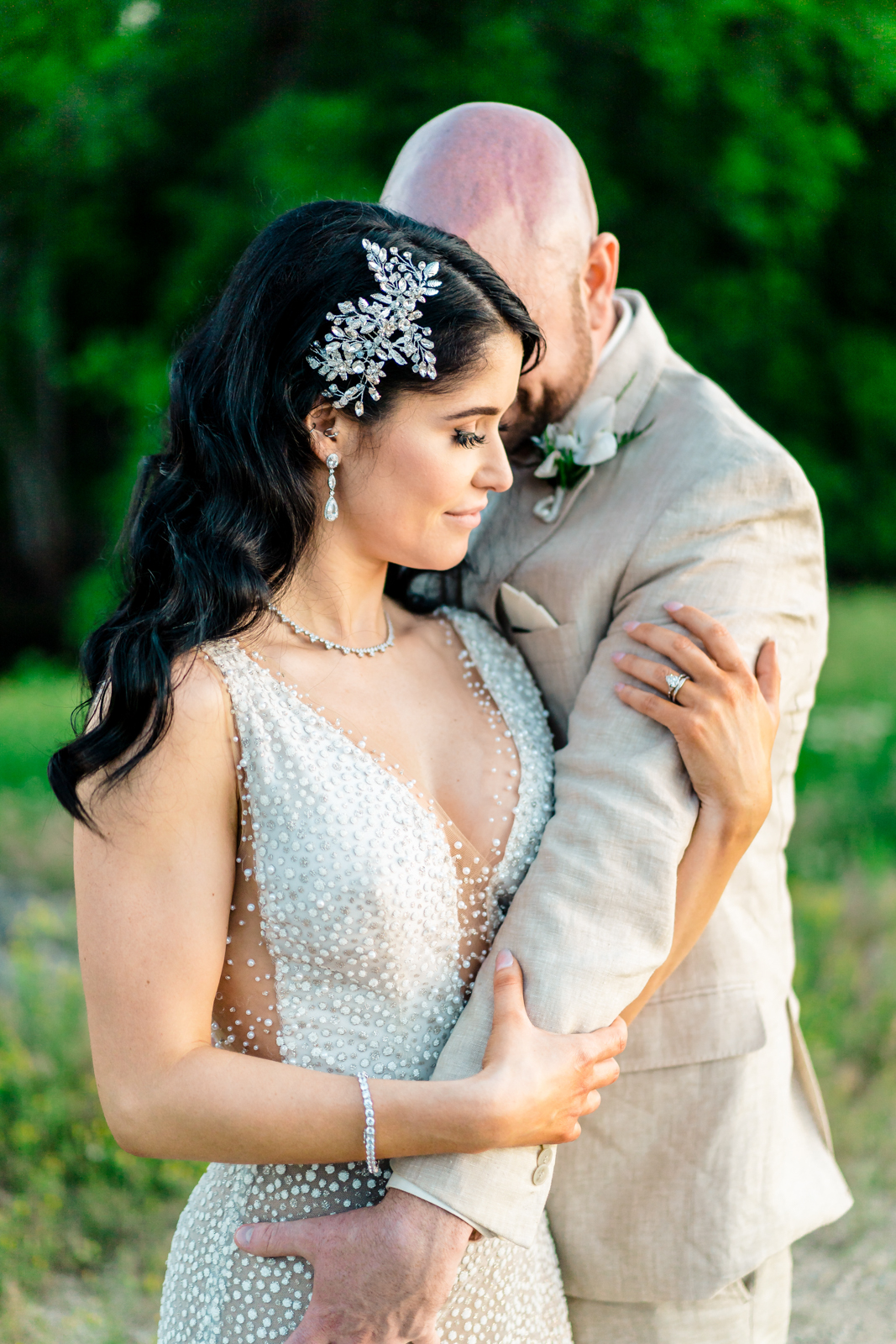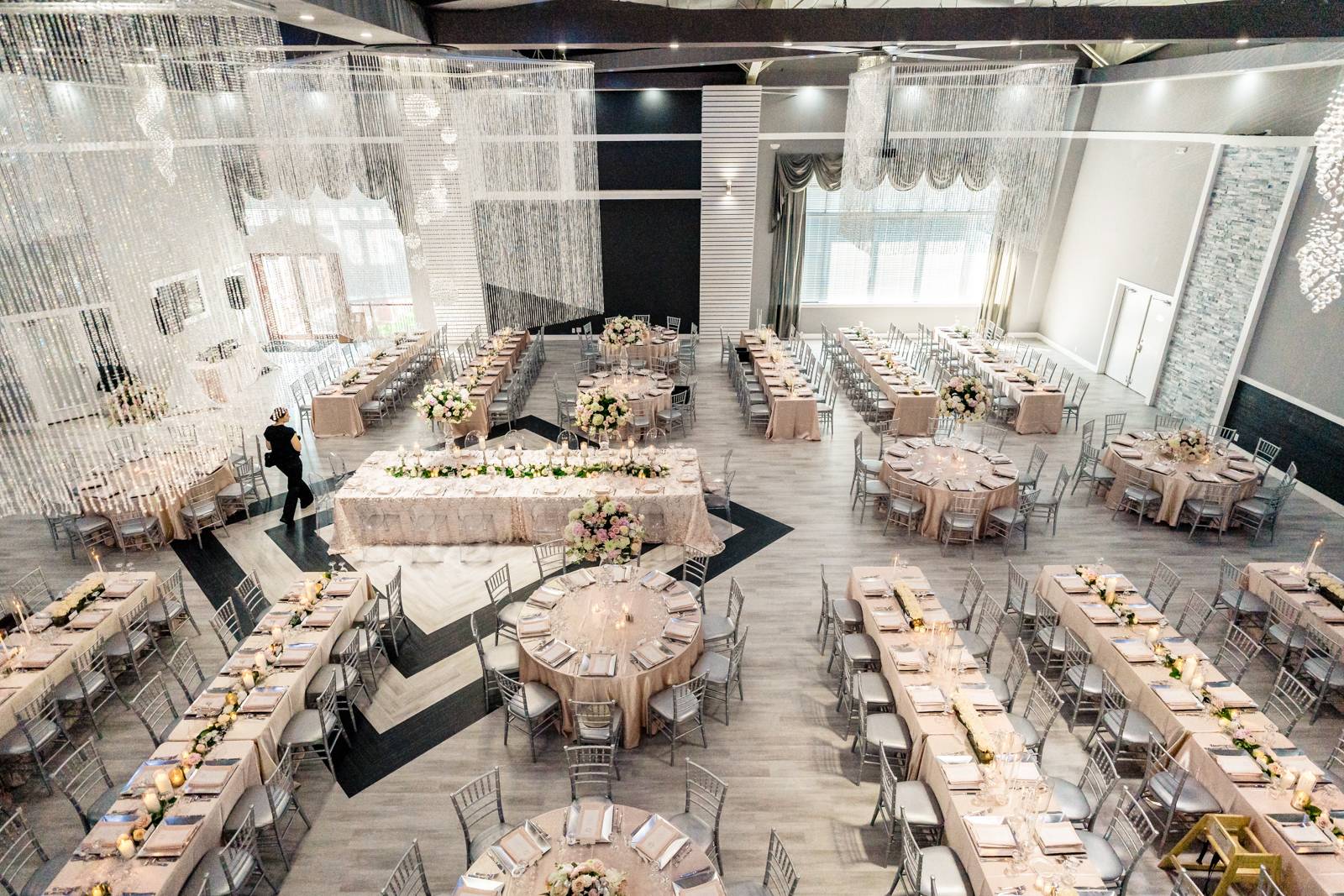 During the reception, a gorgeous and dramatic white marble cake from Meringue Bakery & Cafe took center stage with intricate white flowers and textures. Whimsical Design & Decor elegantly guided guests to their seats with beautiful escort signage, creating an atmosphere of sheer luxury. Additionally, rentals from 4 Sisters Events were strategically placed throughout the venue, adding to the overall opulent ambiance. The magical night ended with Miranda serenading Josef in song, adding a sweet and sentimental surprise to the already incredible day. Scroll below and see all the shimmering, grand details!