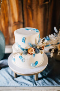 Crumbtastic Cakery provided a delectable touch with a simple yet playful cake design. Adorned with blue teardrop detailing and embellished with whimsical dried flowers, the cake was a delightful creation adding a taste of sweetness to the festivities!