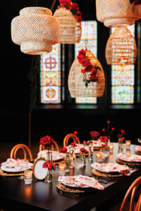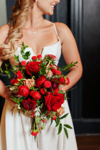 Monet Floral created a stunning, red floral story by incorporating traditional red roses and red anemones, among other beautiful blooms, to craft a variety of floral designs for the festivities.