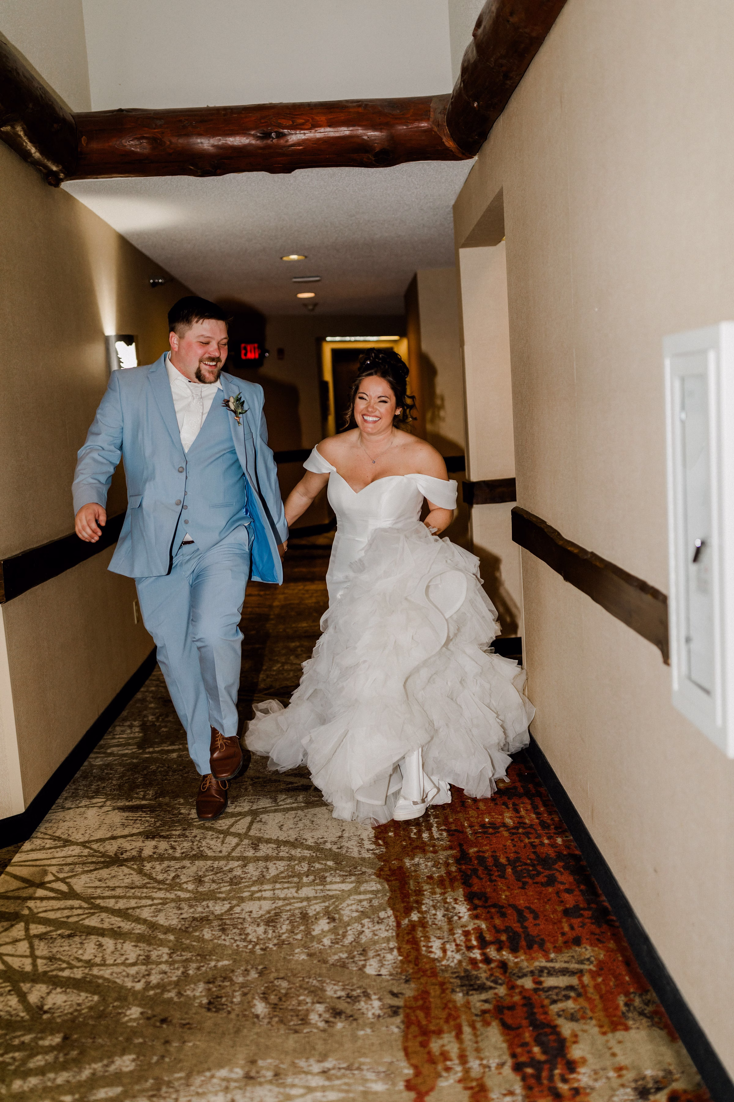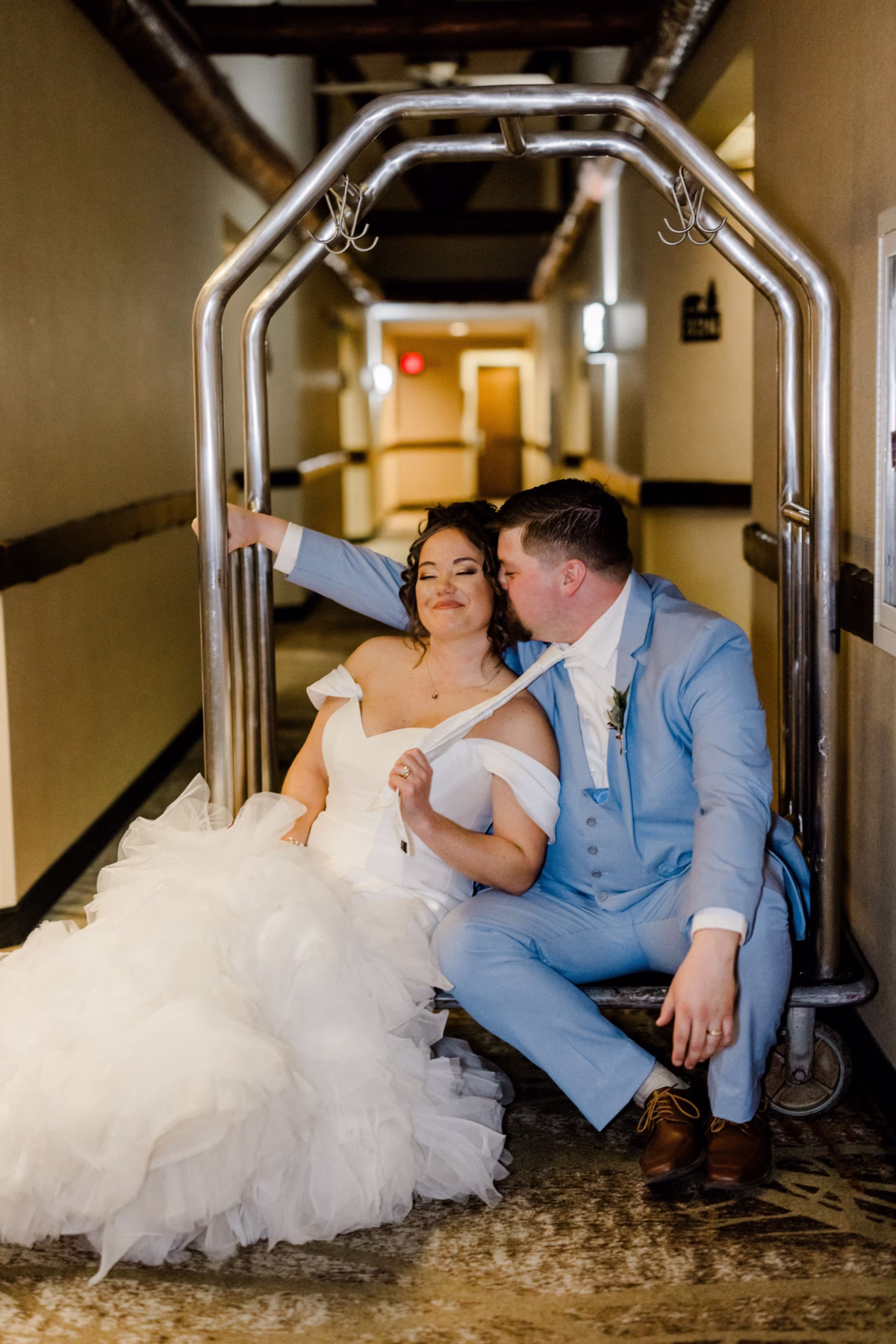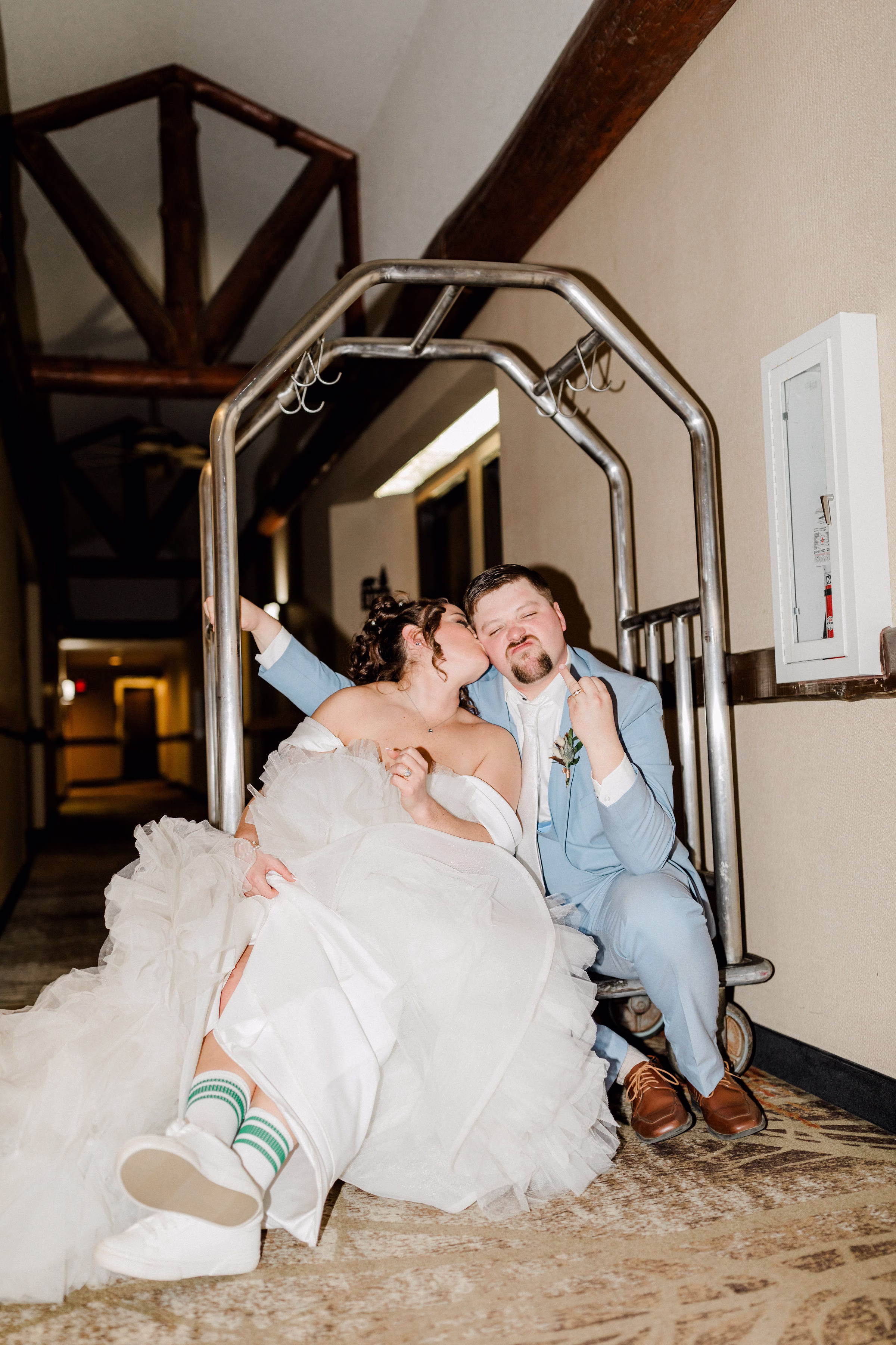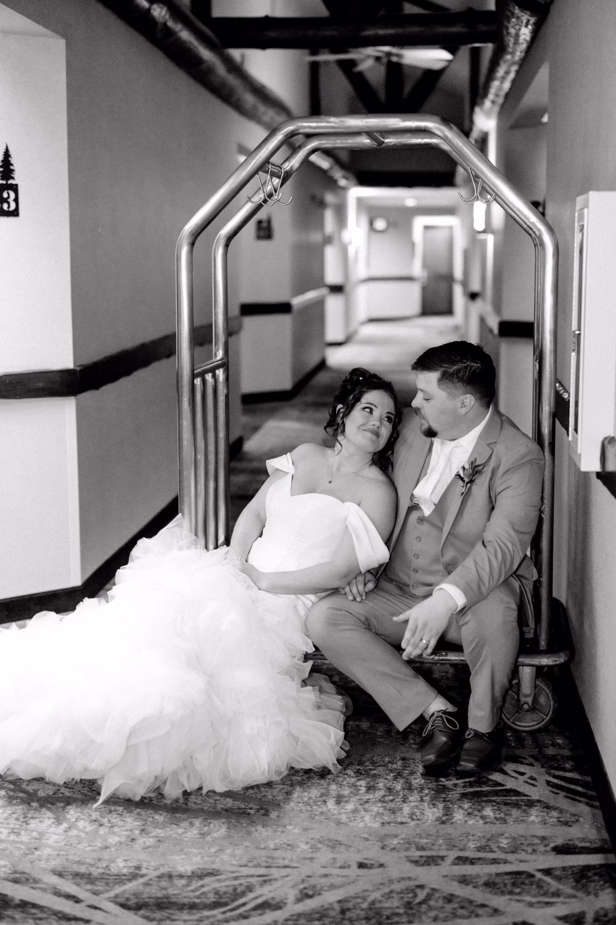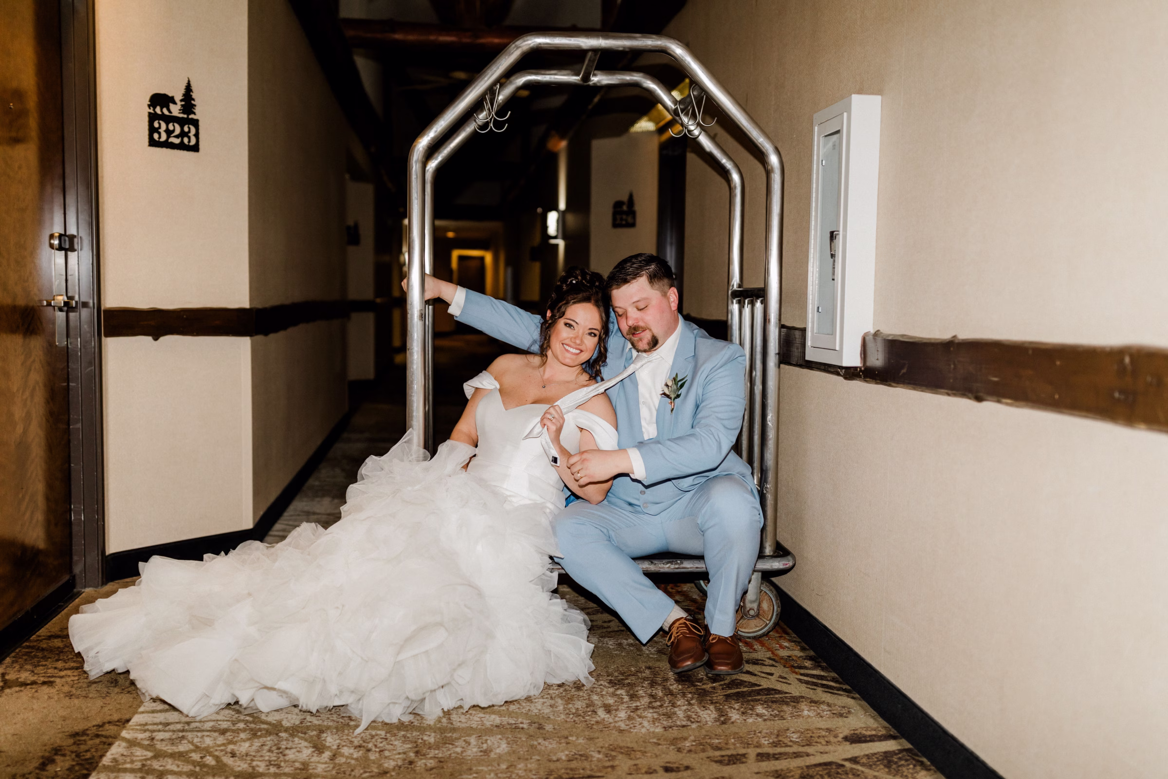 Photographer Dani Stephenson captured all the details, high energy, and whimsical moments of the day. She expertly navigated between the bright snowy landscapes, to the reception, and the most adorable couple portraits taken with the bellman cart in the hotel hallway.