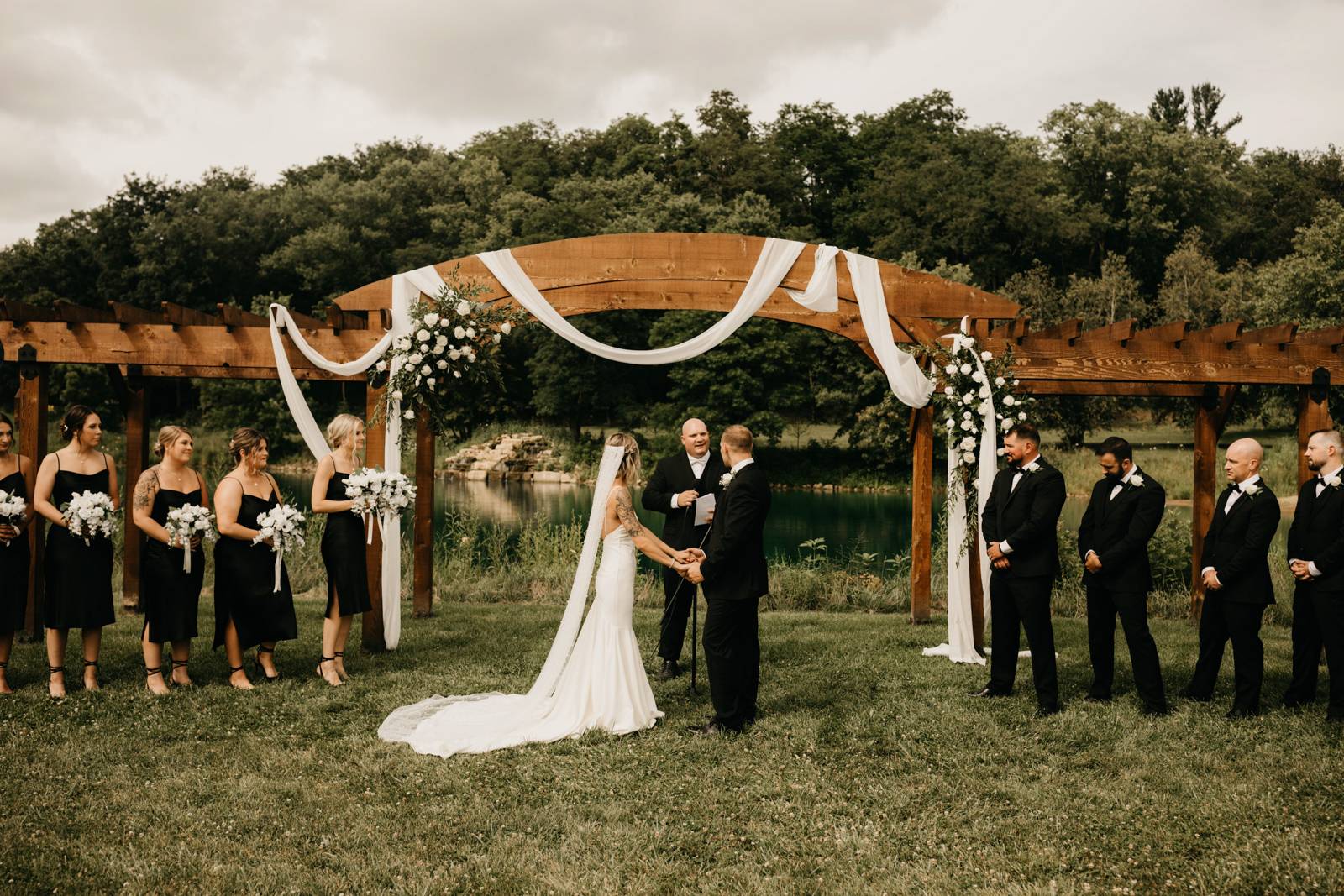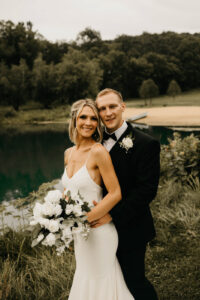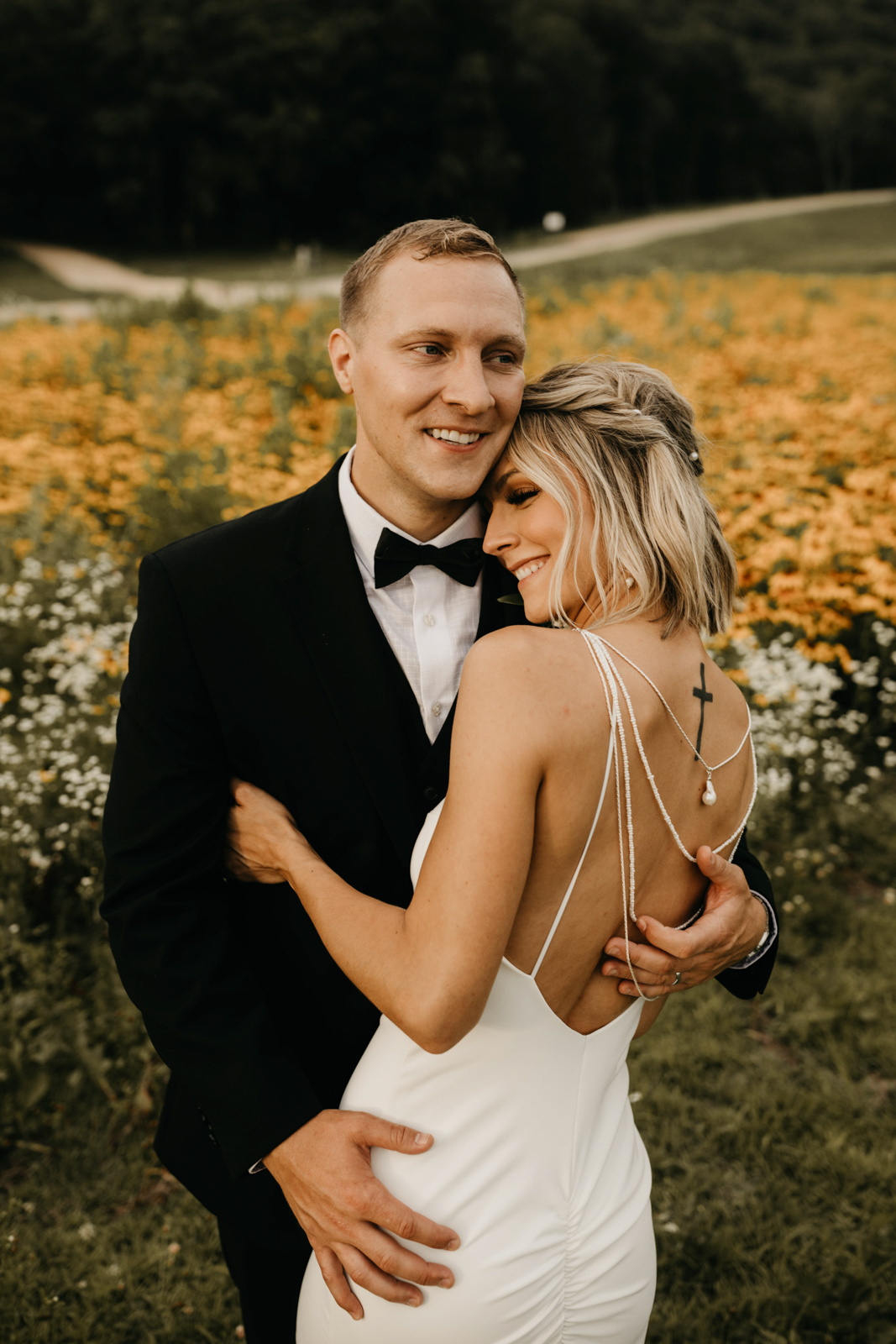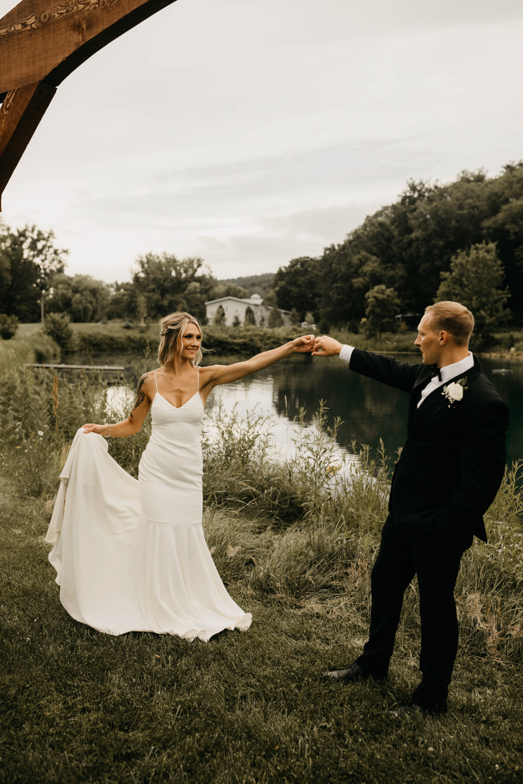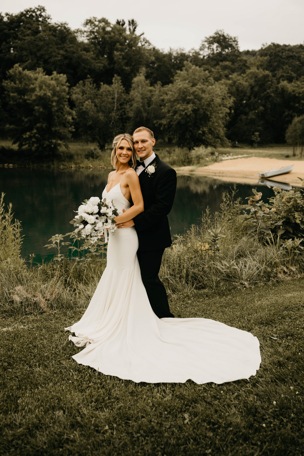 Their intimate and elegant wedding at Chapters on the Horizon captured by Alder & Root Photography, beautifully reflected their relationship and radiated love and joy against the stunning Wisconsin landscape. The evening was highlighted by their first dance to "Talk to Me" by Chayce Beckham, a song whose lyrics resonated with the couple, encapsulating the emotions of their long-distance love and journey. Shannon and Mike celebrated in modern style with their formal and minimalistic black and white theme to match the timeless and simplistic beauty of their everlasting love. Be enchanted and inspired by the all the classy details of their La Crosse, Wisconsin celebration below!