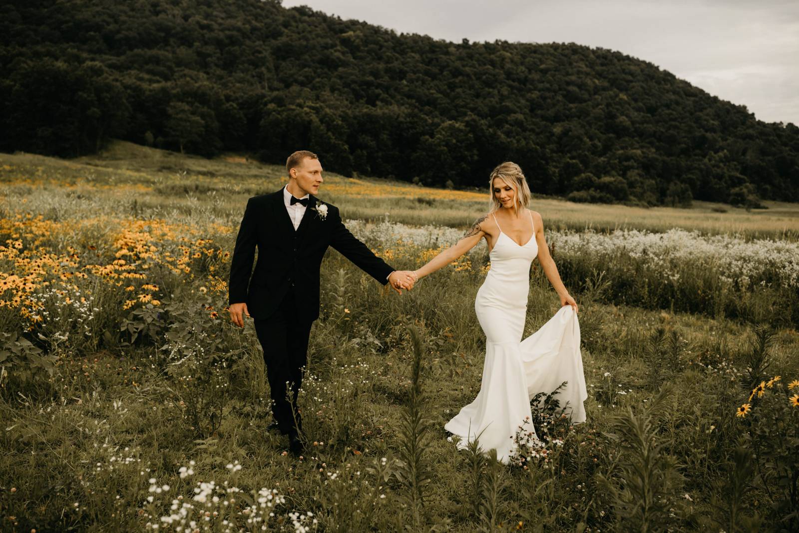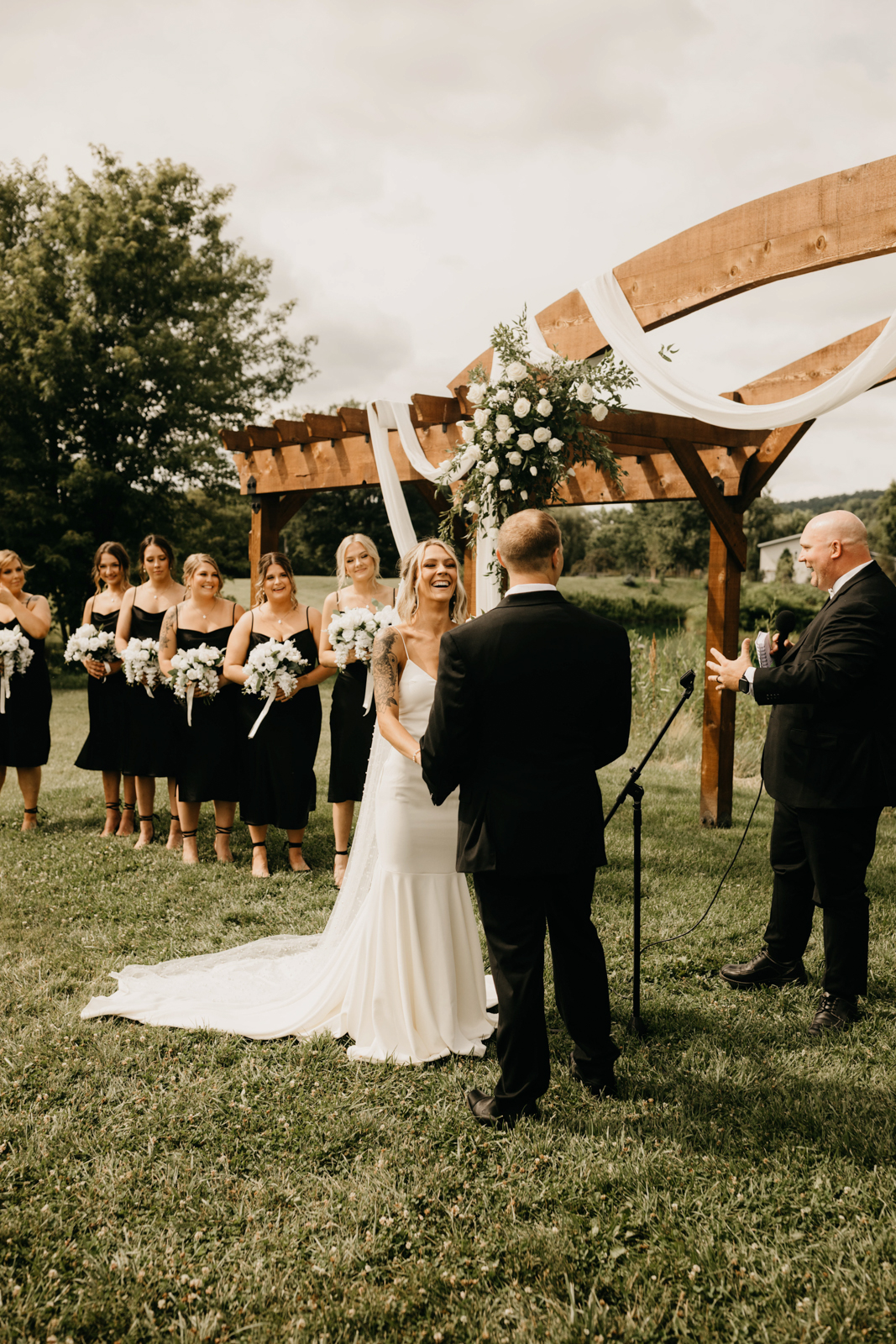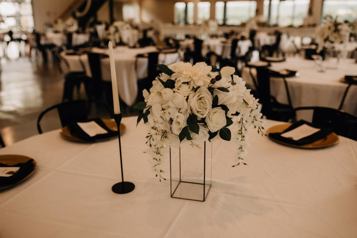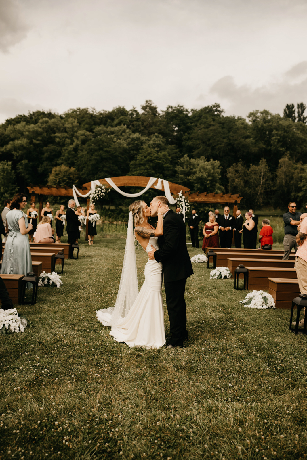 Their intimate and elegant wedding at Chapters on the Horizon captured by Alder & Root Photography, beautifully reflected their relationship and radiated love and joy against the stunning Wisconsin landscape. The evening was highlighted by their first dance to "Talk to Me" by Chayce Beckham, a song whose lyrics resonated with the couple, encapsulating the emotions of their long-distance love and journey. Shannon and Mike celebrated in modern style with their formal and minimalistic black and white theme to match the timeless and simplistic beauty of their everlasting love. Be enchanted and inspired by the all the classy details of their La Crosse, Wisconsin celebration below!