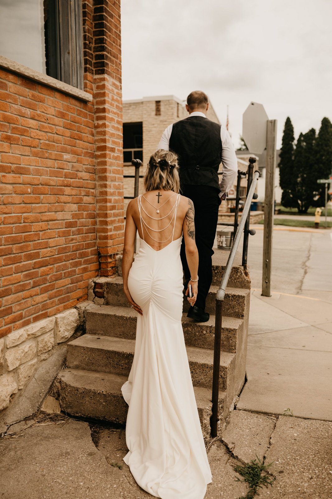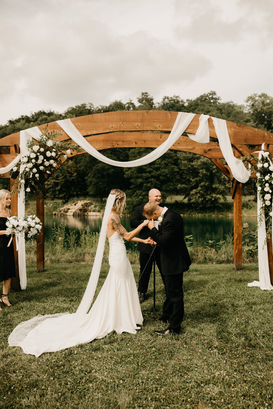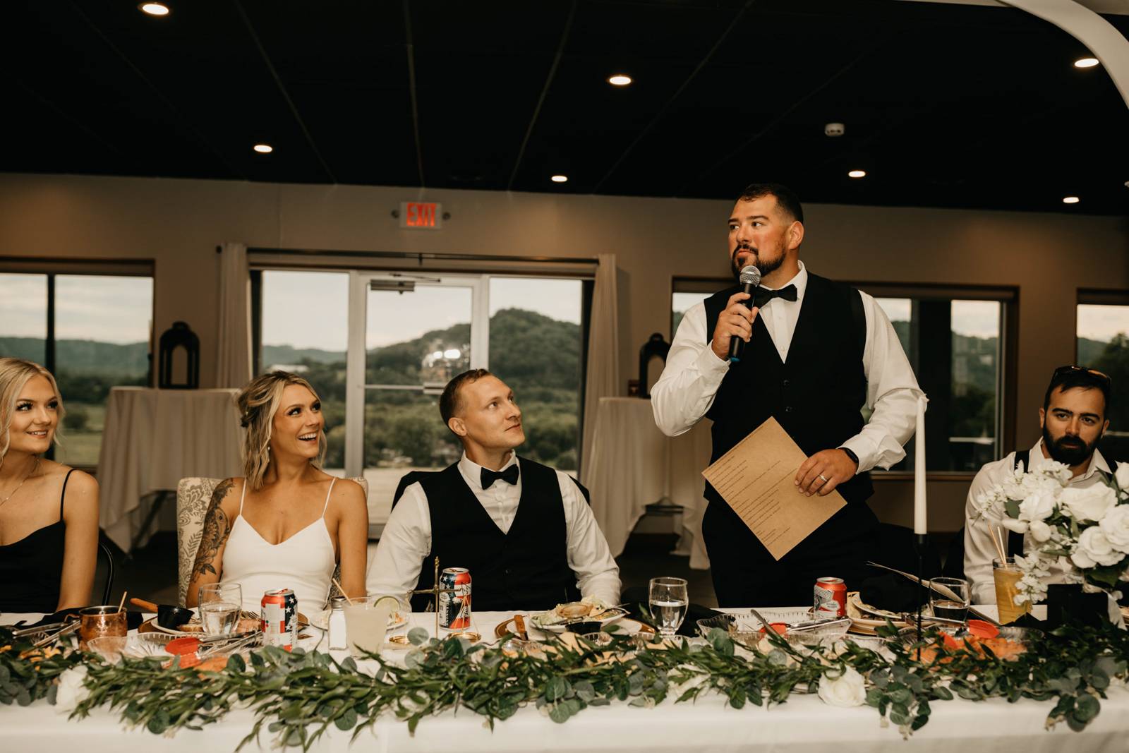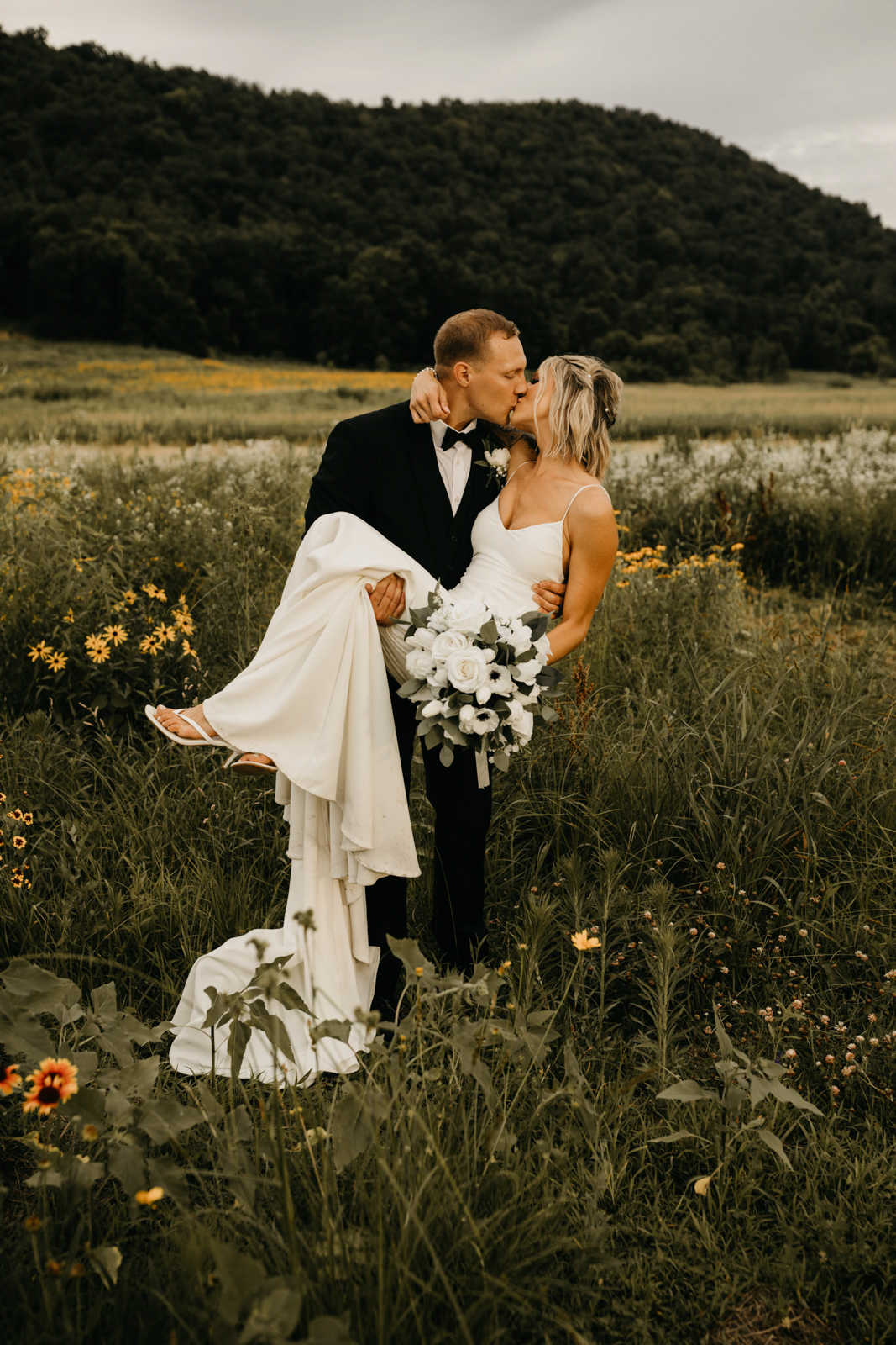 Their intimate and elegant wedding at Chapters on the Horizon captured by Alder & Root Photography, beautifully reflected their relationship and radiated love and joy against the stunning Wisconsin landscape. The evening was highlighted by their first dance to "Talk to Me" by Chayce Beckham, a song whose lyrics resonated with the couple, encapsulating the emotions of their long-distance love and journey. Shannon and Mike celebrated in modern style with their formal and minimalistic black and white theme to match the timeless and simplistic beauty of their everlasting love. Be enchanted and inspired by the all the classy details of their La Crosse, Wisconsin celebration below!