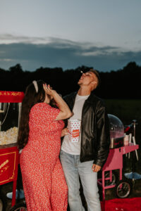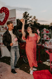 Tonight’s feature film? None other than the timeless classic, “Grease!” Celebrations Entertainment set the stage with stanchion posts and plush velvet ropes, complete with top-notch projection equipment that transformed the outdoor location into a drive-up paradise. With “You’re The One That I Want” serenading them, our couple danced the night away, capping off their perfect day with a touch of cinematic magic.