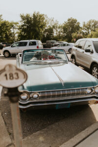 Every ’50s-inspired elopement needs an afterparty! Melody Rose Designs provided the inspiration for the floral and rental decor, transforming this wedding reception into a captivating retro drive-in movie scene. With creative floral arrangements and an abundance of carefully curated rental items, this celebration was a cinematic experience filled with vintage allure and romance.