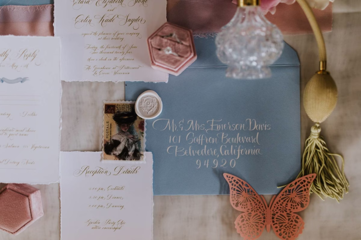 Orange Door Weddings showcased their expertise by seamlessly coordinating, designing, and planning this Bridgerton-inspired affair. Their mastery of detail was evident in every aspect of the day, from their carefully chosen rental selections to the elegant invitation suite and stationery that hinted at an era gone by. They ensured that all elements came together flawlessly, bringing to life the Regencycore vision with a modern twist.