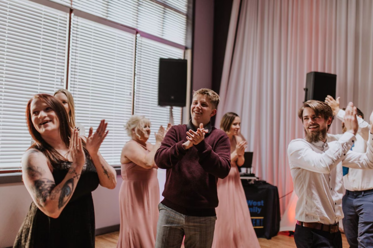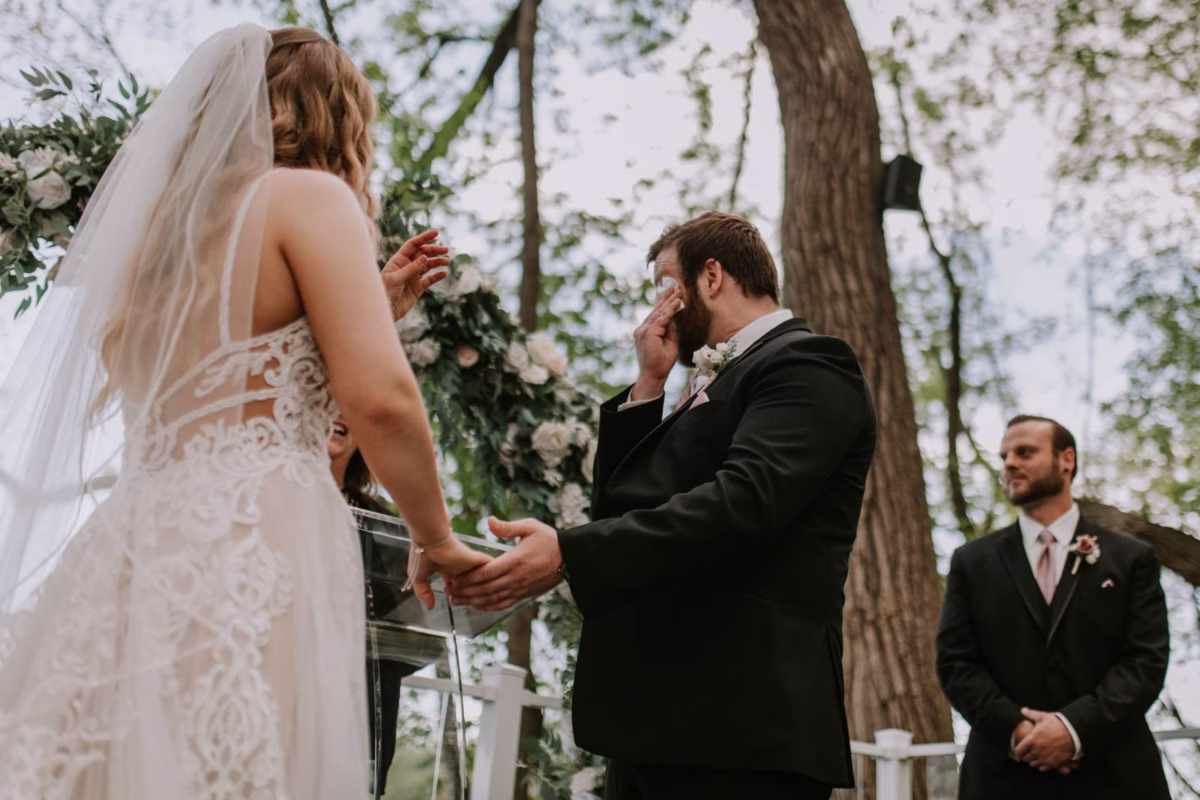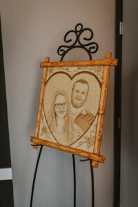 These two incorporated unique, personal touches throughout their special day, like walking down the aisle to a track from The Legend of Zelda: Breath of the Wild – a nod to this video game-loving couple’s relationship start – including their furry feline friends in Megan’s bouquet and Kyle’s cufflinks, and having guests roll a D20 as an alternative to glass clinking for a kiss! For anything over 11, Kyle and Megan would kiss, and for anything under, the guest who rolled the die had to kiss a guest of choice.