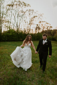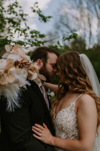 Megan was stunning in her Essense of Australia A-line gown from Charlotte’s Bridal & Formal Wear with a champagne underskirt, sheer bodice, and elegant train. Captured by Savannah Steiger Photography, we can’t wait for you to see all the details from this dreamy, fairytale-feeling day on the blog below.