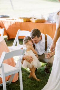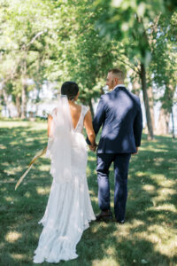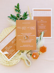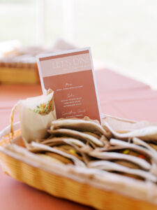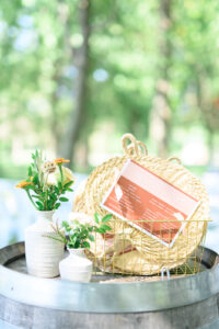 Gorgeous lake views, warm terracotta tones, and boho-chic elegance - what more could you want for a sweet, summery picnic wedding? Hillary and Jake celebrated their love on a sun-soaked August day, surrounded by their closest loved ones, and, boy, was it a bash for the books! Summer from Orange Door Weddings helped these two weave incredibly intentional and memorable details into every detail of their day, like wedding programs perfectly displayed on woven fans for guests to both read and cool themselves during the ceremony, adorable, intimate wine picnic setups spread out throughout the grounds for a little cocktail hour relaxation, rattan chairs and wicker chandeliers for a statement-making sweetheart table, a pretty-in-peach cutting cake from Meringue Bakery & Cafe, and more! Beautifully captured by BearMoose&Fox, dive into all the dreamy inspiration Hillary and Jake's wedding day brought below.