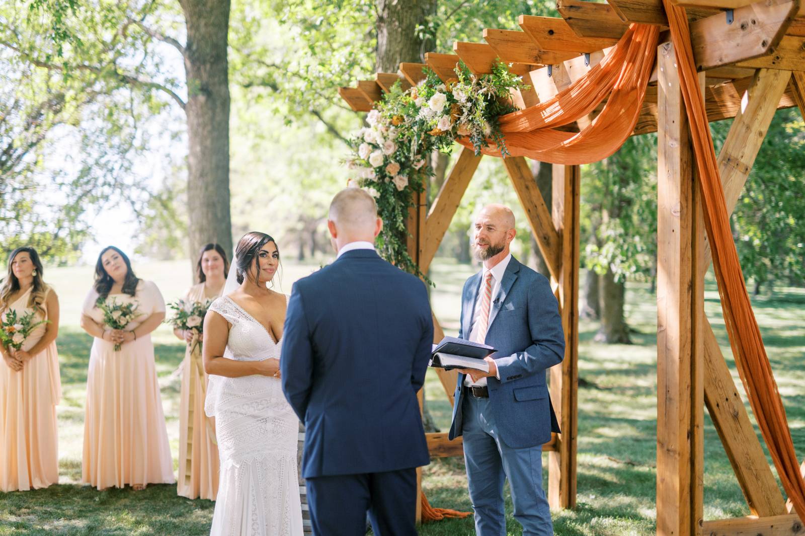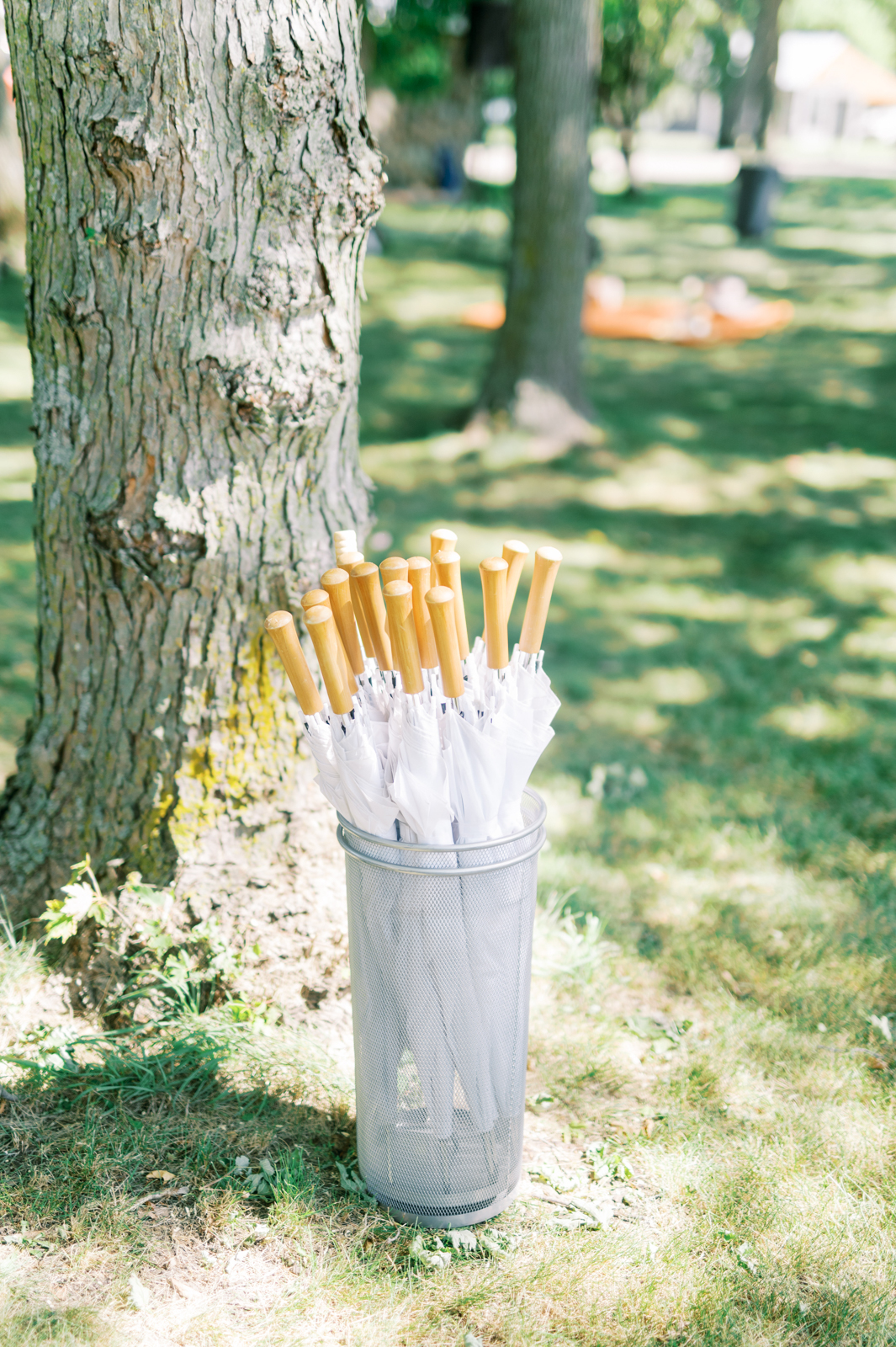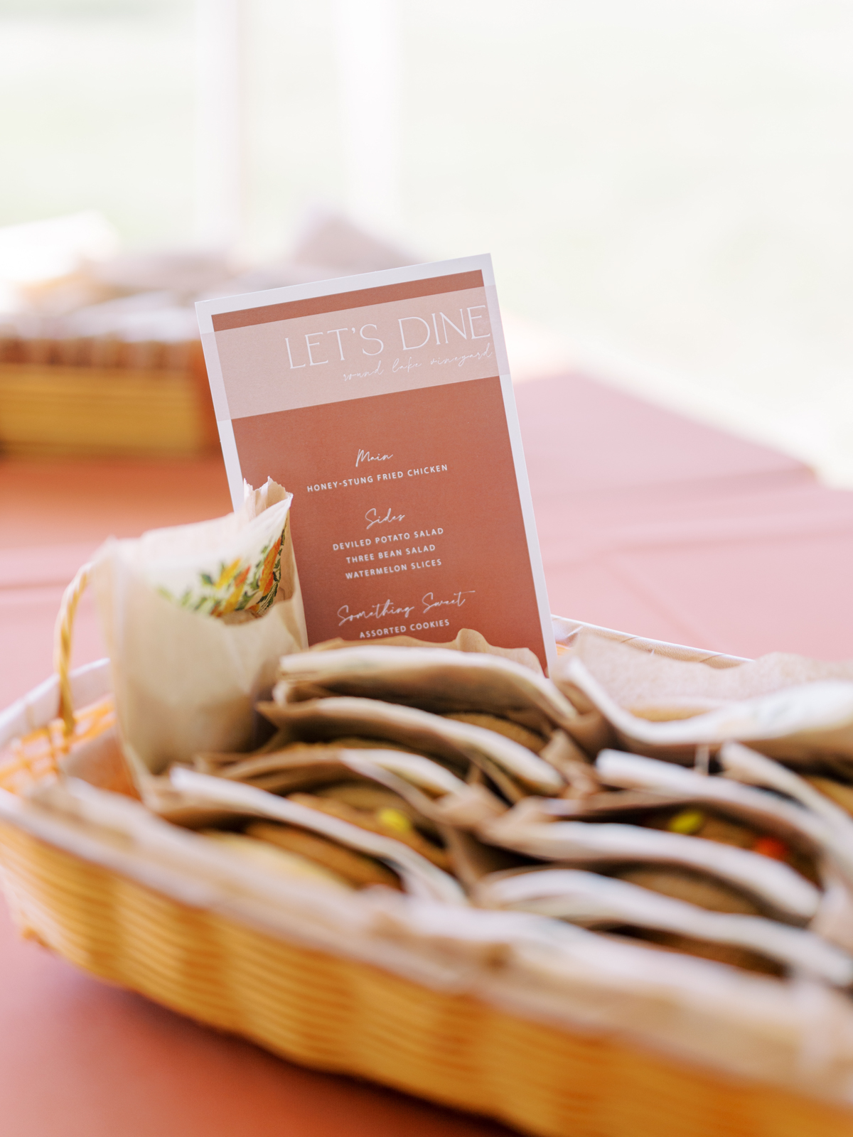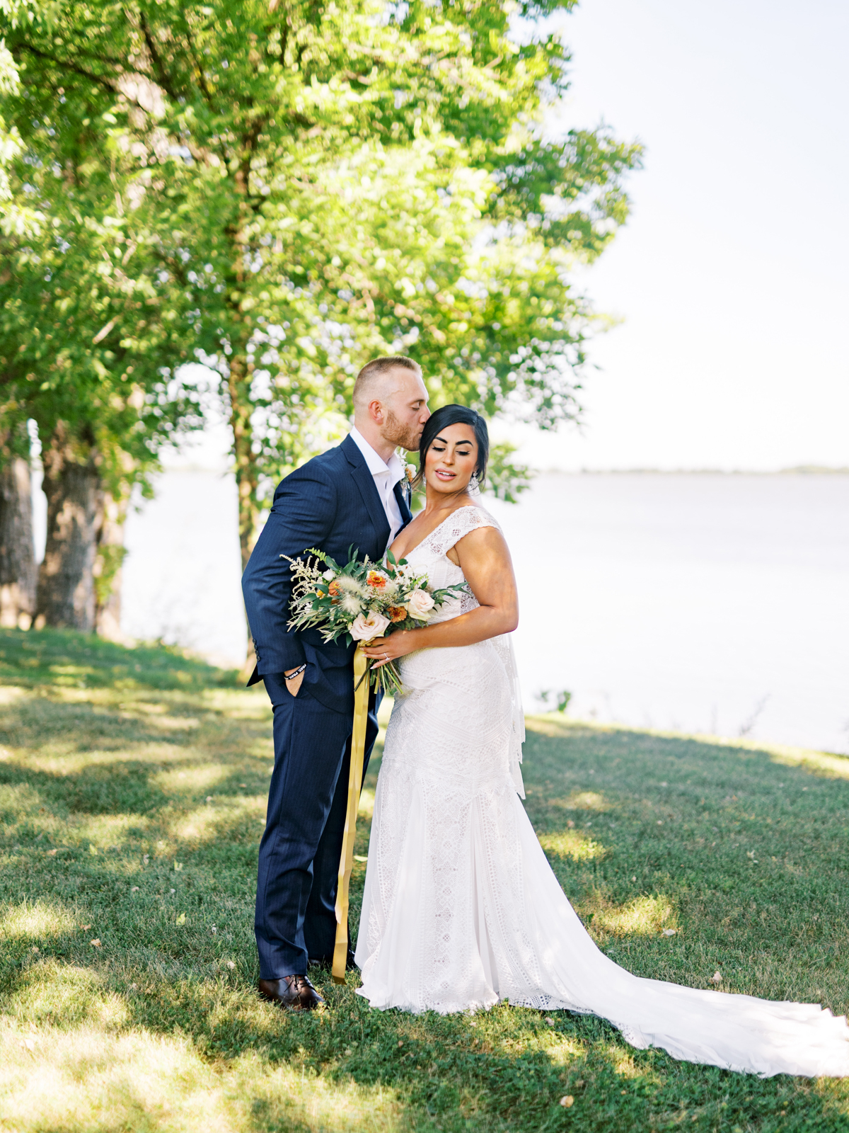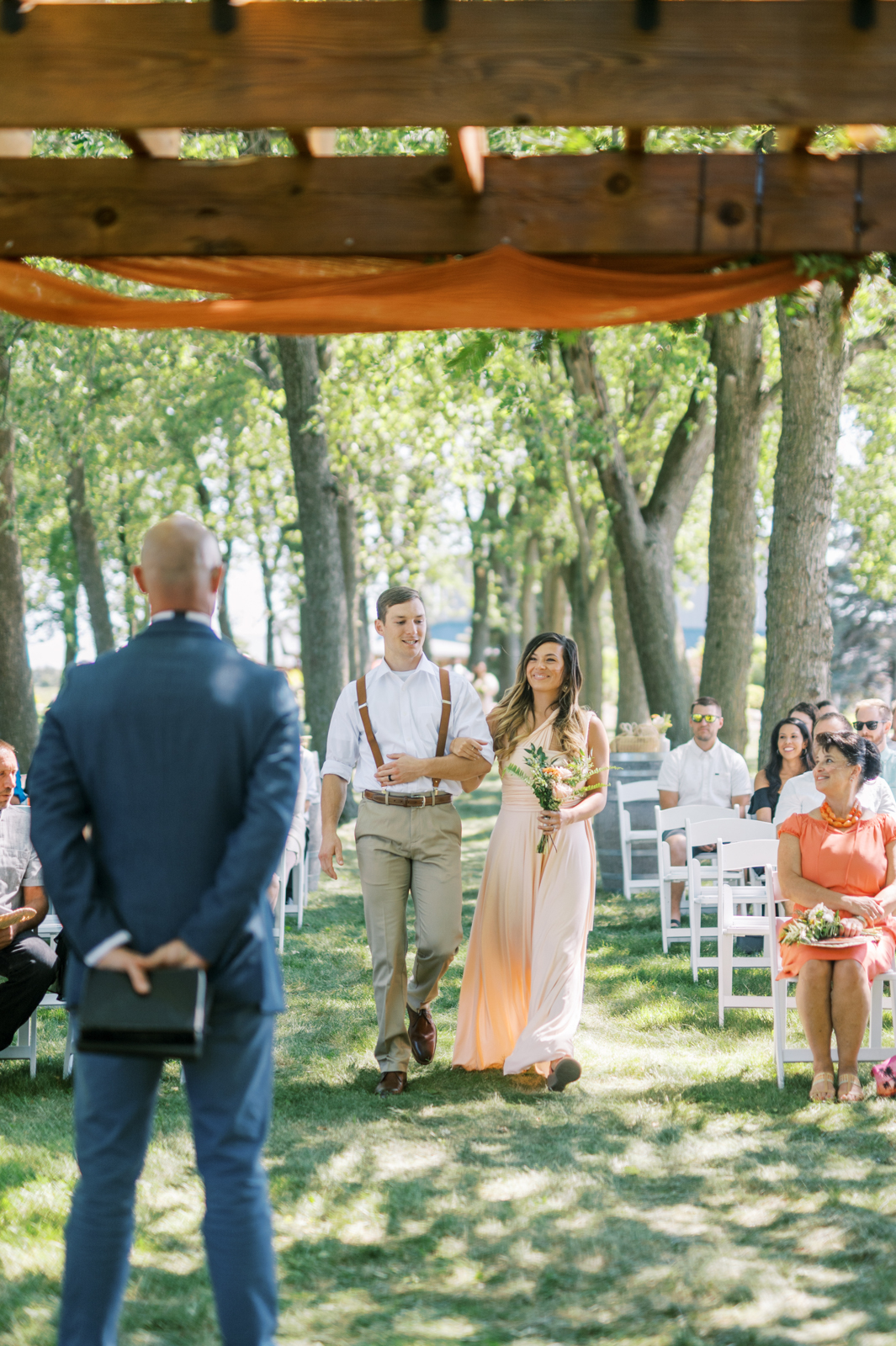 Gorgeous lake views, warm terracotta tones, and boho-chic elegance – what more could you want for a sweet, summery picnic wedding? Hillary and Jake celebrated their love on a sun-soaked August day, surrounded by their closest loved ones, and, boy, was it a bash for the books! Summer from Orange Door Weddings helped these two weave incredibly intentional and memorable details into every detail of their day, like wedding programs perfectly displayed on woven fans for guests to both read and cool themselves during the ceremony, adorable, intimate wine picnic setups spread out throughout the grounds for a little cocktail hour relaxation, rattan chairs and wicker chandeliers for a statement-making sweetheart table, a pretty-in-peach cutting cake from Meringue Bakery & Cafe, and more! Beautifully captured by BearMoose&Fox, dive into all the dreamy inspiration Hillary and Jake’s wedding day brought below.