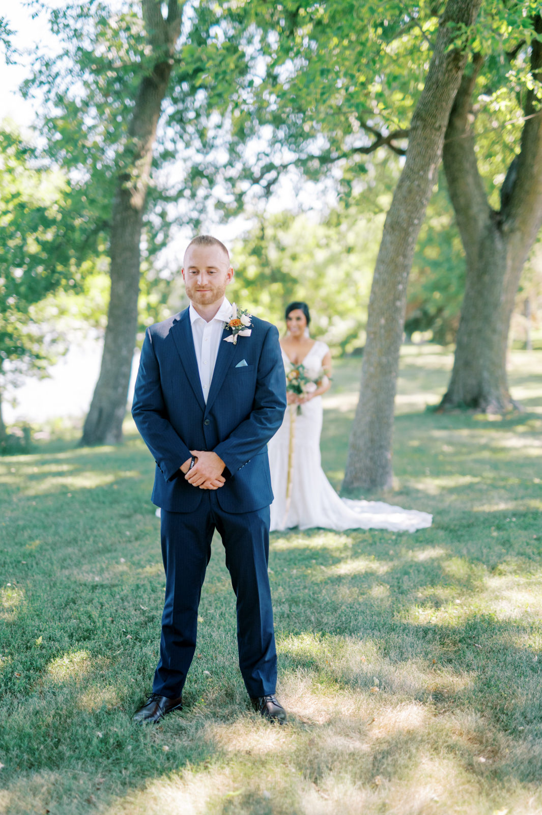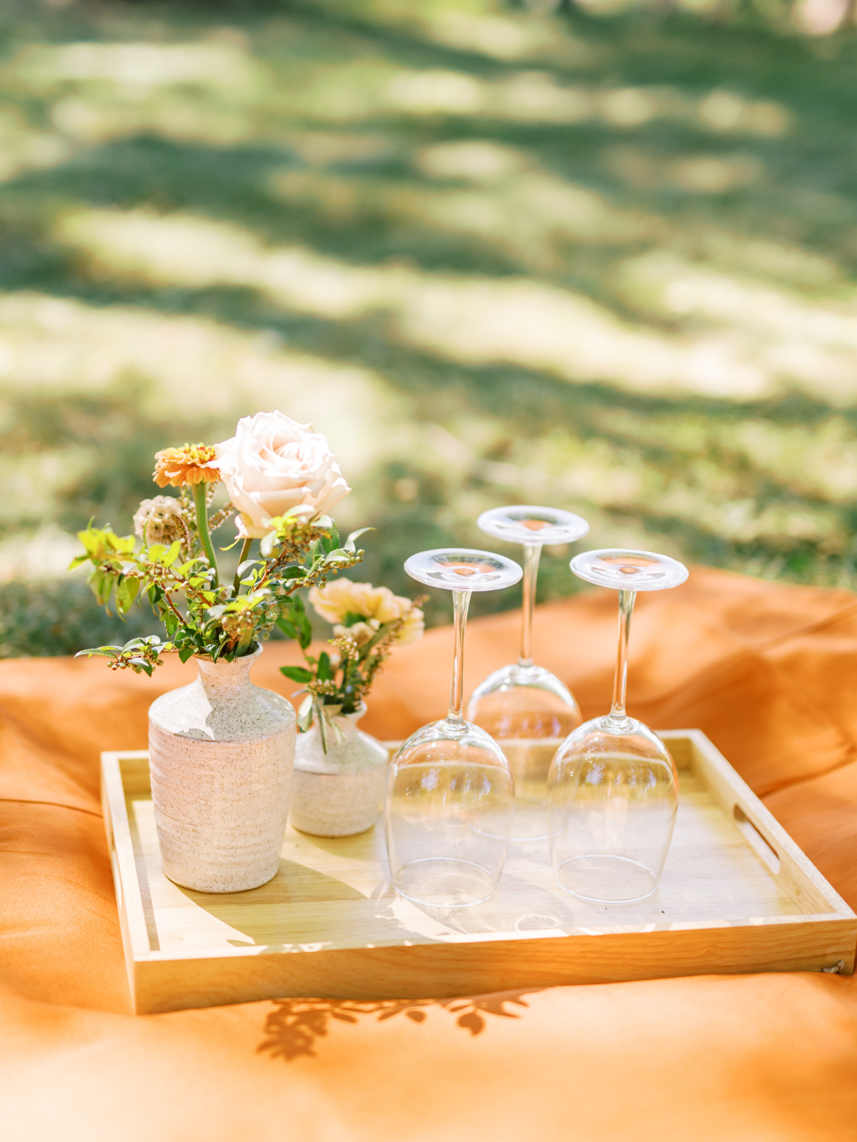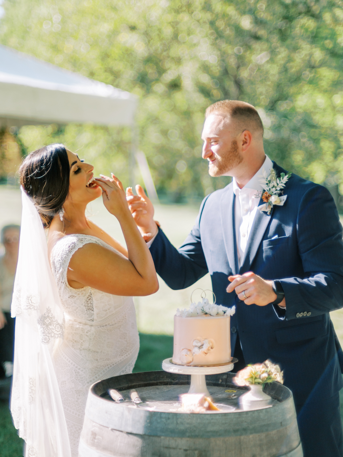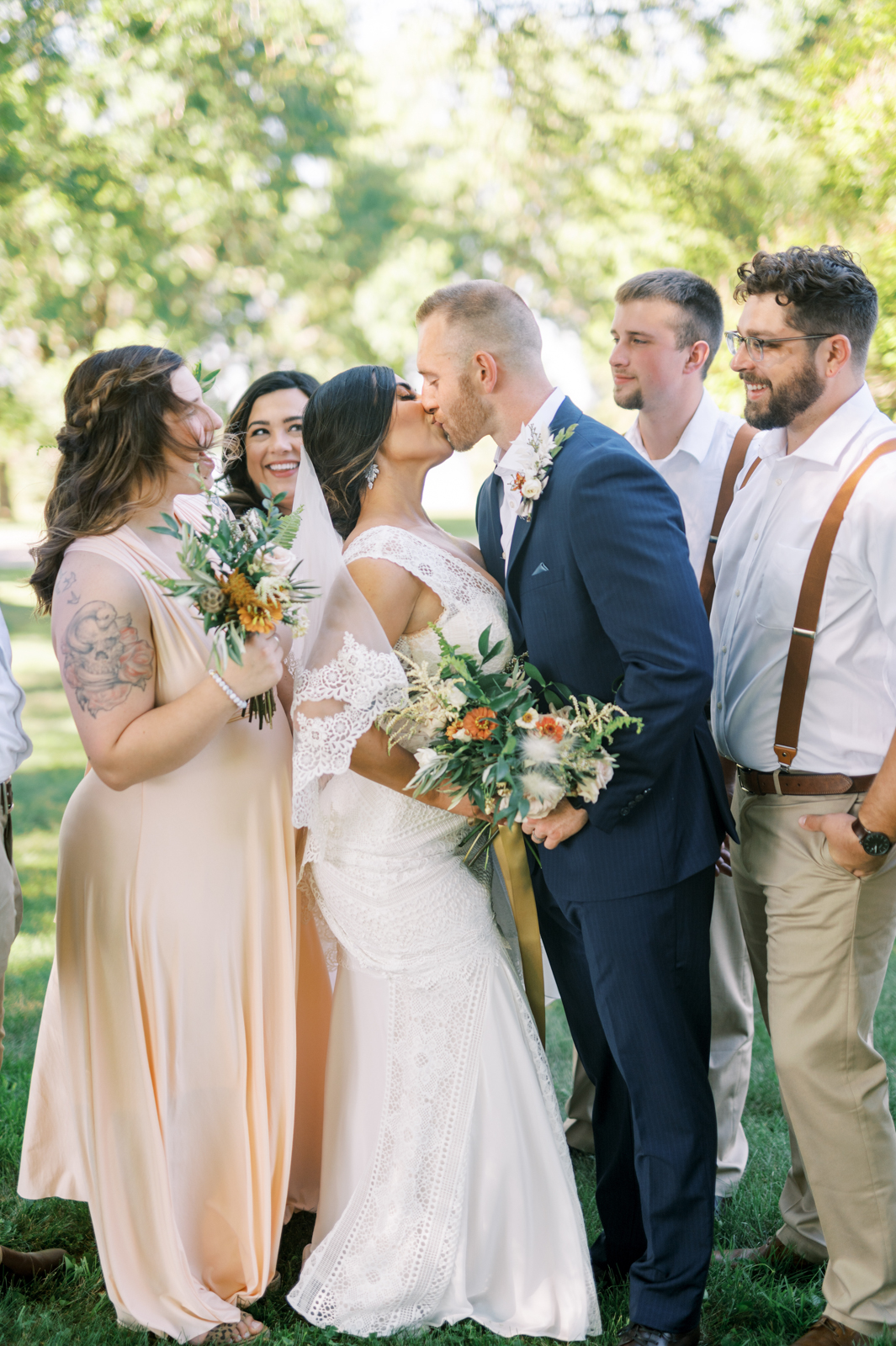 Gorgeous lake views, warm terracotta tones, and boho-chic elegance – what more could you want for a sweet, summery picnic wedding? Hillary and Jake celebrated their love on a sun-soaked August day, surrounded by their closest loved ones, and, boy, was it a bash for the books! Summer from Orange Door Weddings helped these two weave incredibly intentional and memorable details into every detail of their day, like wedding programs perfectly displayed on woven fans for guests to both read and cool themselves during the ceremony, adorable, intimate wine picnic setups spread out throughout the grounds for a little cocktail hour relaxation, rattan chairs and wicker chandeliers for a statement-making sweetheart table, a pretty-in-peach cutting cake from Meringue Bakery & Cafe, and more! Beautifully captured by BearMoose&Fox, dive into all the dreamy inspiration Hillary and Jake’s wedding day brought below.
