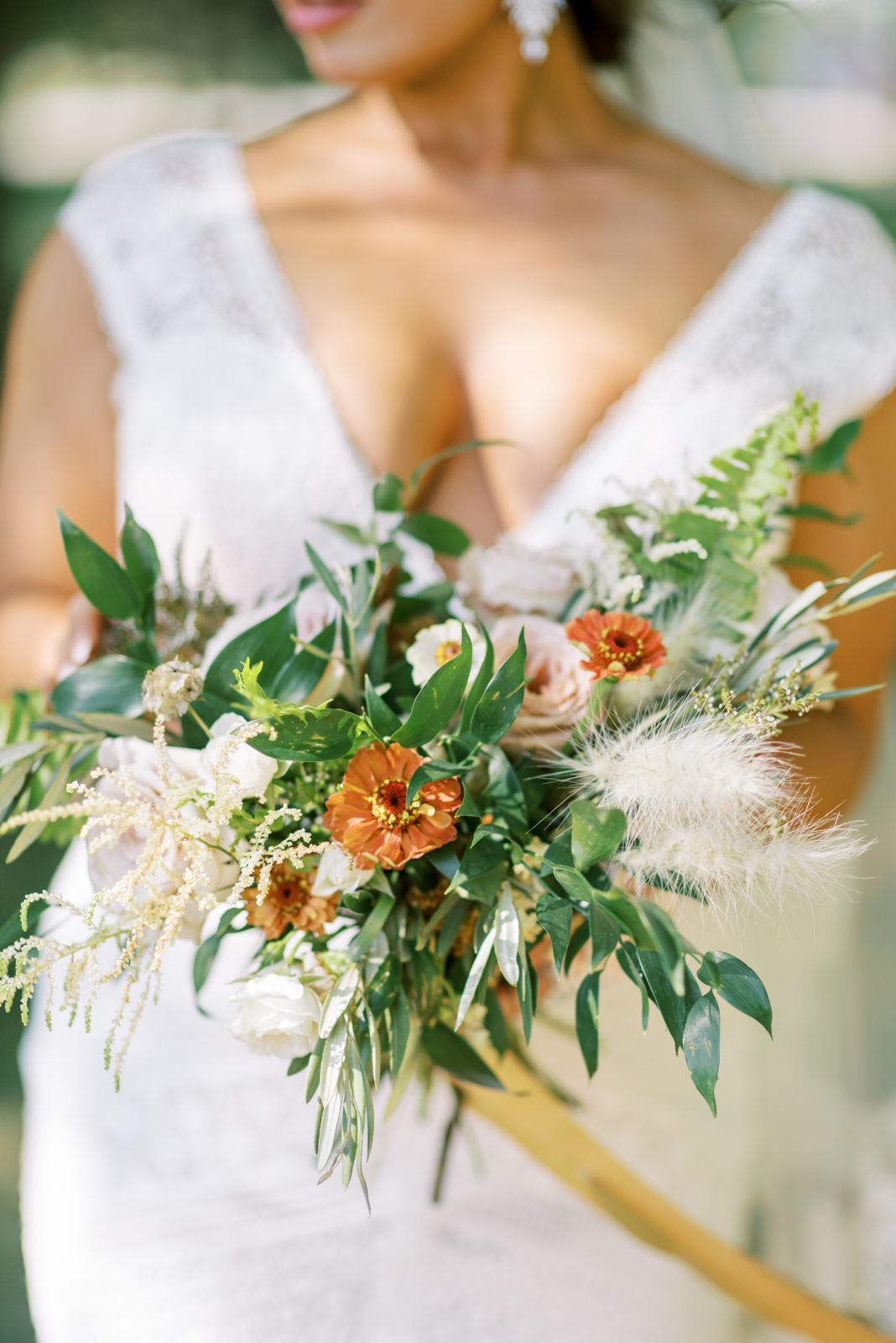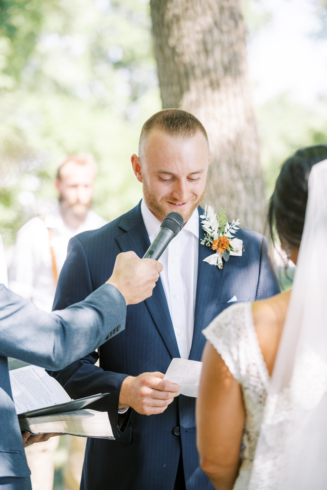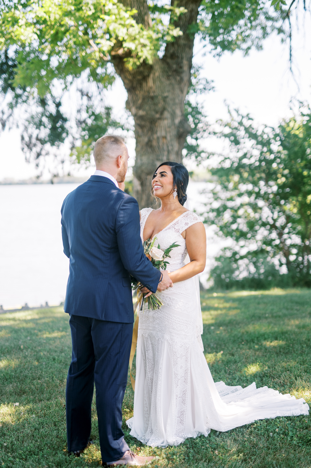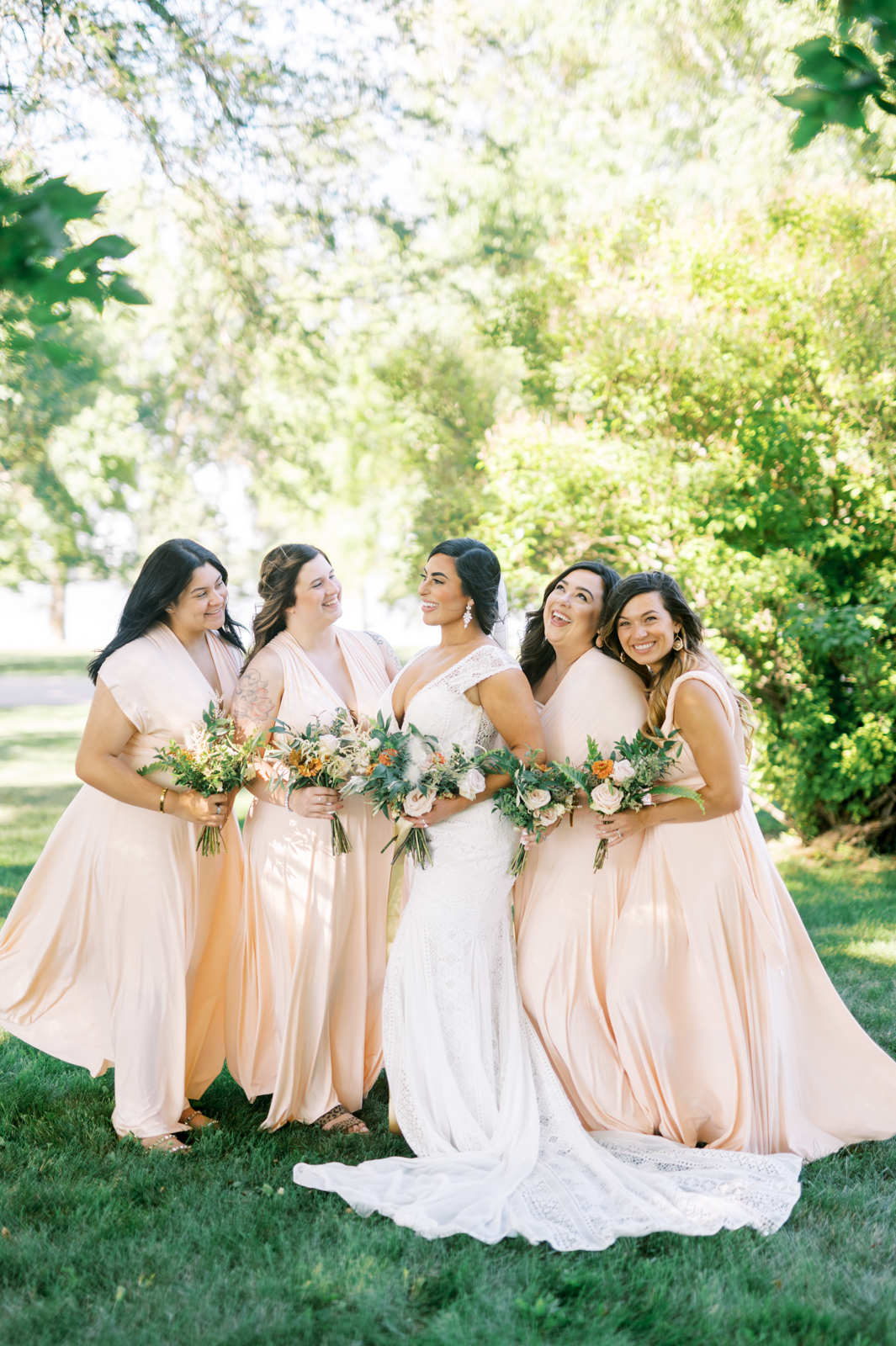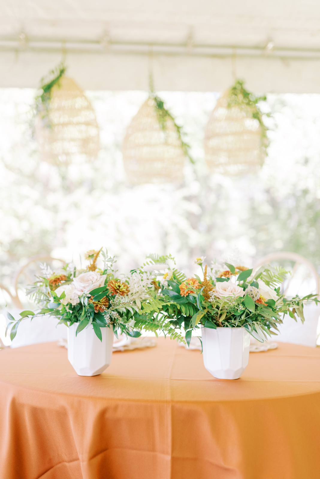 Gorgeous lake views, warm terracotta tones, and boho-chic elegance – what more could you want for a sweet, summery picnic wedding? Hillary and Jake celebrated their love on a sun-soaked August day, surrounded by their closest loved ones, and, boy, was it a bash for the books! Summer from Orange Door Weddings helped these two weave incredibly intentional and memorable details into every detail of their day, like wedding programs perfectly displayed on woven fans for guests to both read and cool themselves during the ceremony, adorable, intimate wine picnic setups spread out throughout the grounds for a little cocktail hour relaxation, rattan chairs and wicker chandeliers for a statement-making sweetheart table, a pretty-in-peach cutting cake from Meringue Bakery & Cafe, and more! Beautifully captured by BearMoose&Fox, dive into all the dreamy inspiration Hillary and Jake’s wedding day brought below.