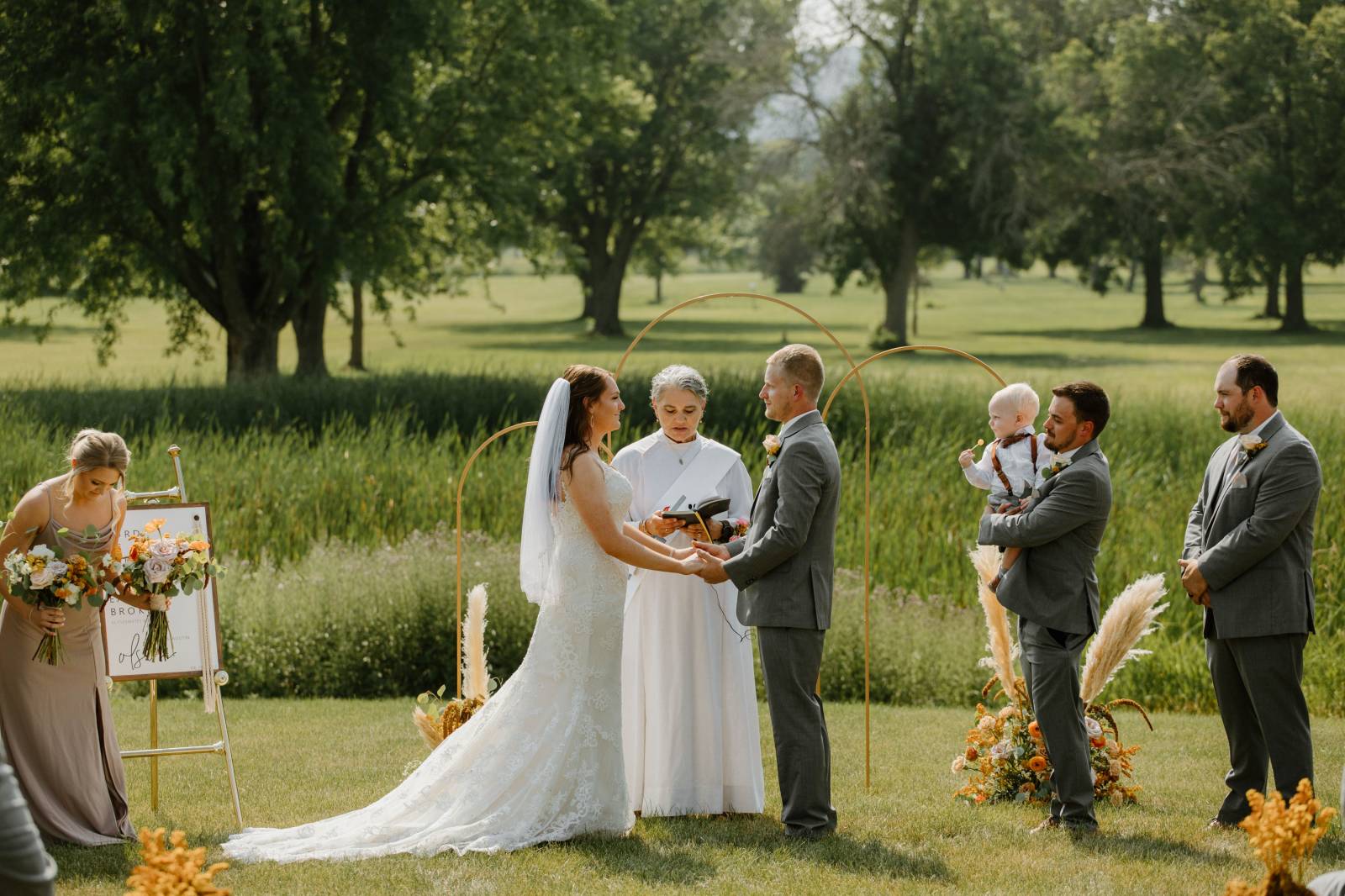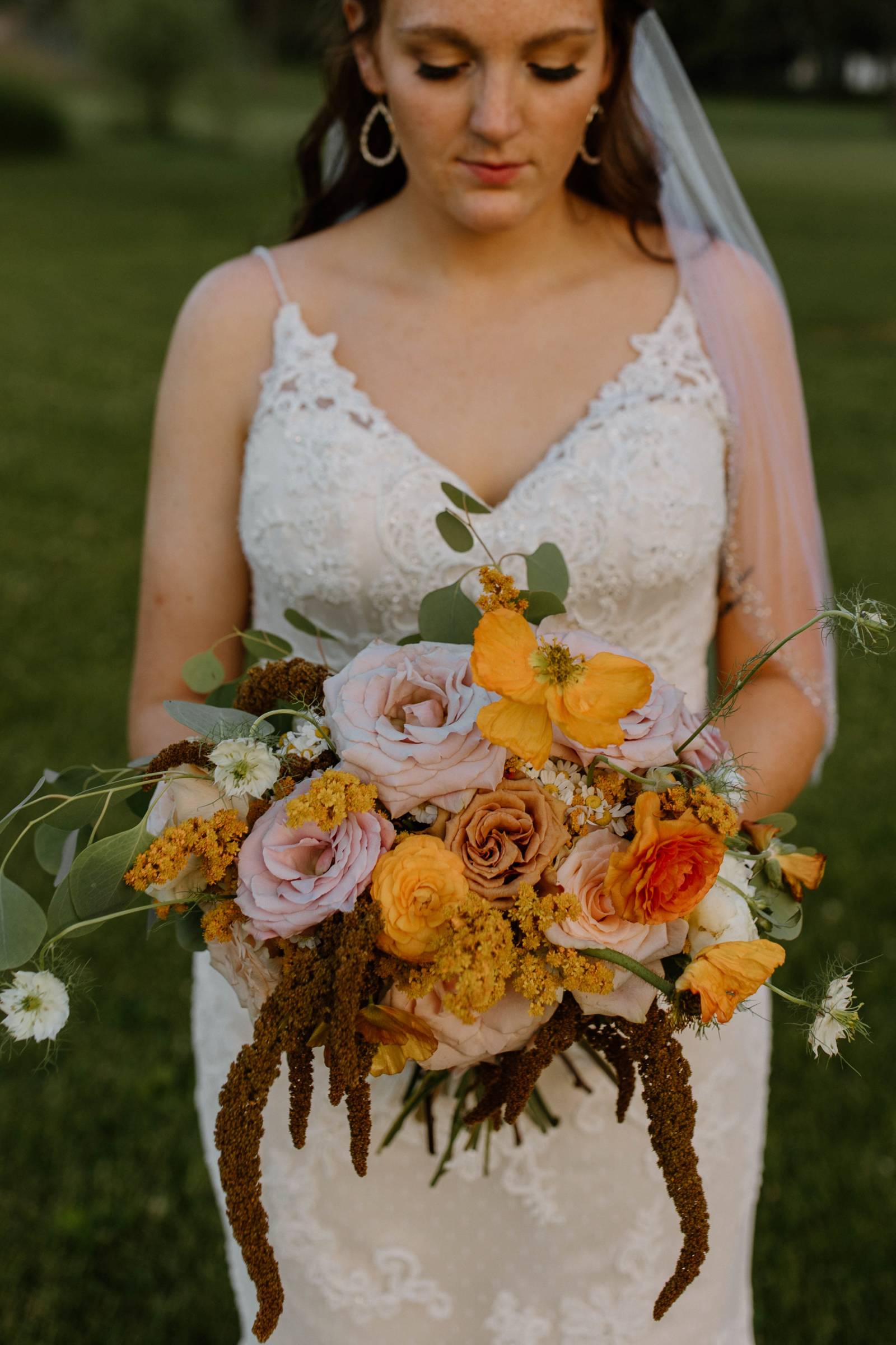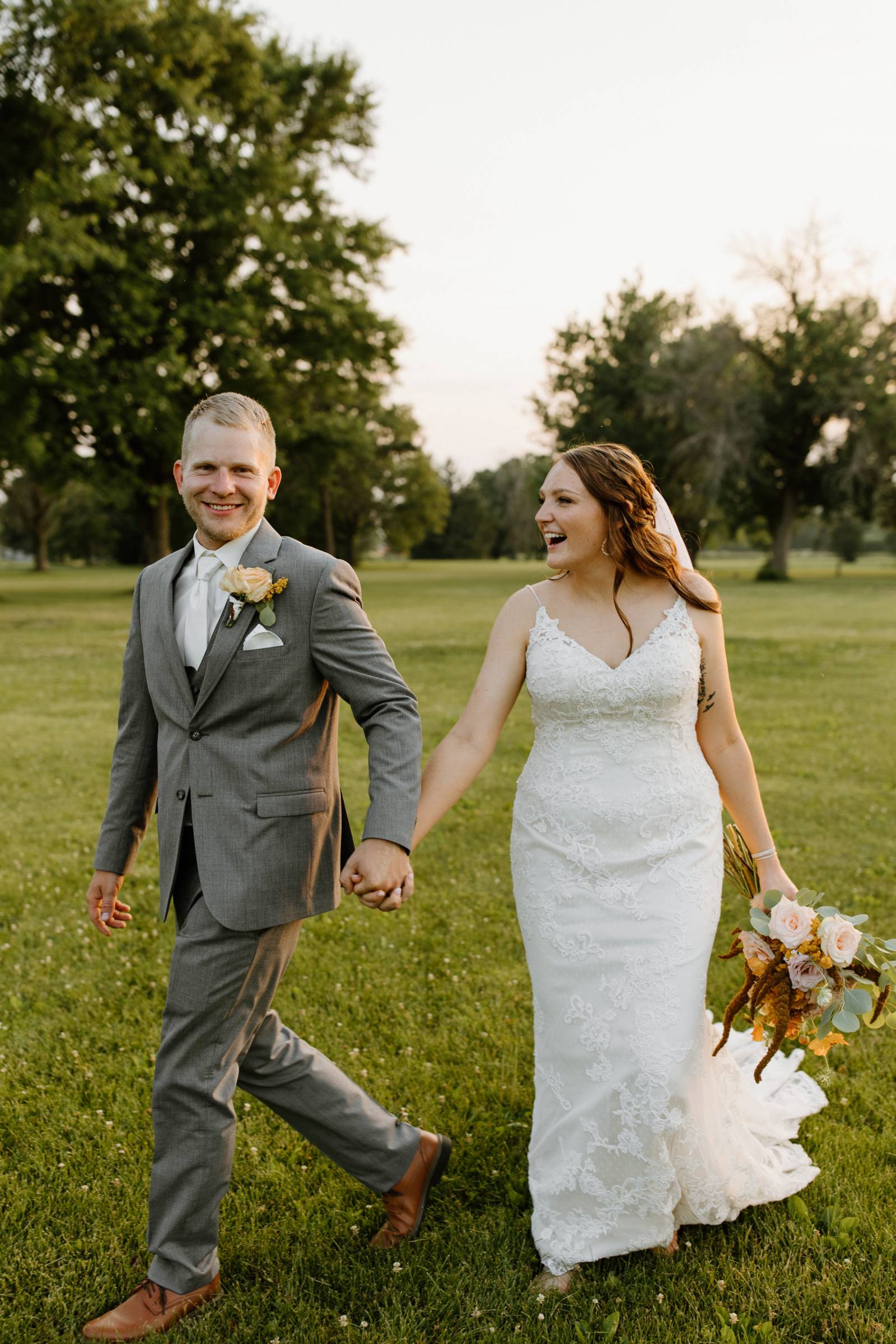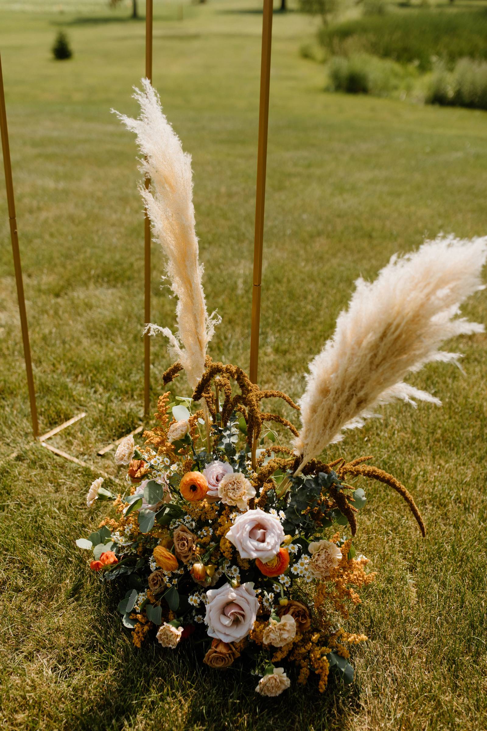 With a warm, sunset-inspired color palette, whimsical boho flair, and enough plants and blooms to make Mother Nature herself proud, Jordan and Austin’s June wedding at Maple Grove Venues just outside La Crosse, Wisconsin, was the perfect sunny summer celebration of love.