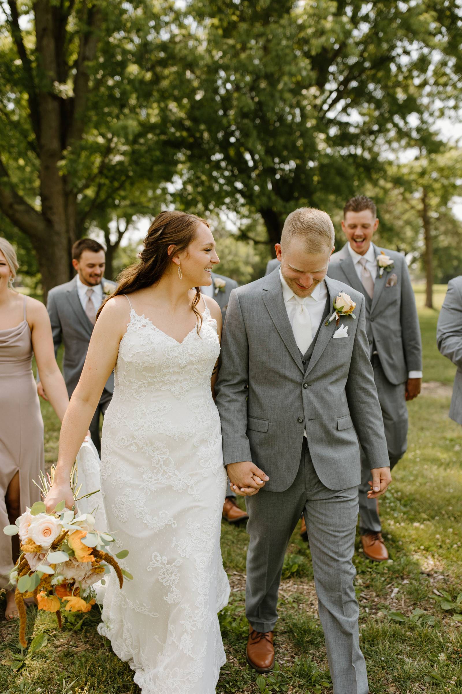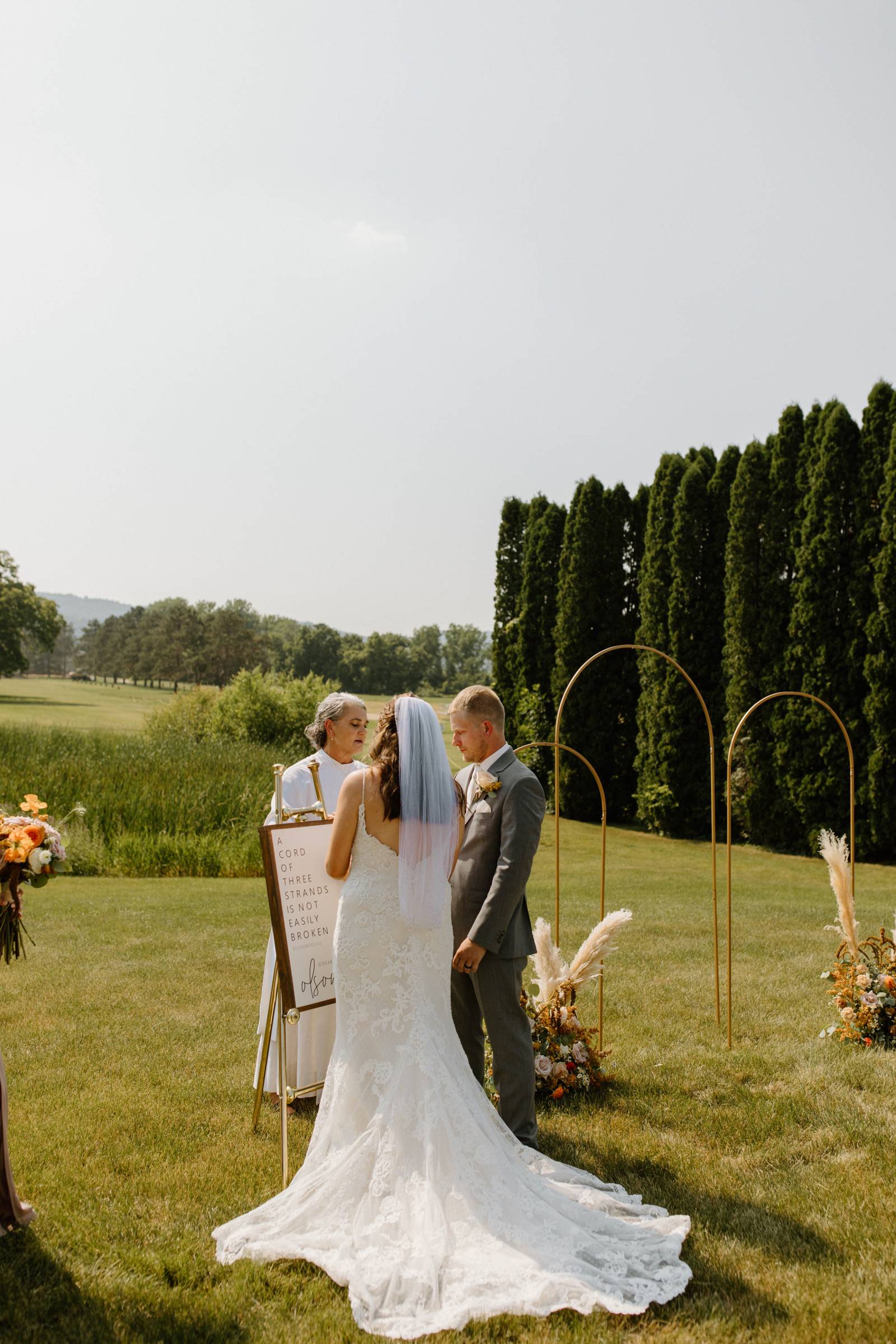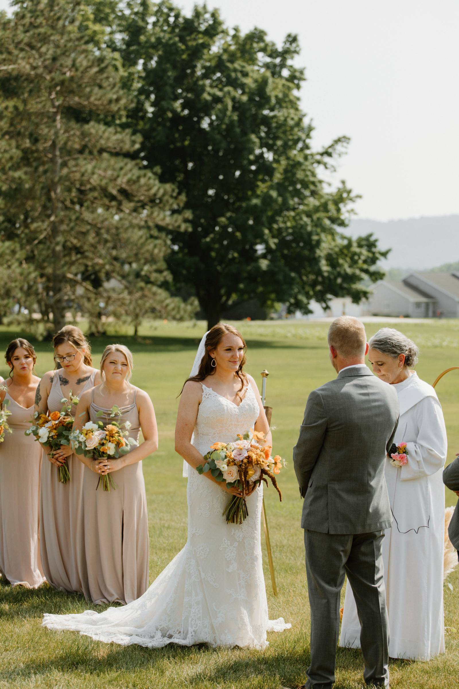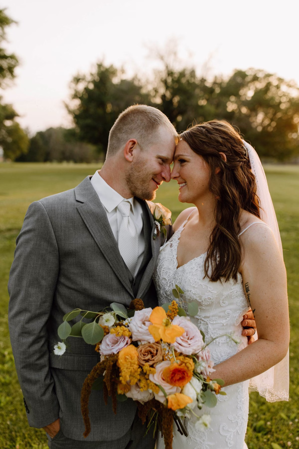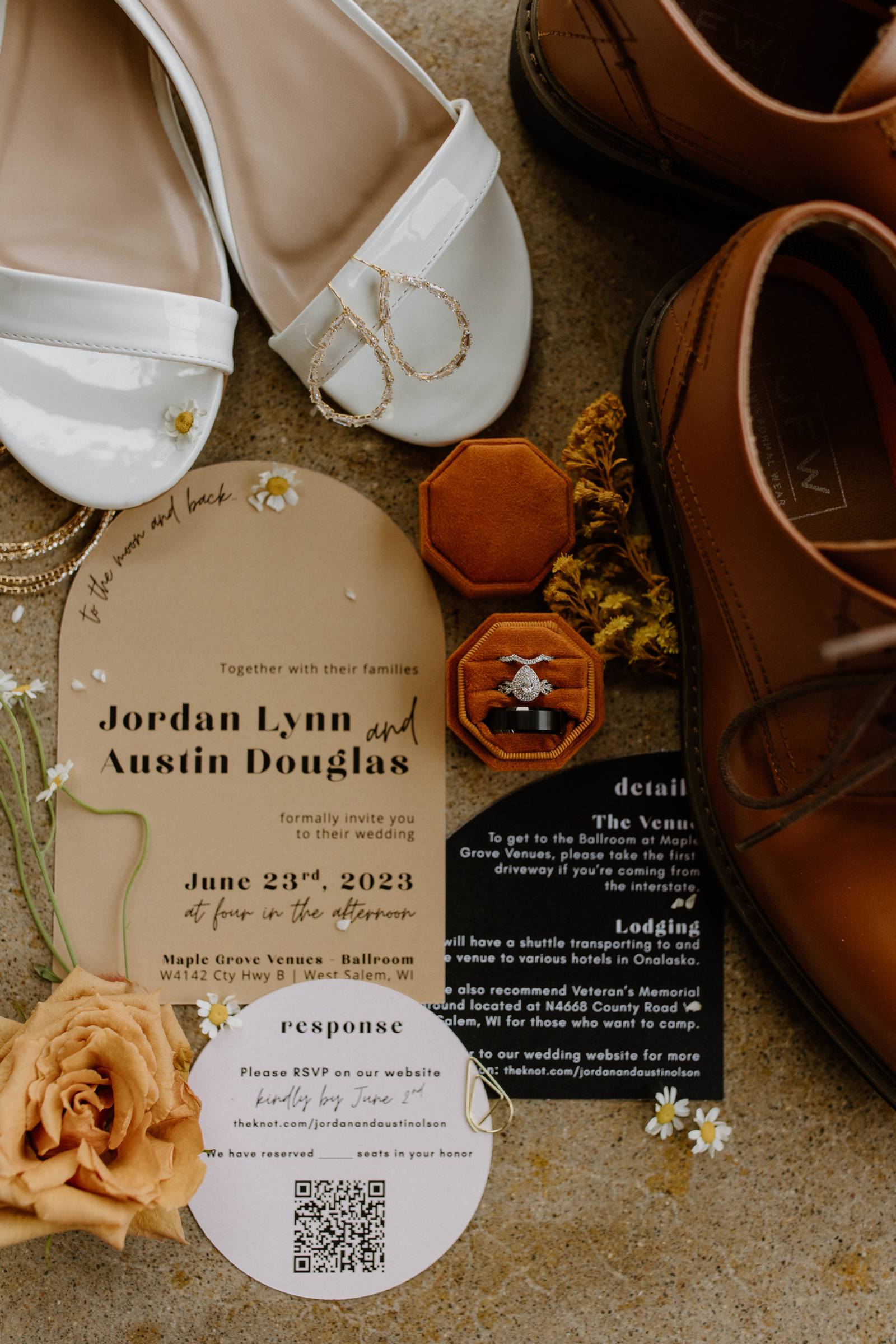 With a warm, sunset-inspired color palette, whimsical boho flair, and enough plants and blooms to make Mother Nature herself proud, Jordan and Austin’s June wedding at Maple Grove Venues just outside La Crosse, Wisconsin, was the perfect sunny summer celebration of love.