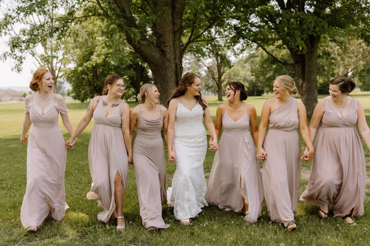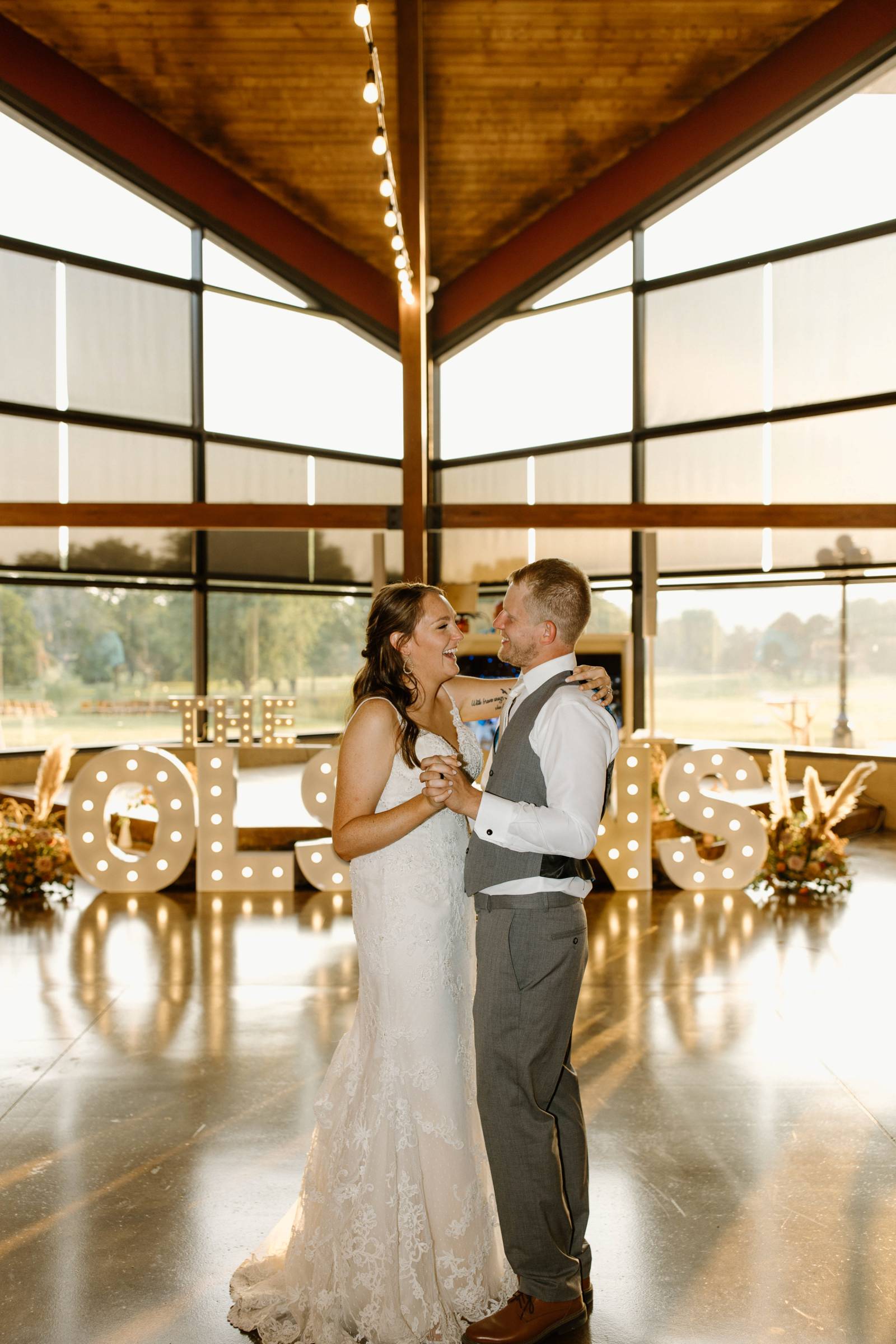 A boho-chic layered arch invitation suite designed by BP Creationery beautifully set the tone for the day’s vibe. Jordan was a vision in her gown from Charlotte’s Bridal & Formal Wear, and unique pieces from AliLou Events and Resource Vintage Rentals transformed the venue into a stylish scene set for a memorable event. To top off the evening, Well Lit illuminated the dance floor with their custom marquee letters spelling out the couple’s last name as they shared a romantic first dance. Dive into every dreamy, joyful detail from Jordan and Austin’s cheerful celebration below!