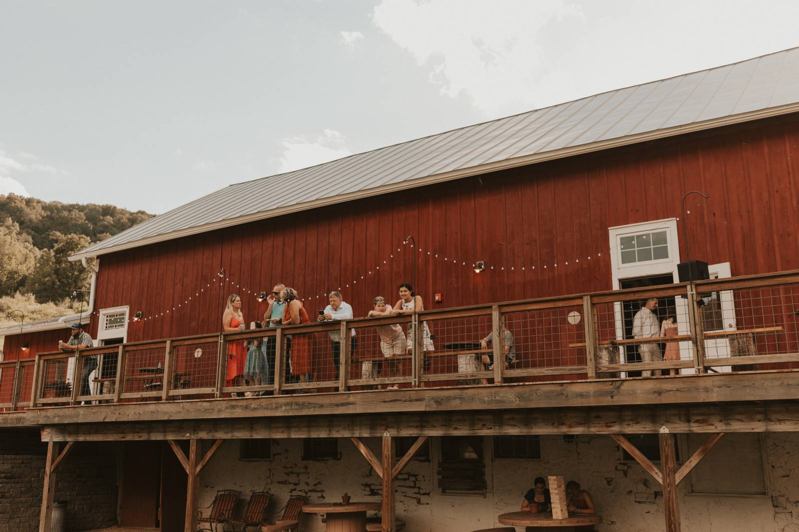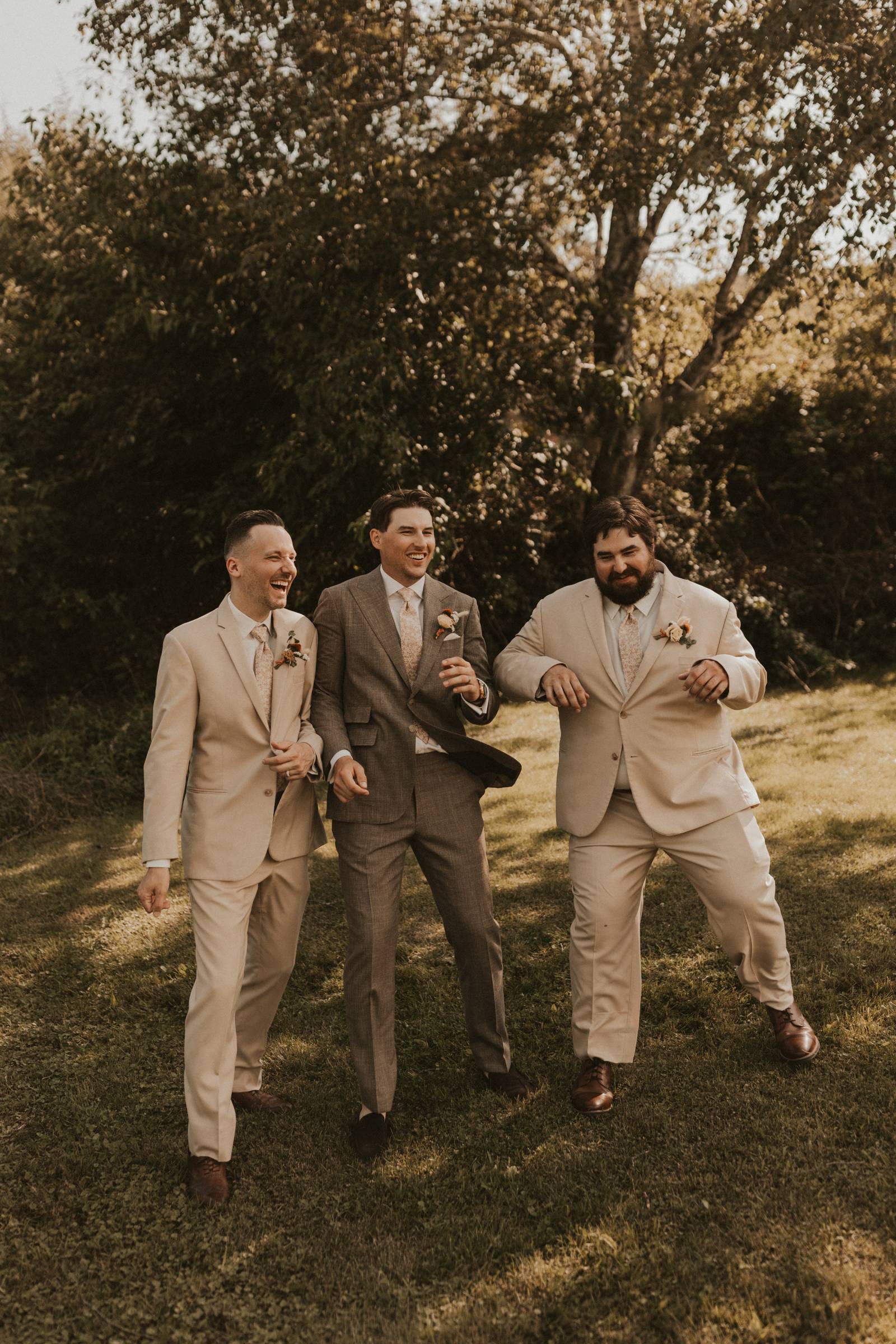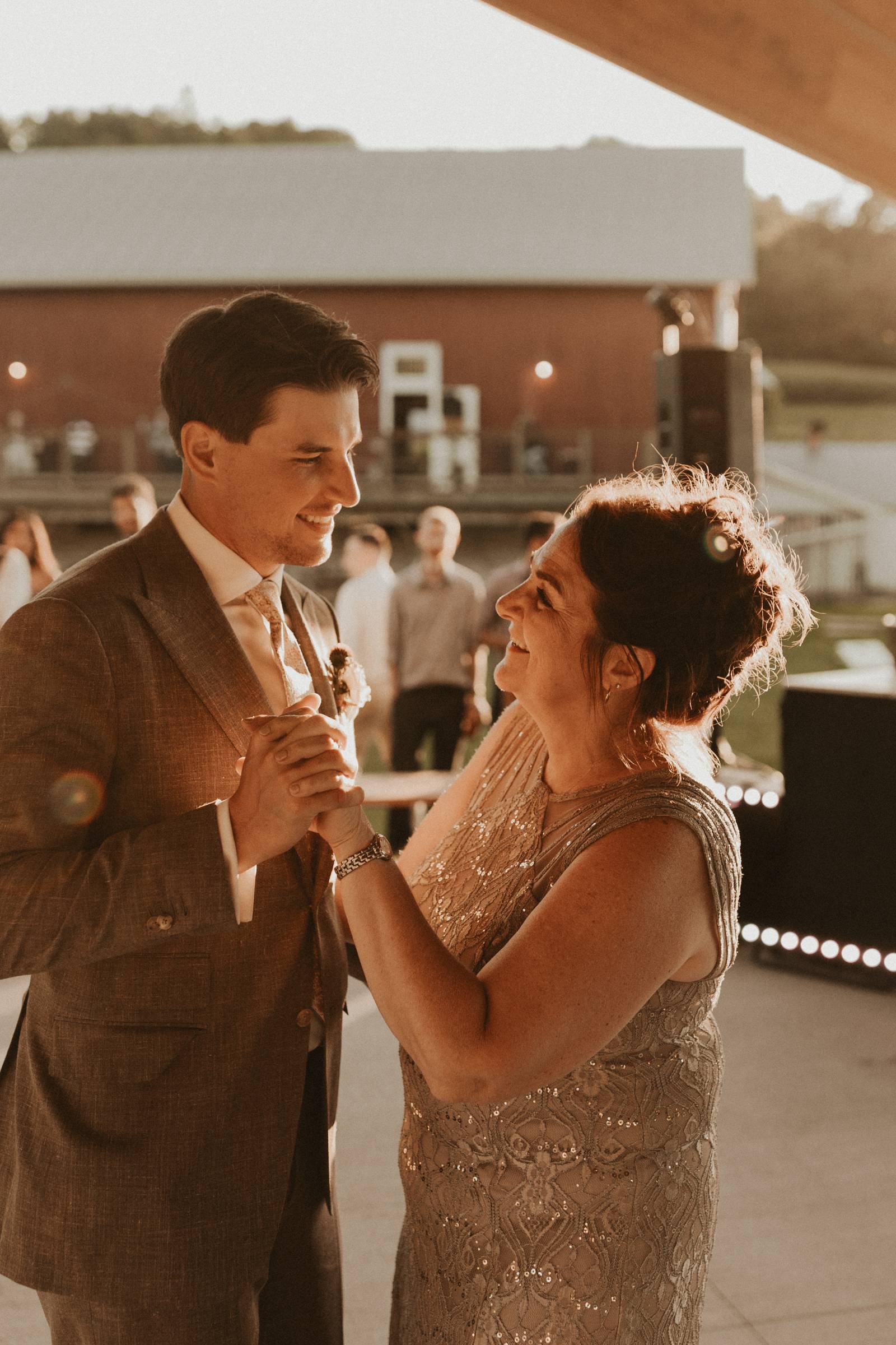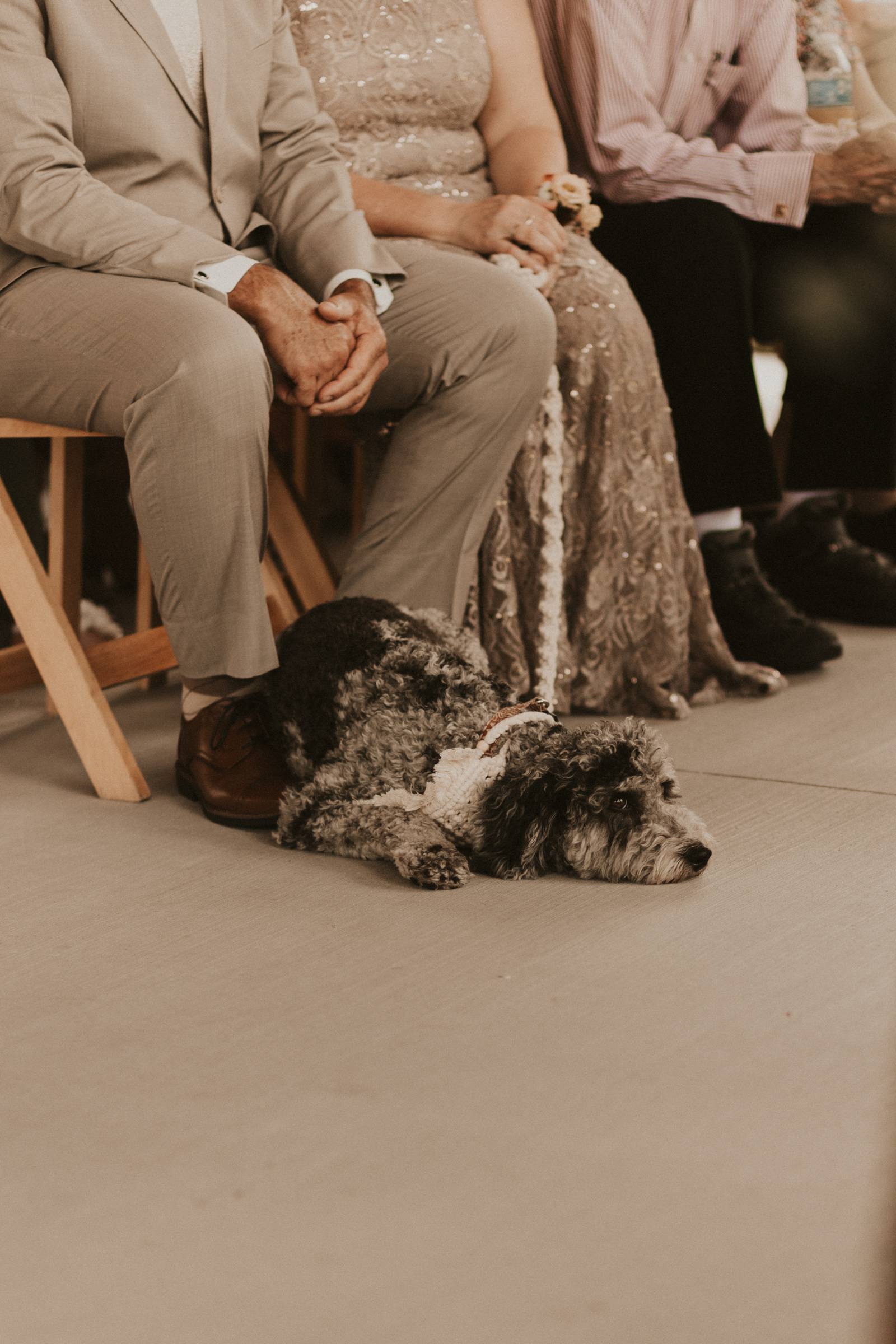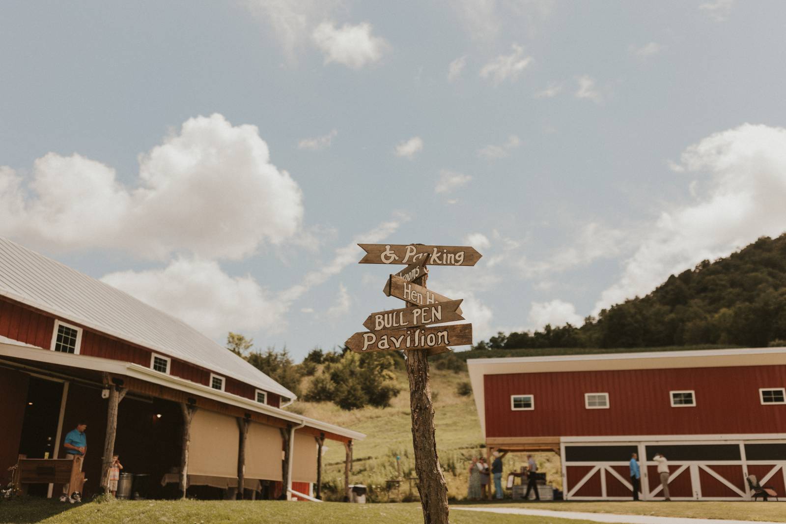 From Elisa’s lacy dress to the macrame pendant lighting and wood accents, their day was a bohemian dream filled with natural textures. Elisa and Quinn embraced a warm, neutral color palette mixed with rich terracotta tones that Pennycress Studio brought even further to life with their stunning statement floral arrangements. Their celebration was brimming with personal touches, from the couple’s beloved dog, Lennie, making his appearance in the fun and in their signage to custom koozie favors, cow cupcakes, and a unique wood branding ceremony that beautifully symbolized their unity. Linda’s Bakery crafted a delectable semi-naked cake adorned with flowers that complemented the day’s earthy aesthetic. To top the night off? Late-night pizza and a fire–the perfect ending to a summer celebration.