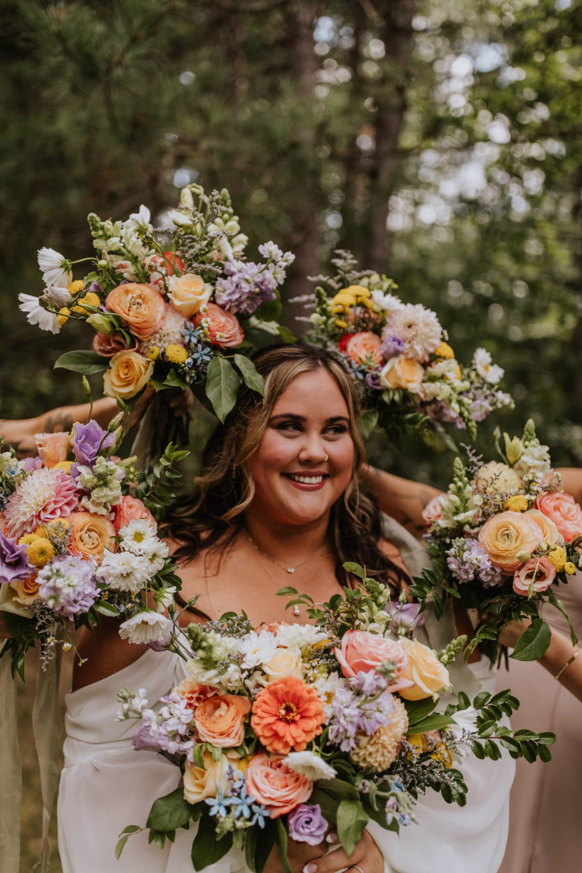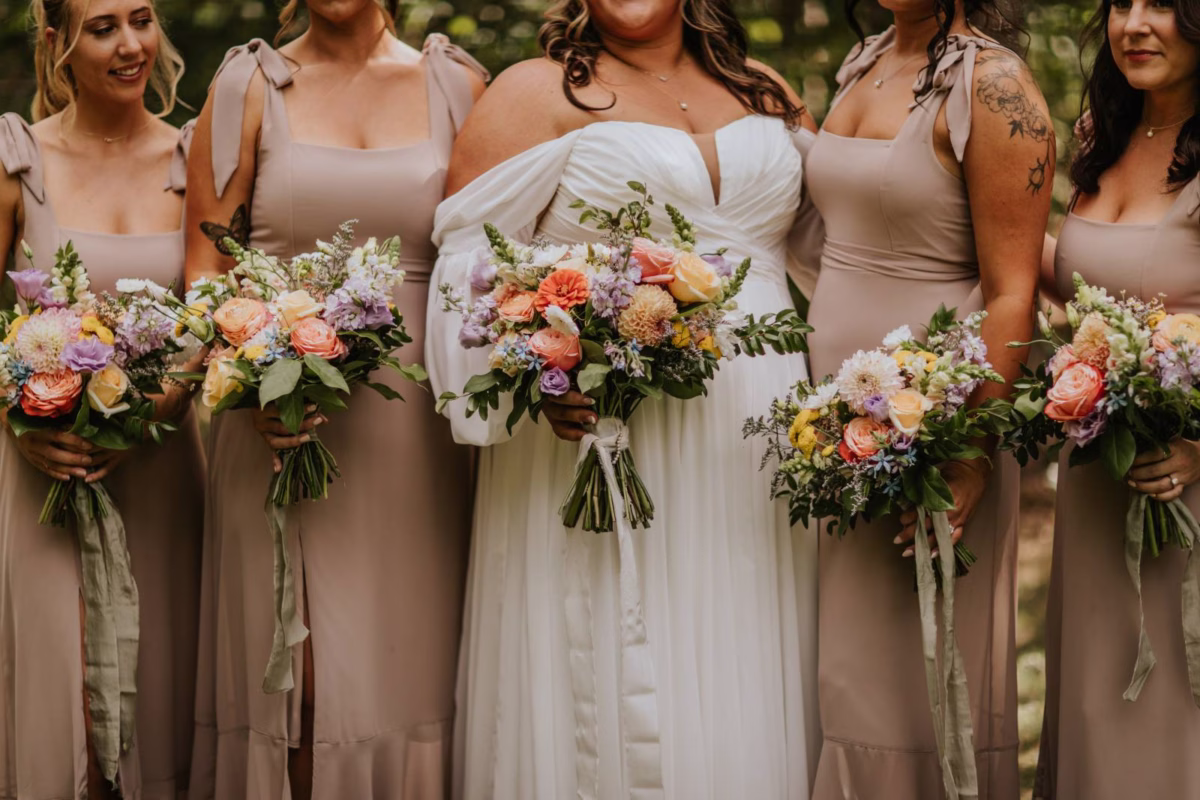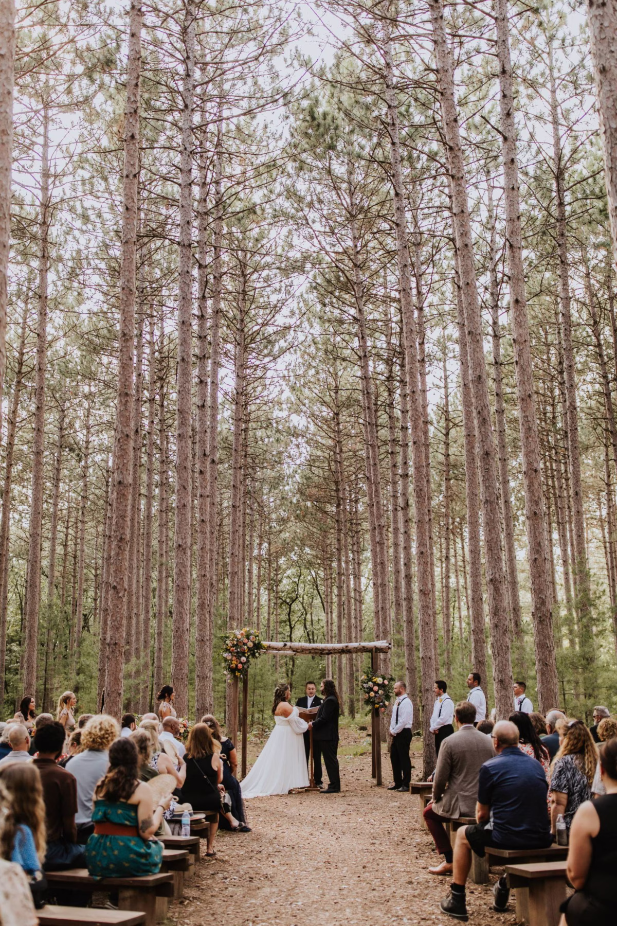 These two celebrated their love on a beautiful August day tucked in the Wisconsin woods at Burlap & Belles’ venue in Black River Falls, surrounded by the romance of the pines, the love of their friends and family, and the whimsy of wildflowers gracing every corner.