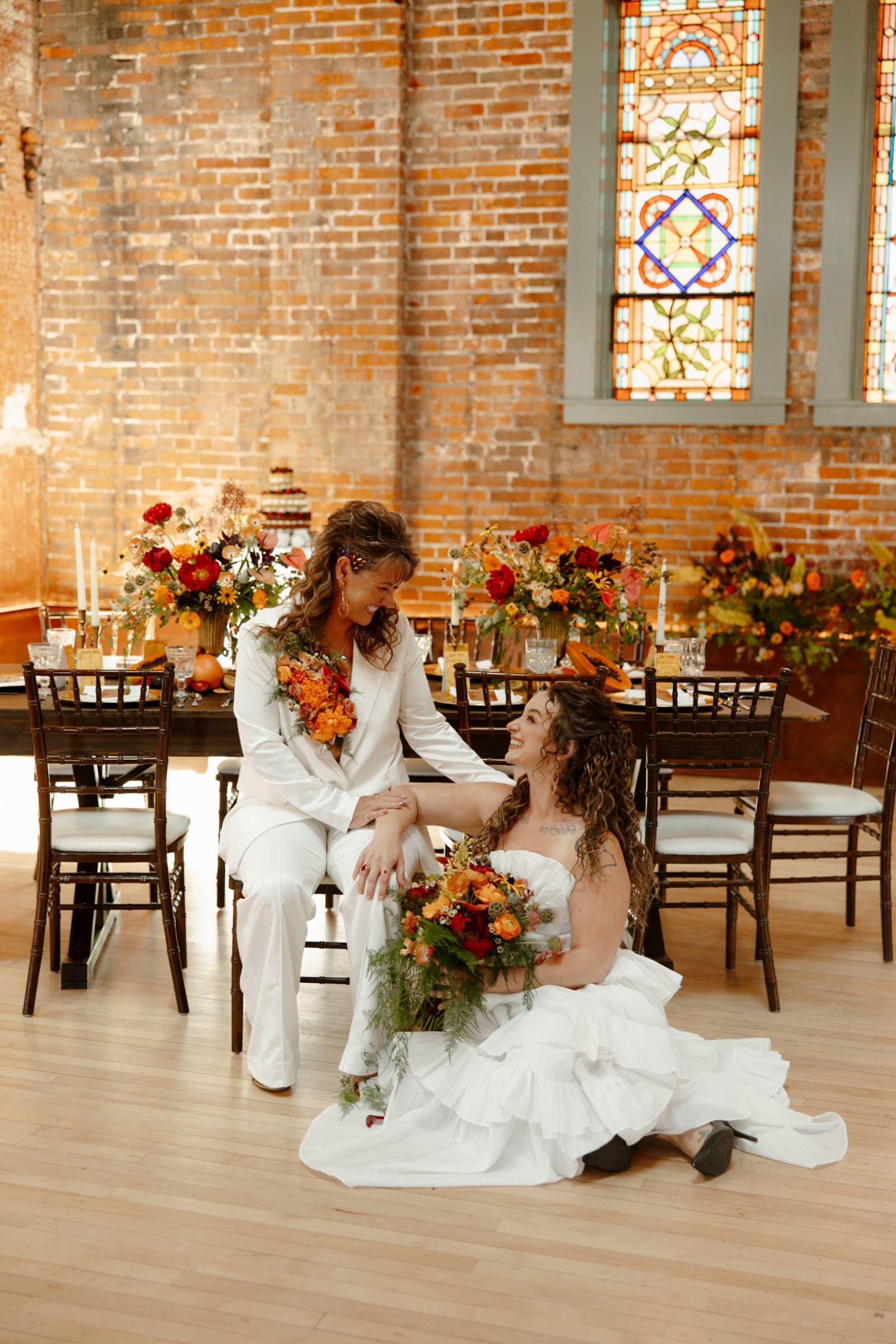 Designed by and photographed at Cappella Weddings & Events, this warm and inviting styled shoot was brought together thanks to Skyler & Vhan Photography, Julia Elizabeth Photo & Film, Bloom & Knot, LK Bridal Studio, Sincerely Yours Studios, Hair Dressed by Kristyn, Esthetician Devinne, Resource Vintage Rental, Apothik, Eclectic Sol, and models Jenna & Cailee.