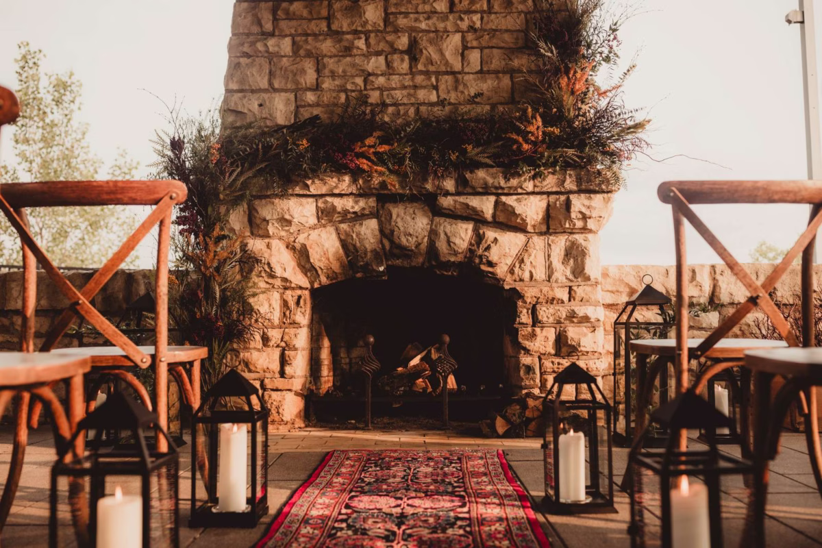 Nestled atop Wisconsin’s rolling bluffs, this wedding design drew from natural elements like fire, stone, wood, textured fabrics, and rich colors. Local vendors collaborated to create an inviting yet luxurious celebration filled with warmth, fresh air, and the untamed spirit of the outdoors!