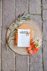 Warm, vibrant orange tones, soft peach hues, lush greenery, touches of terracotta accents, and delicate details set the scene for an Italian-influenced celebration that feels effortlessly inviting yet uniquely unforgettable.