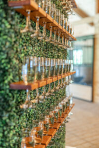 The stunning seating chart, printed on foamboard, was displayed on one of BP Creationery’s rentable backdrops and was customized in a warm, vibrant orange that seamlessly tied into the day’s palette. Additionally, the table numbers and welcome sign, designed with plaster and acrylic lettering, brought further dimension, texture, and artistry to the decor.