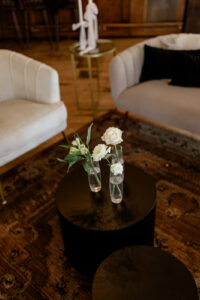 Is there anything more fun than bouquet building with your besties? Orange Door Event Rentals’ bubbly bar cart was the perfect display for this creative activity that doubles as a gorgeous take-home favor!