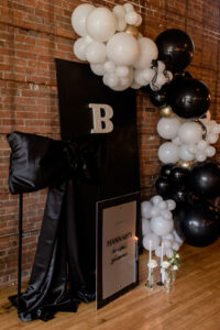 A glossy black and white invite embellished with pearls and satin ribbon details from BP Creationery kicked off the celebration in style. Their array of stationery and signage pieces created an elevated, sleek, and cohesive look to the event from start to finish.