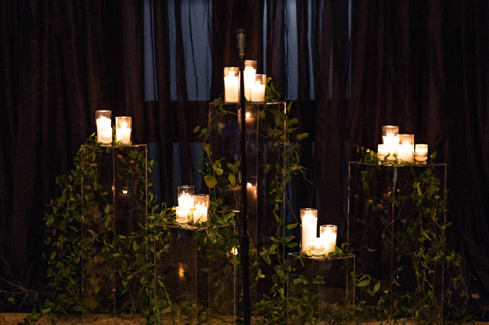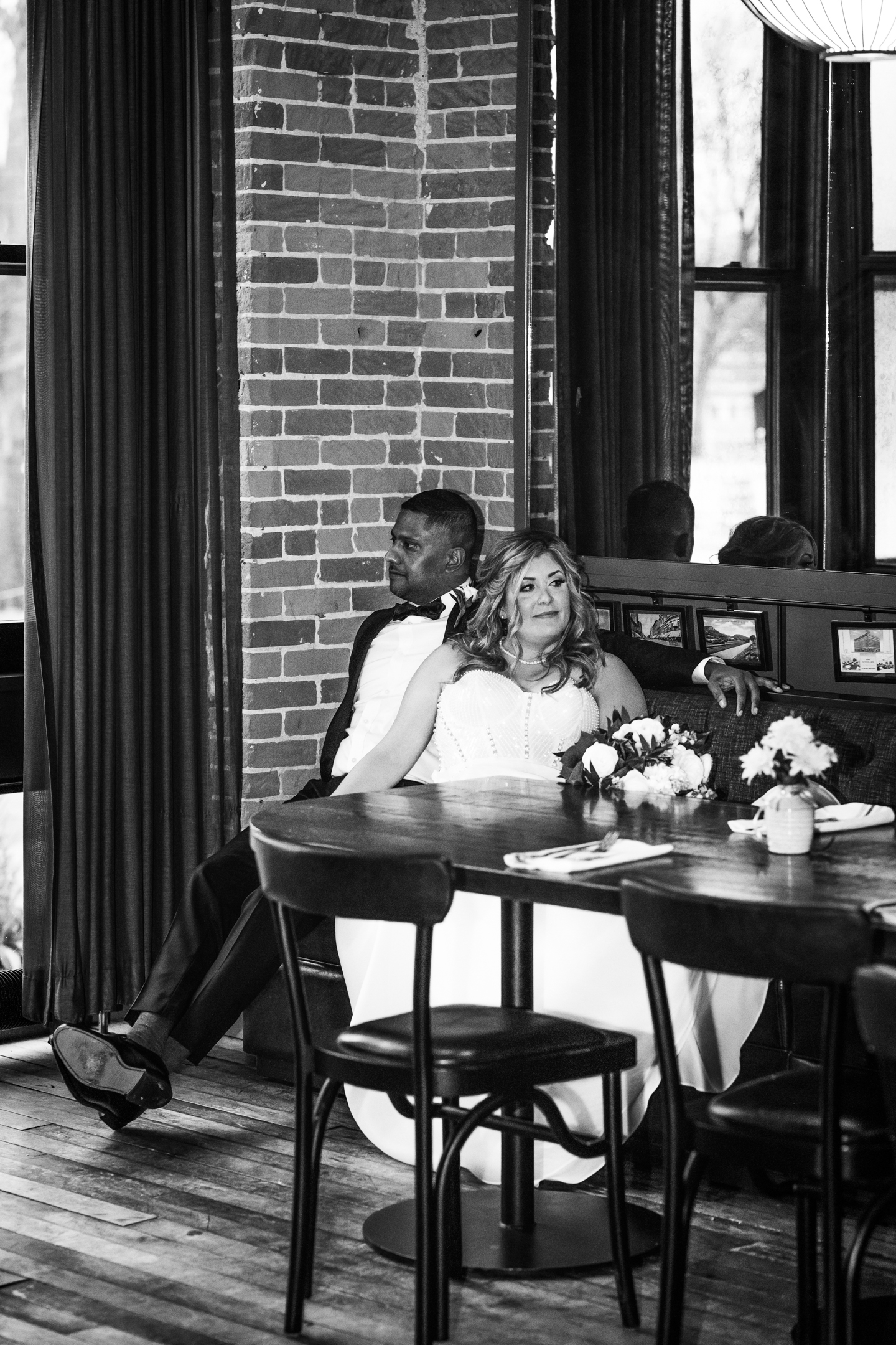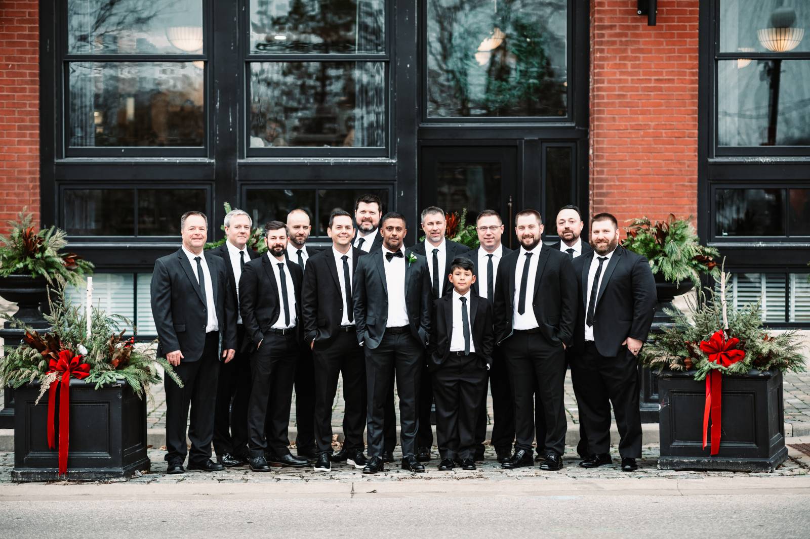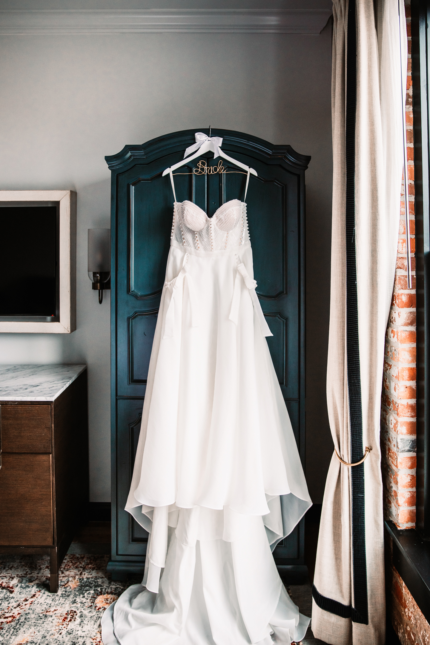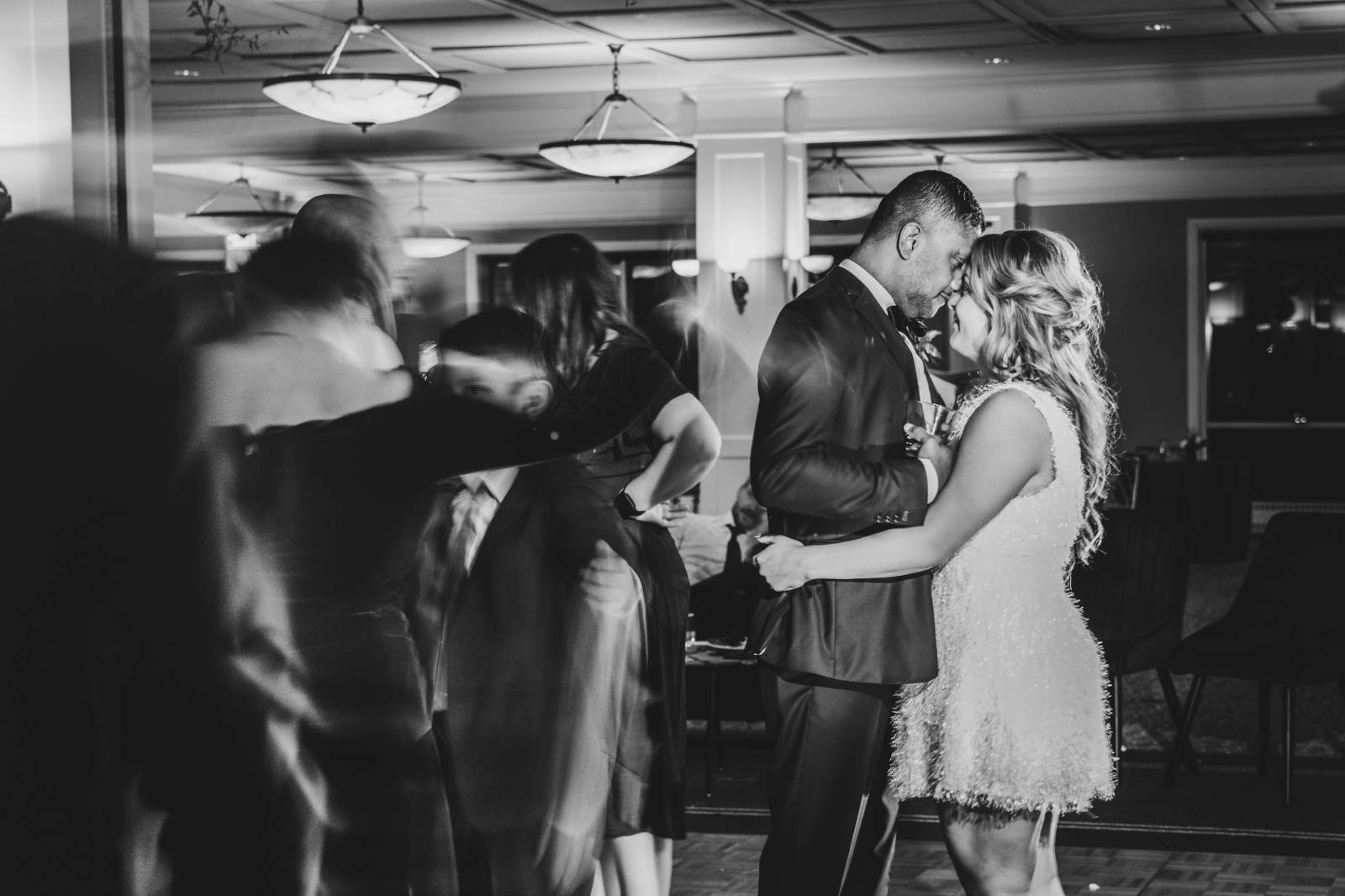 Given Britany and Vinay planned their wedding from North Carolina, Orange Door Weddings played a crucial role in the process of creating a winter celebration that was dark, intimate, cozy, and romantic. With modern architecture, red brick backdrops, and plenty of room to dance, the Cargill Room at The Waterfront Cargill was the perfect location to host a twist on a traditional black-and-white celebration. Glittering details sprinkled throughout the fashions and the decor, including plenty of disco balls and sparkles on Britany’s ceremony dress and her reception look.