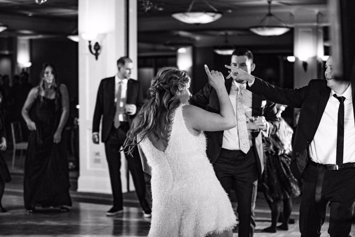 For couples currently in the planning process, Britany and Vinay encourage prioritizing what you love and what makes you both happy–whether that’s a formal affair or a more laid-back celebration, writing, “It’s easy to feel pressured by others’ opinions. Remember, it’s your day, and the decisions should align with what feels right for you two.” For them, that meant live music, a cocktail-style meal, and a cutting cake from Meringue Bakery. Maygen Lacey provided music for the reception and cocktail hour, with the Bluewater Kings band keeping the dance floor packed all night.