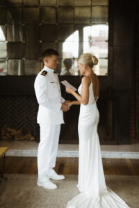 Reciting your vows or personal thoughts in front of a group of people may not be your thing, but you want to make sure you express your thoughts and emotions to your partner privately on your wedding day. This can be accomplished by writing each other a letter you can read to each other during your first look. If you prefer not to see each other before your ceremony, consider a “first touch” instead. Stand back-to-back or around a corner where you can still hear each other’s voices and hold hands. Decide if anyone else will be present, like a photographer and videographer, or if you want it to be just the two of you. If you prefer not to read out loud or want to spend a quiet moment alone soaking in your partner’s words, simply exchange letters with each other. This is also a perfect time to exchange gifts if you have chosen to do so. Oh, and don’t forget a tissue or two!