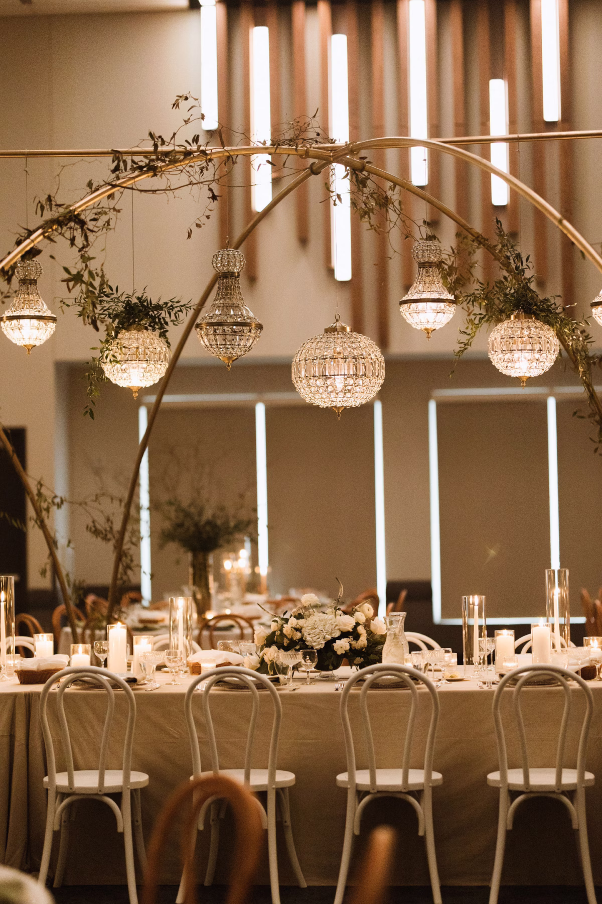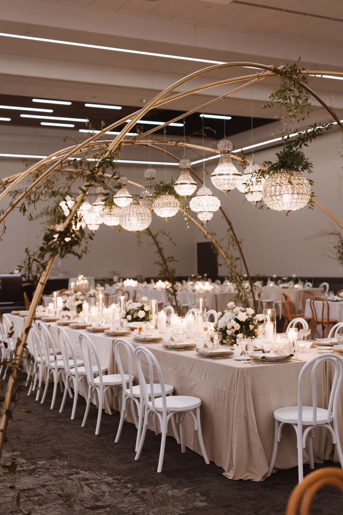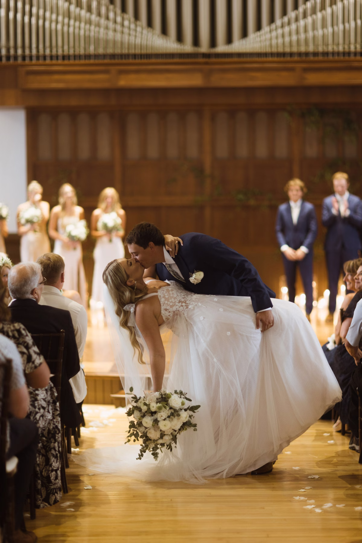 The Cappella Performing Arts Center was the perfect location for the couple's ceremony, which felt both traditional and extravagant thanks to vaulted ceilings, pipe organ backdrop, candlelight, and restored church architecture—not to mention the stained glass windows! The Crescendo String Quartet provided processional and recessional music for an added touch of sophistication.