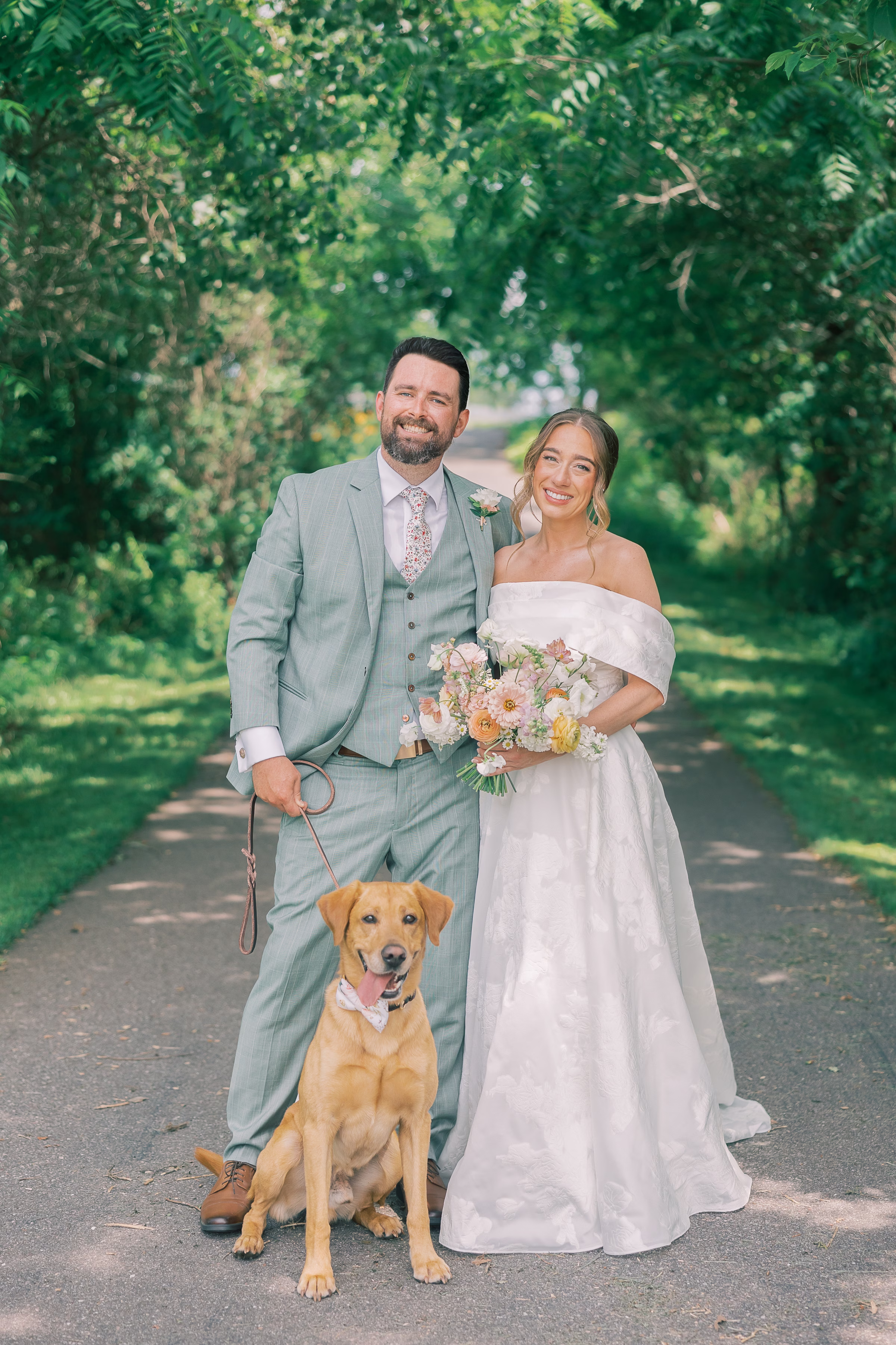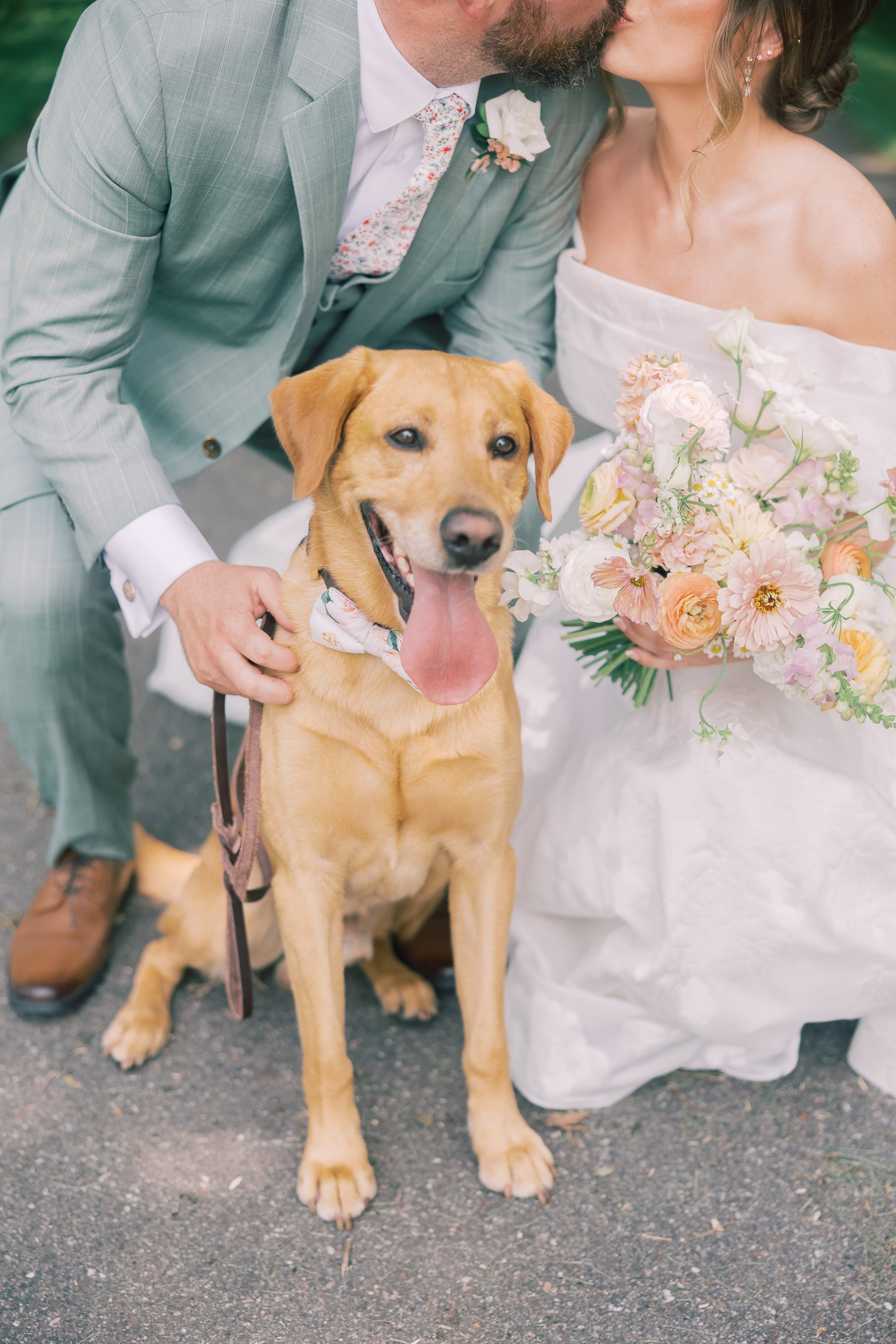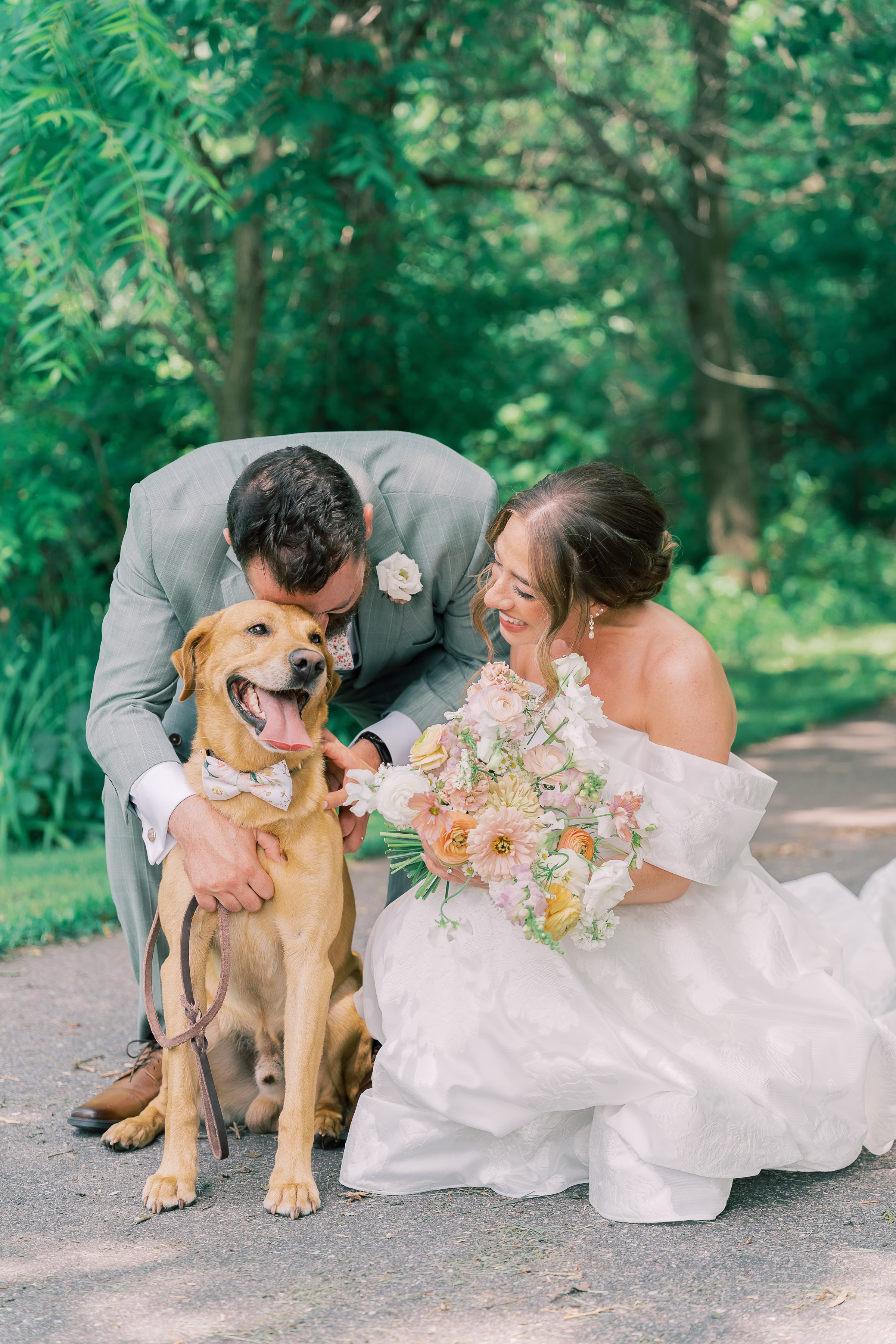 The couple’s dog, Arthur, also briefly joined for portraits, wearing the cutest bow-tie collar.
