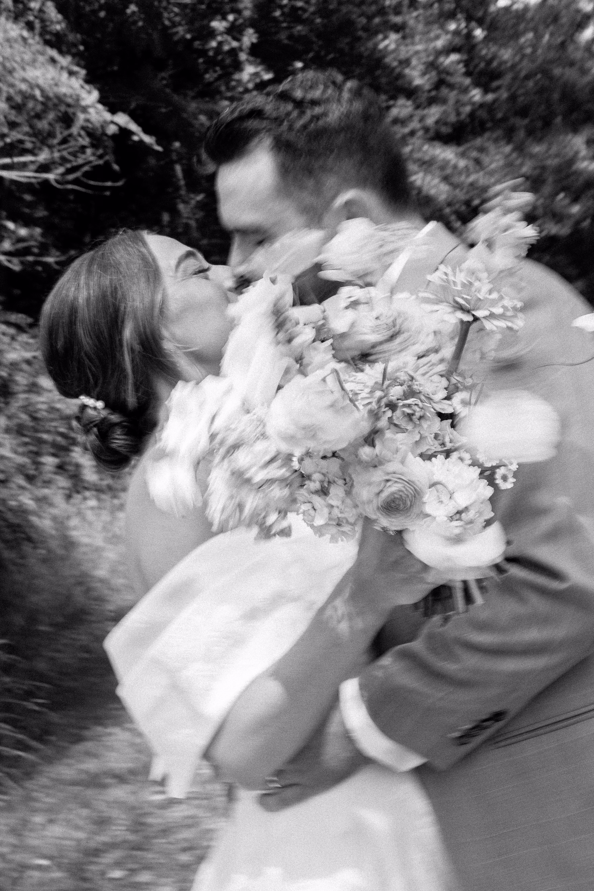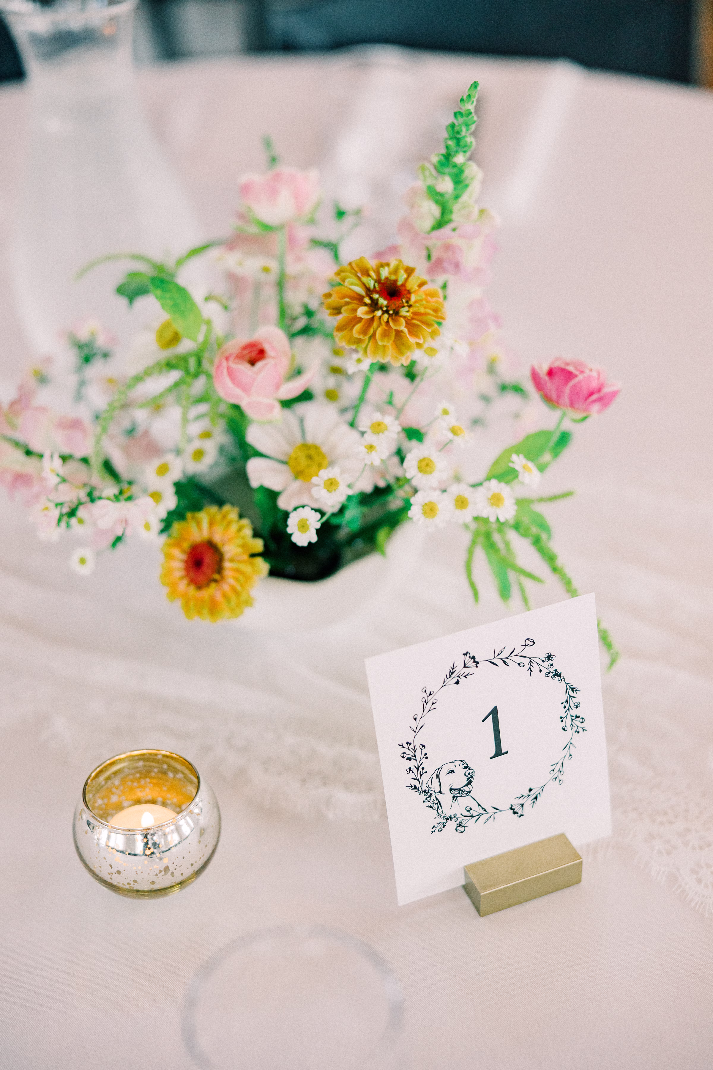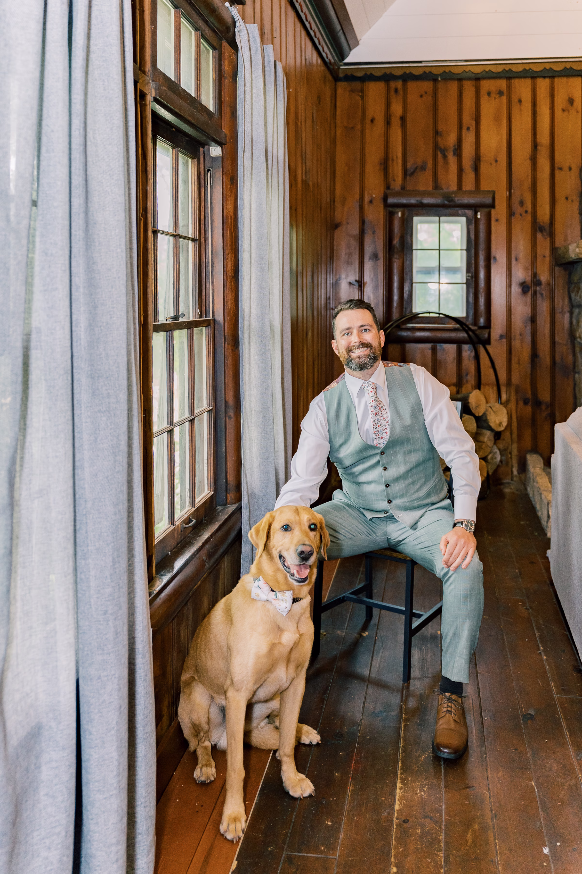 The couple’s dog, Arthur, also briefly joined for portraits, wearing the cutest bow-tie collar.