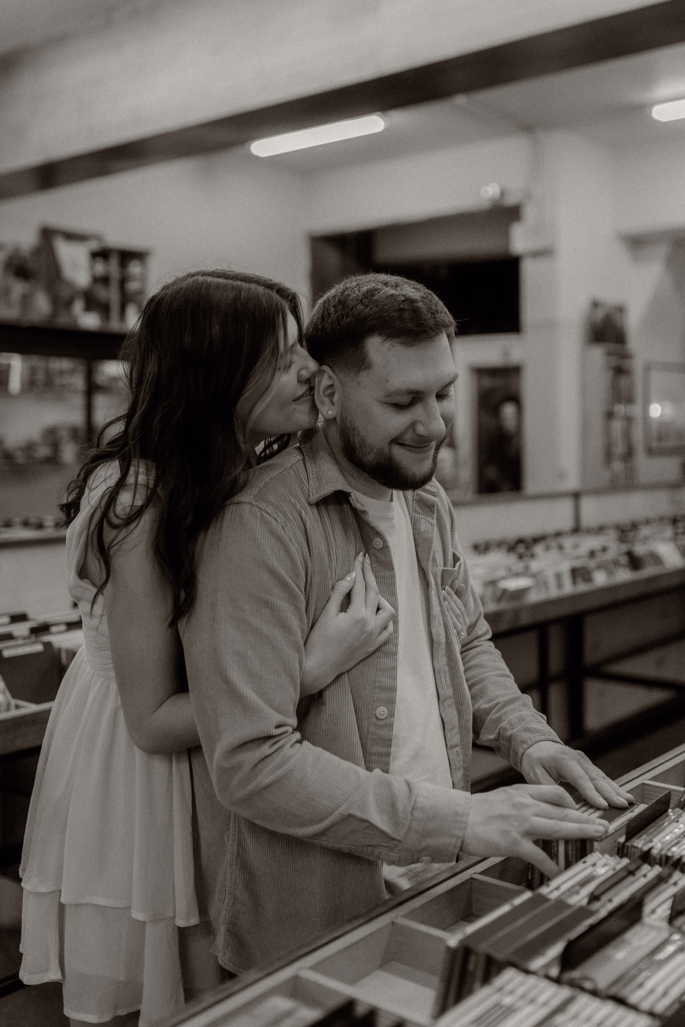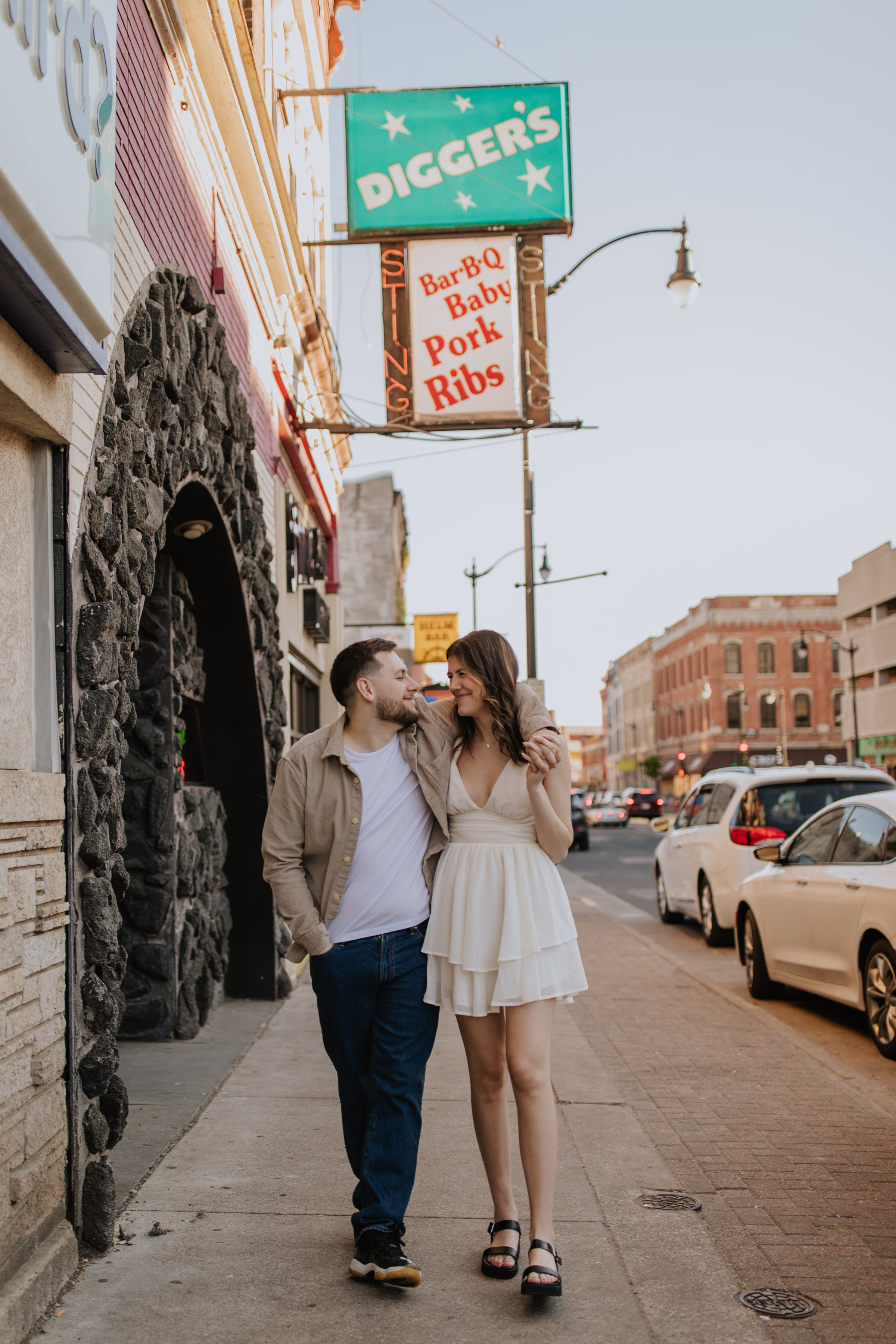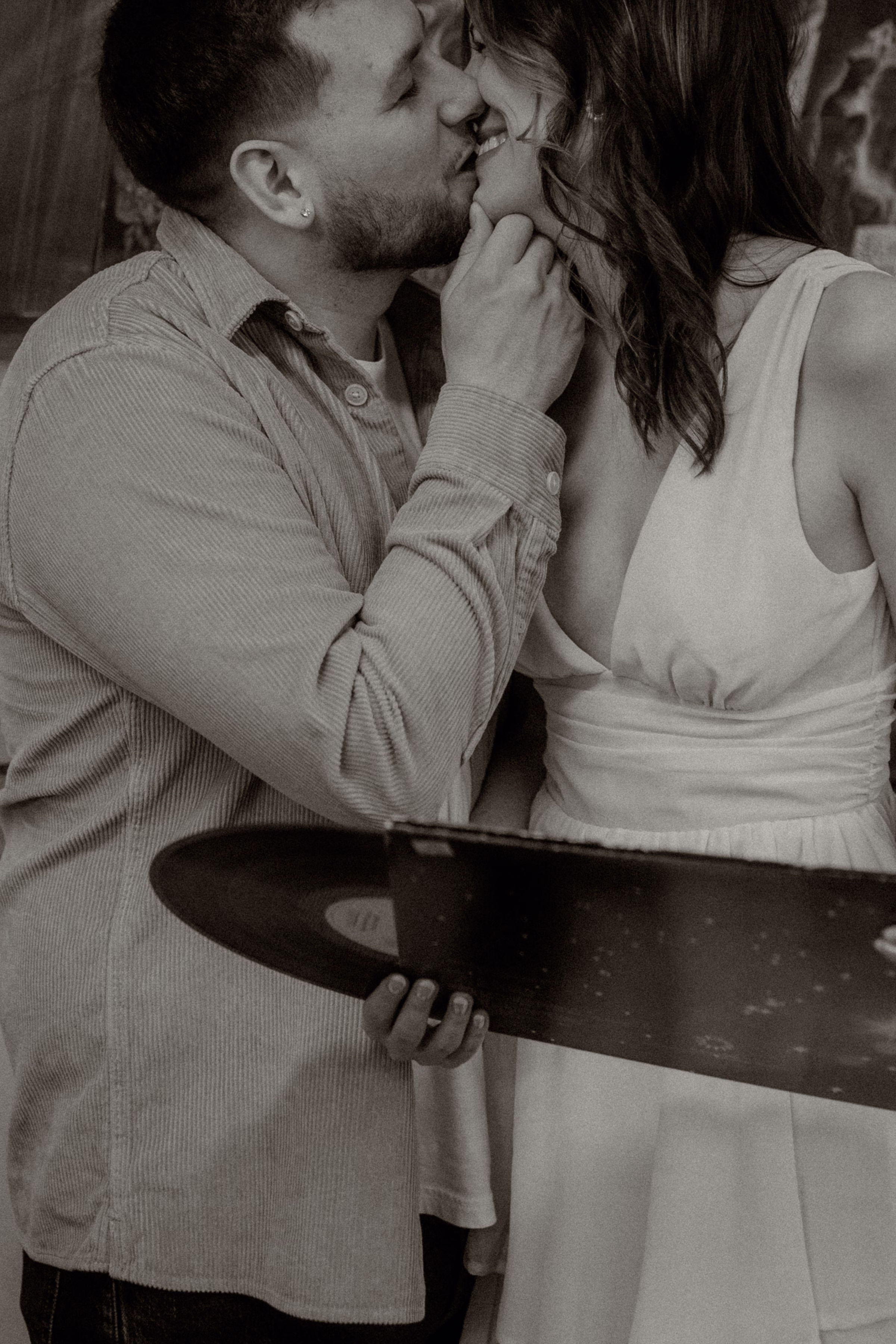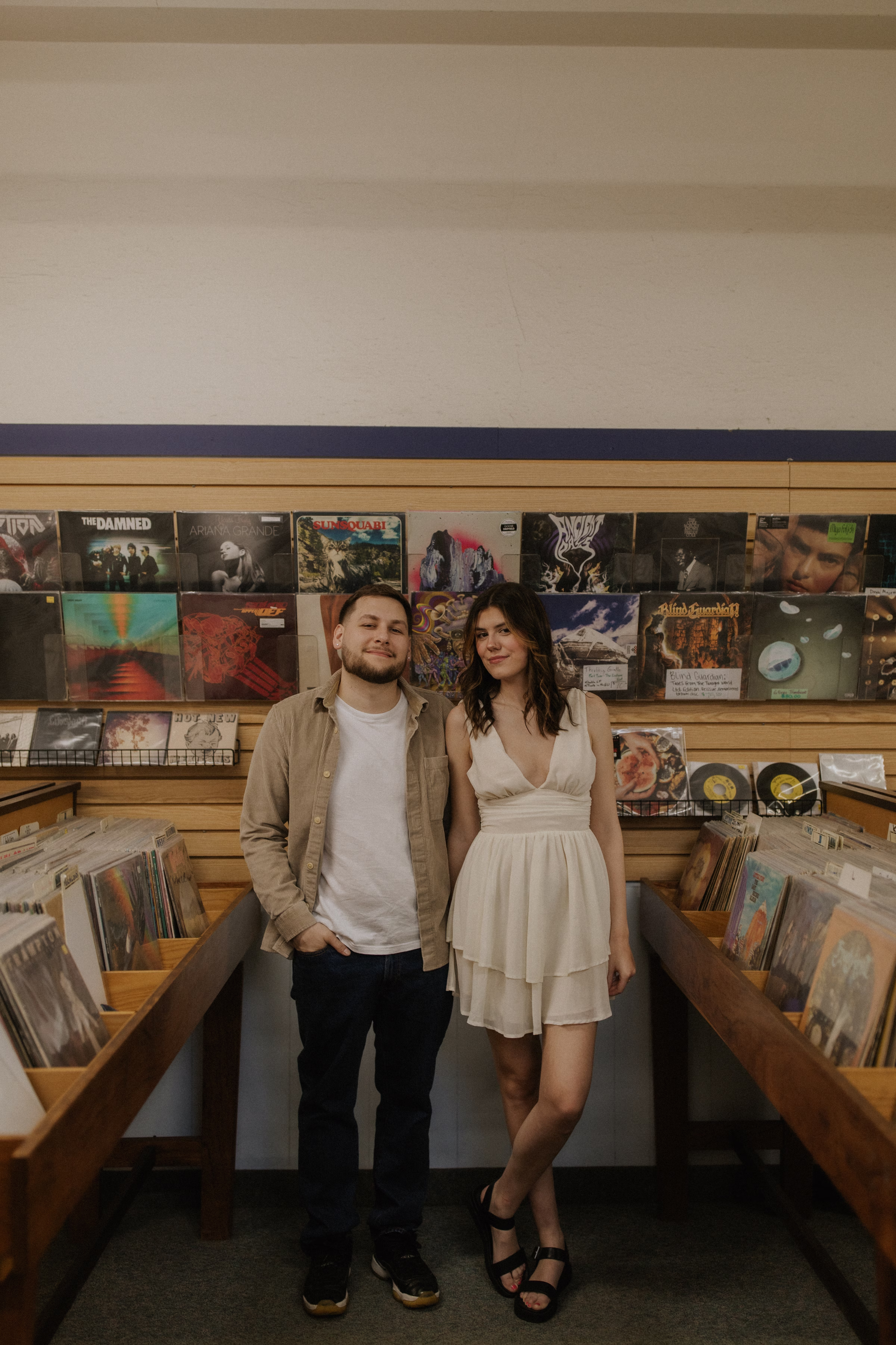 The music themes continued down the street at Deaf Ear Record Exchange, a fun and romantic spot to browse vinyl records, CDs, and collectibles. Afterwards, Marilyn & Jared embraced the small-town architecture, taking photographs along downtown walkways.