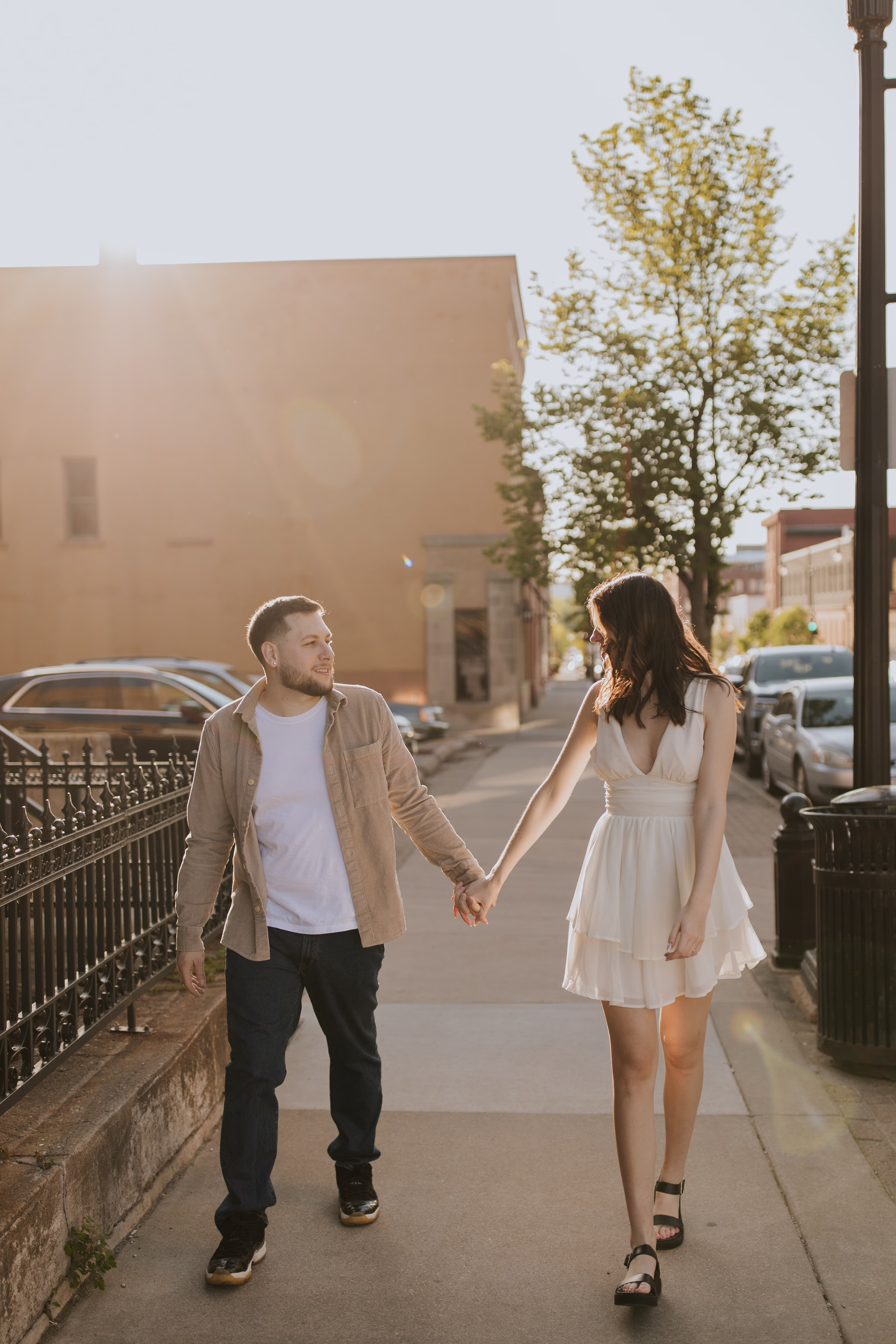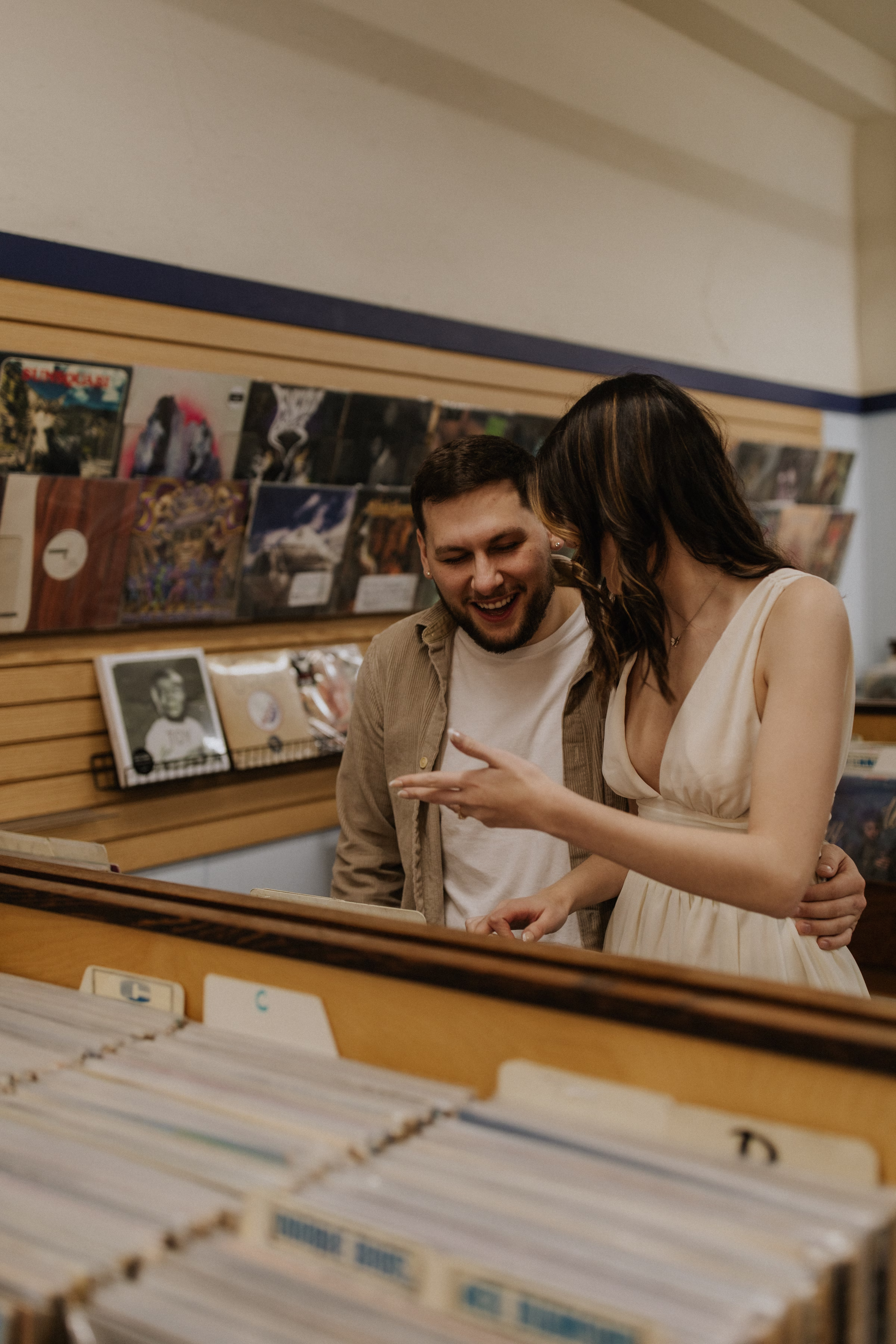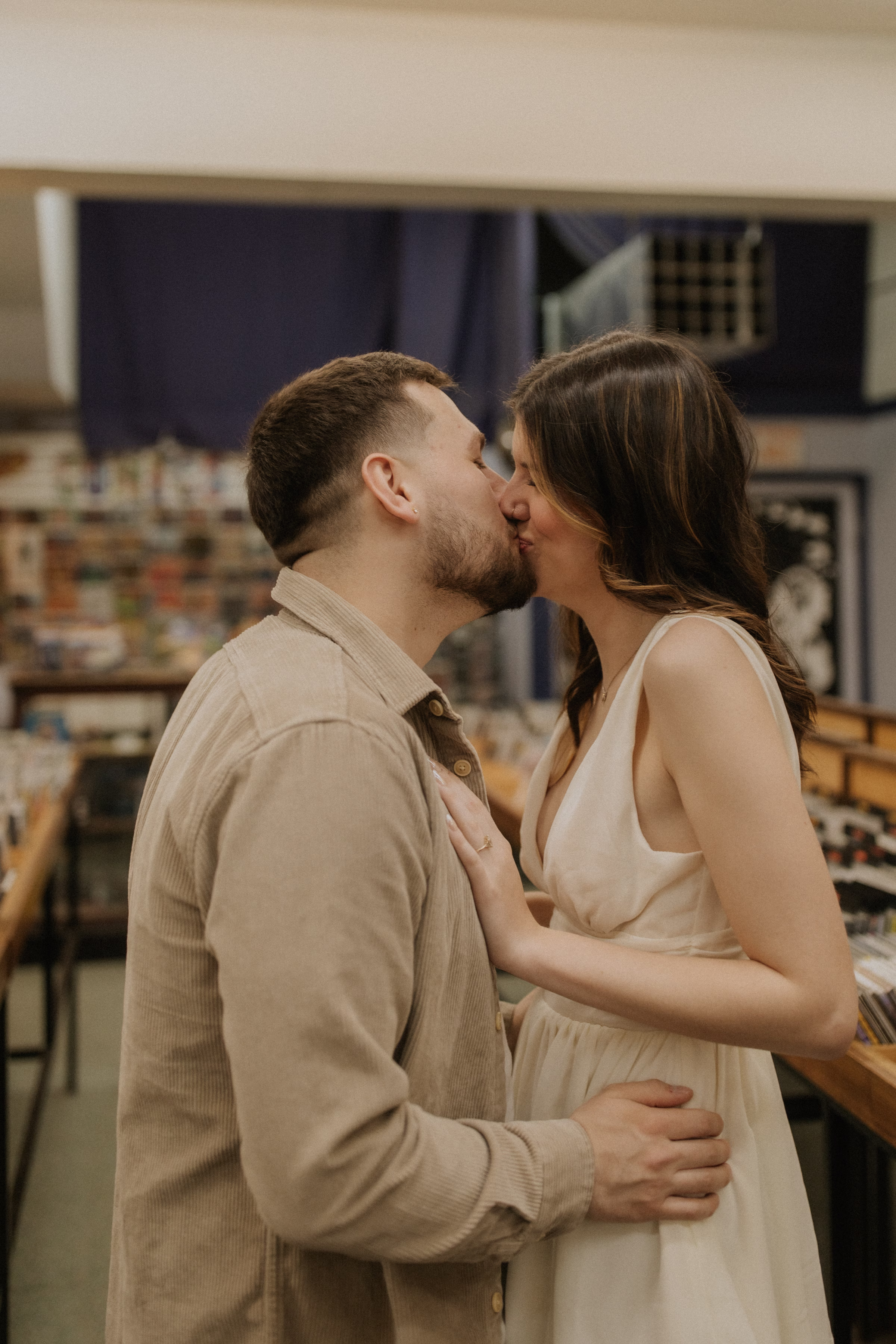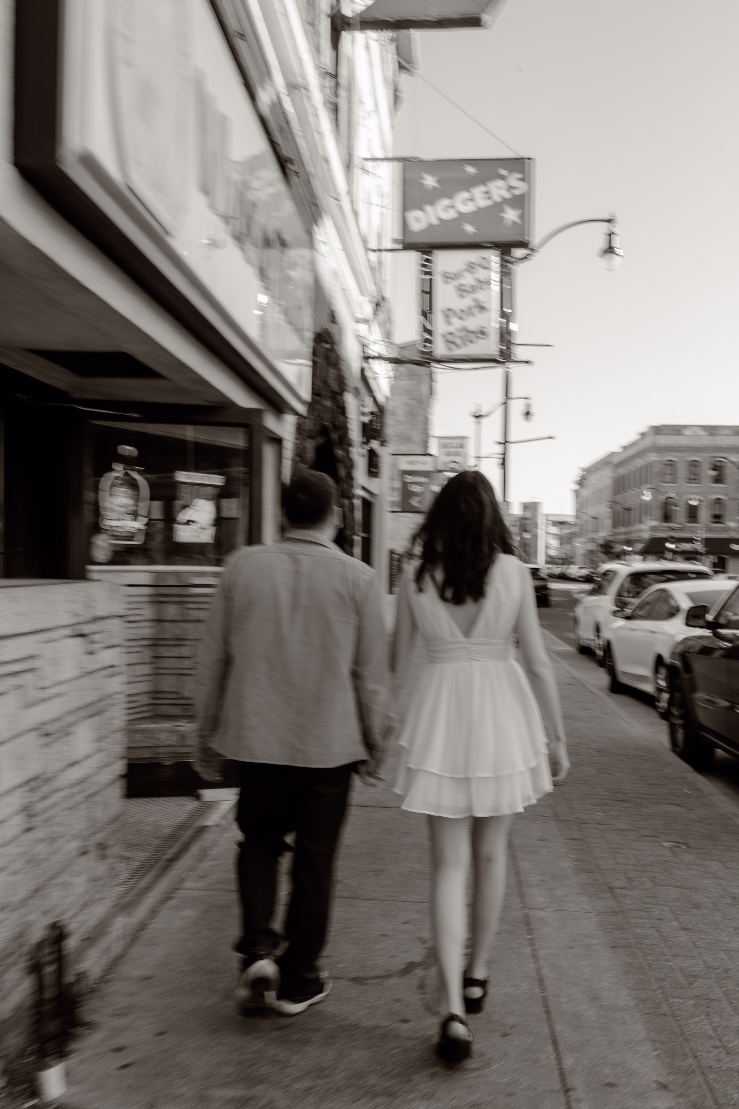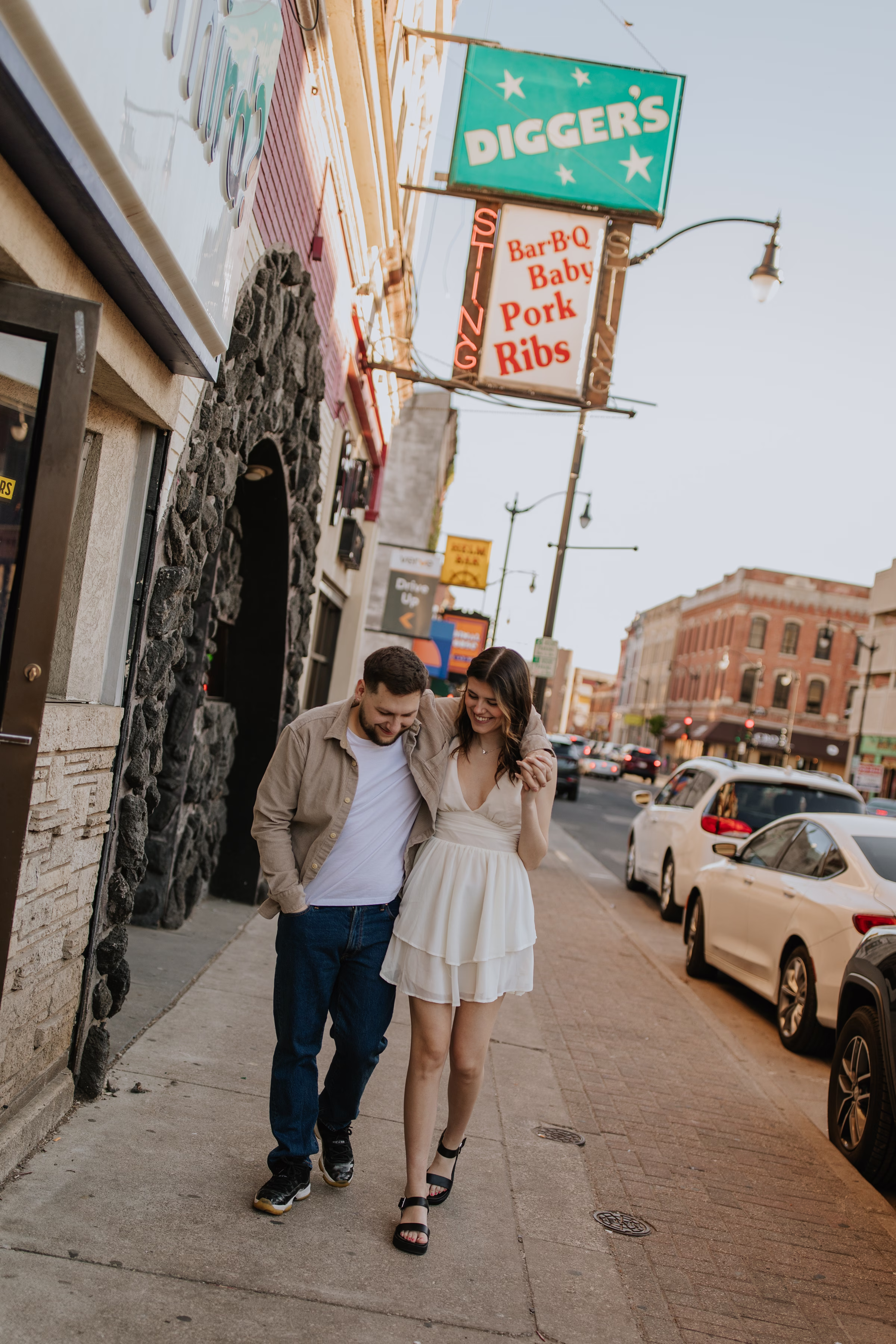 The music themes continued down the street at Deaf Ear Record Exchange, a fun and romantic spot to browse vinyl records, CDs, and collectibles. Afterwards, Marilyn & Jared embraced the small-town architecture, taking photographs along downtown walkways.