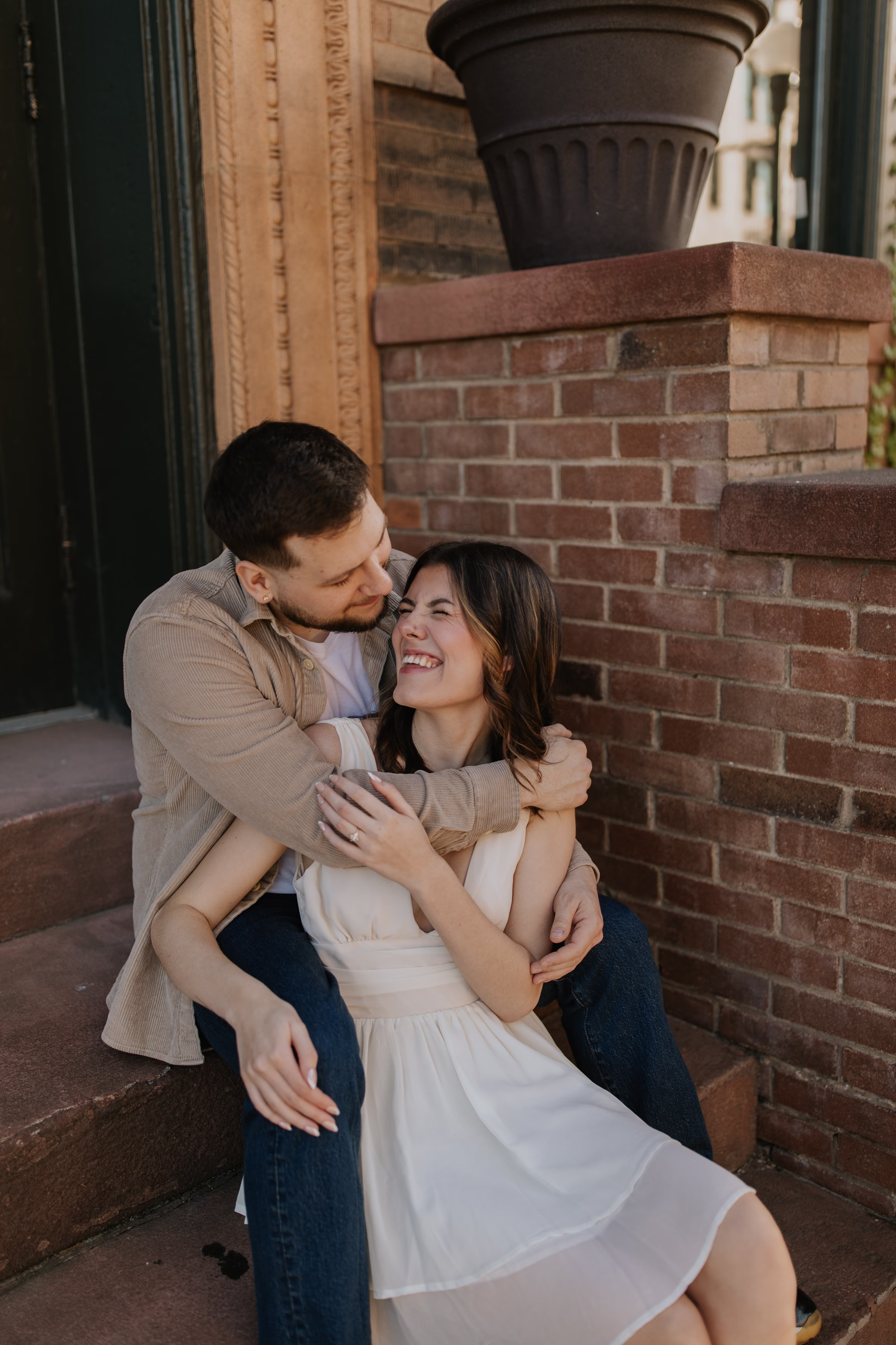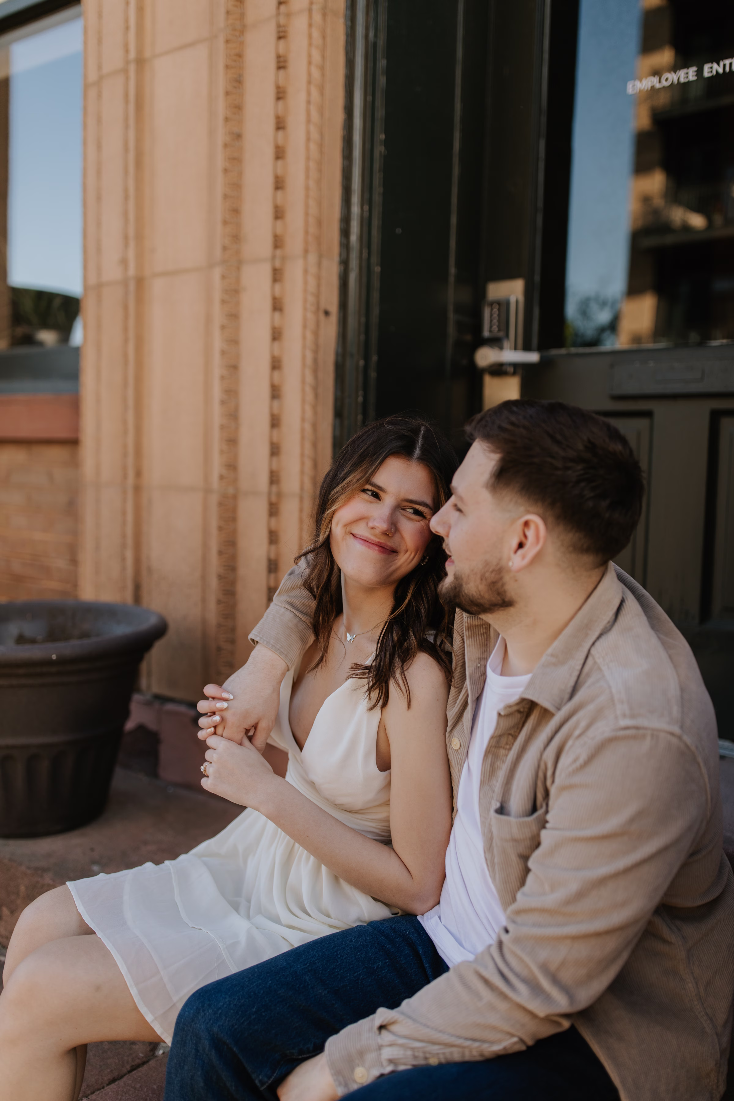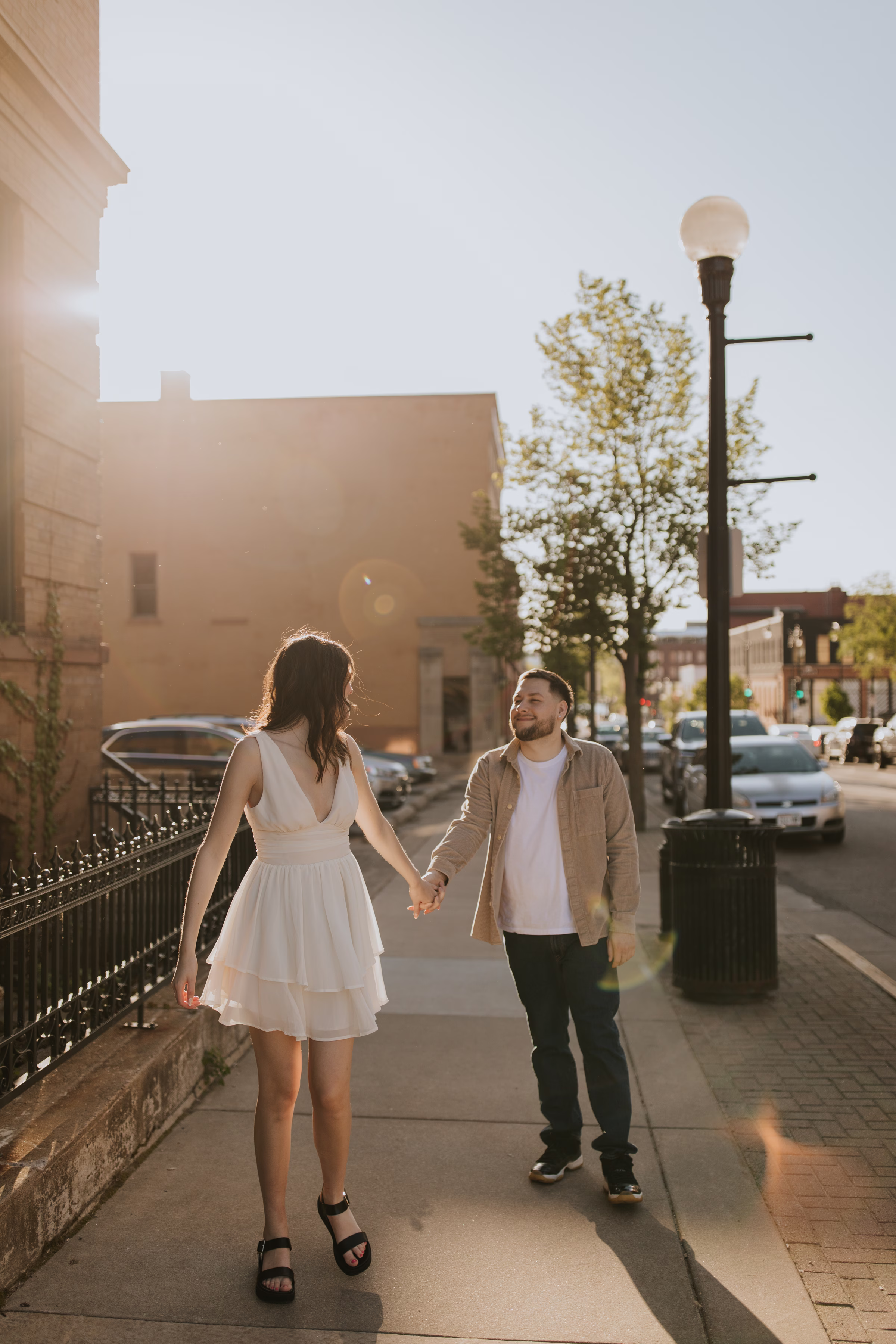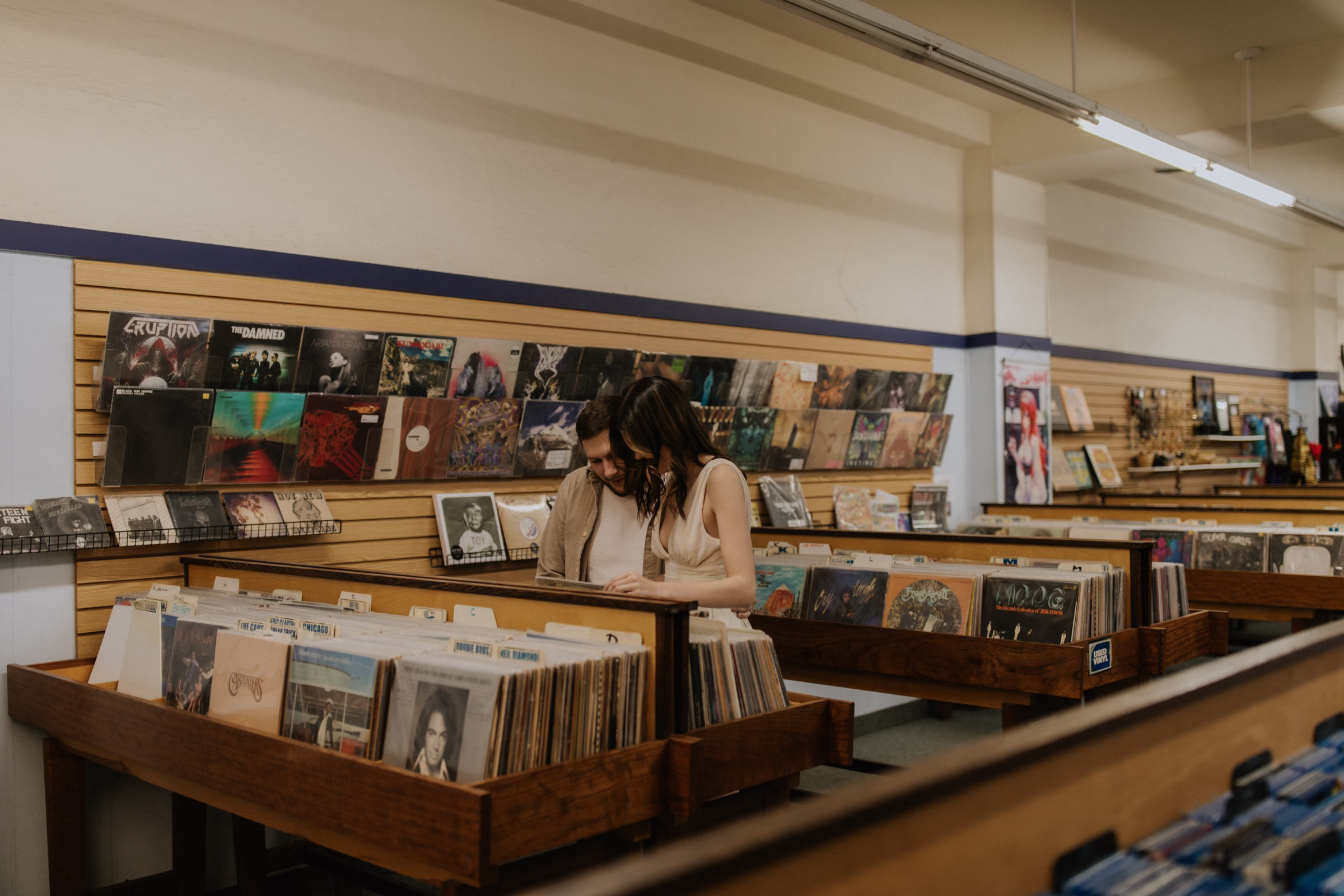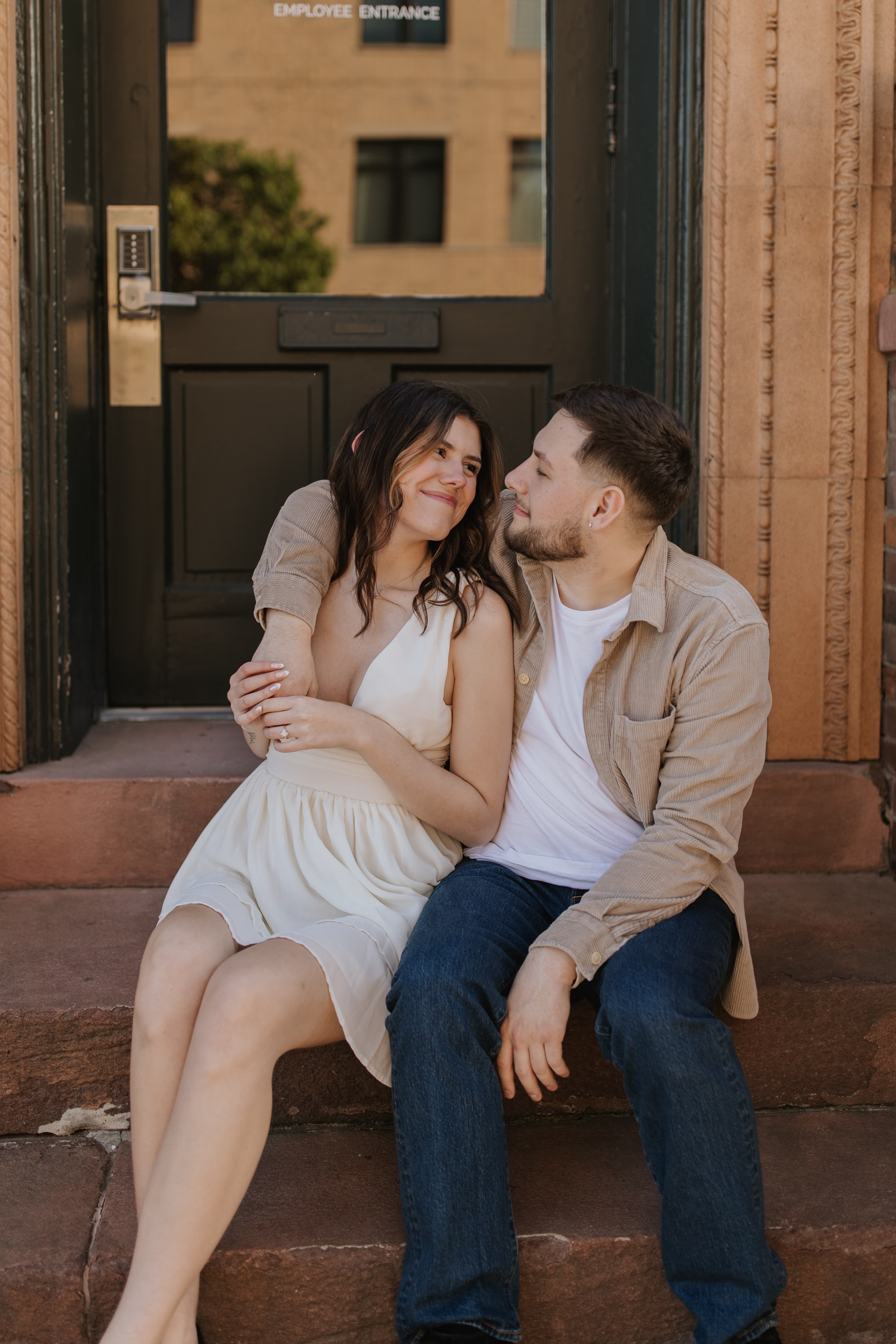 The music themes continued down the street at Deaf Ear Record Exchange, a fun and romantic spot to browse vinyl records, CDs, and collectibles. Afterwards, Marilyn & Jared embraced the small-town architecture, taking photographs along downtown walkways.