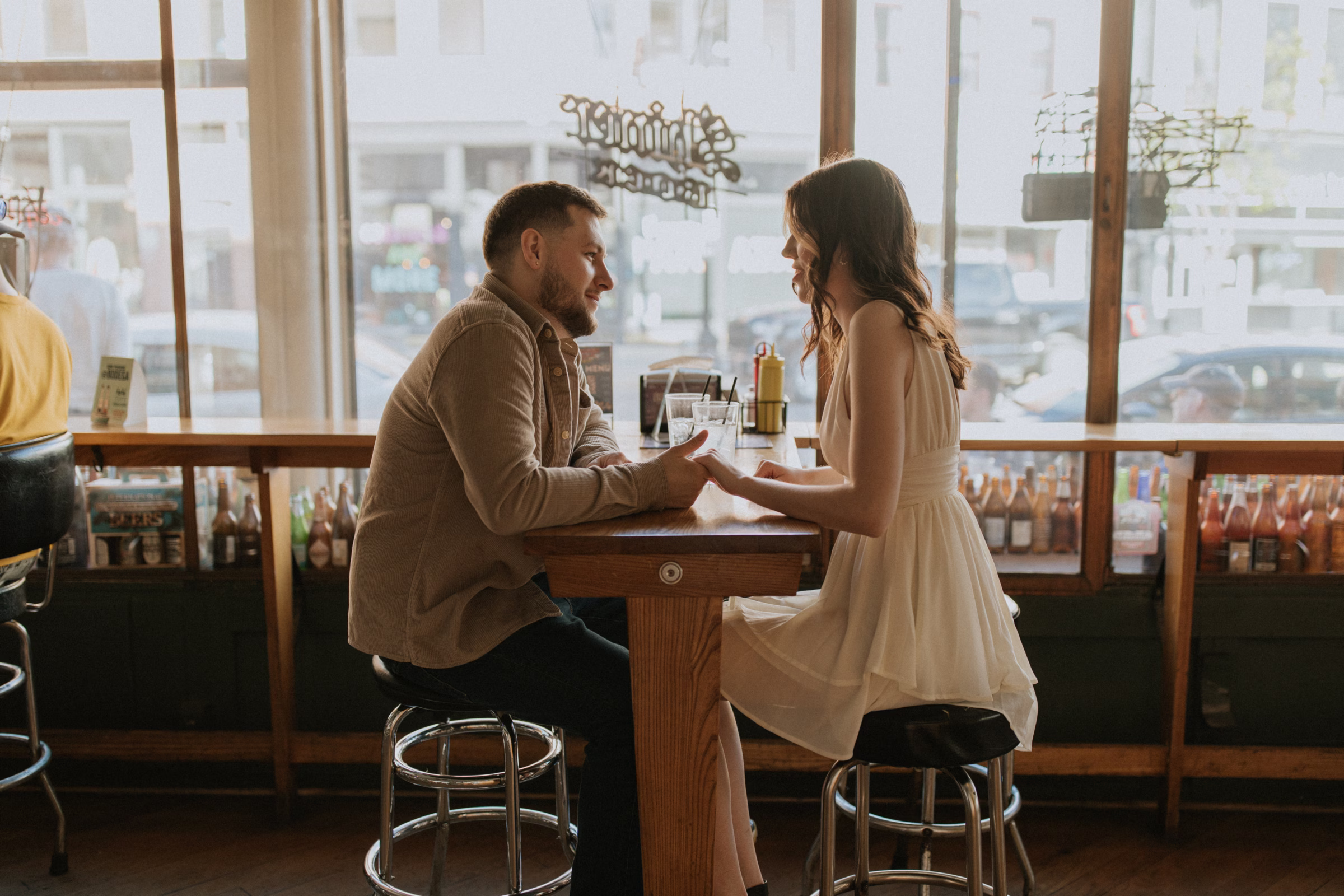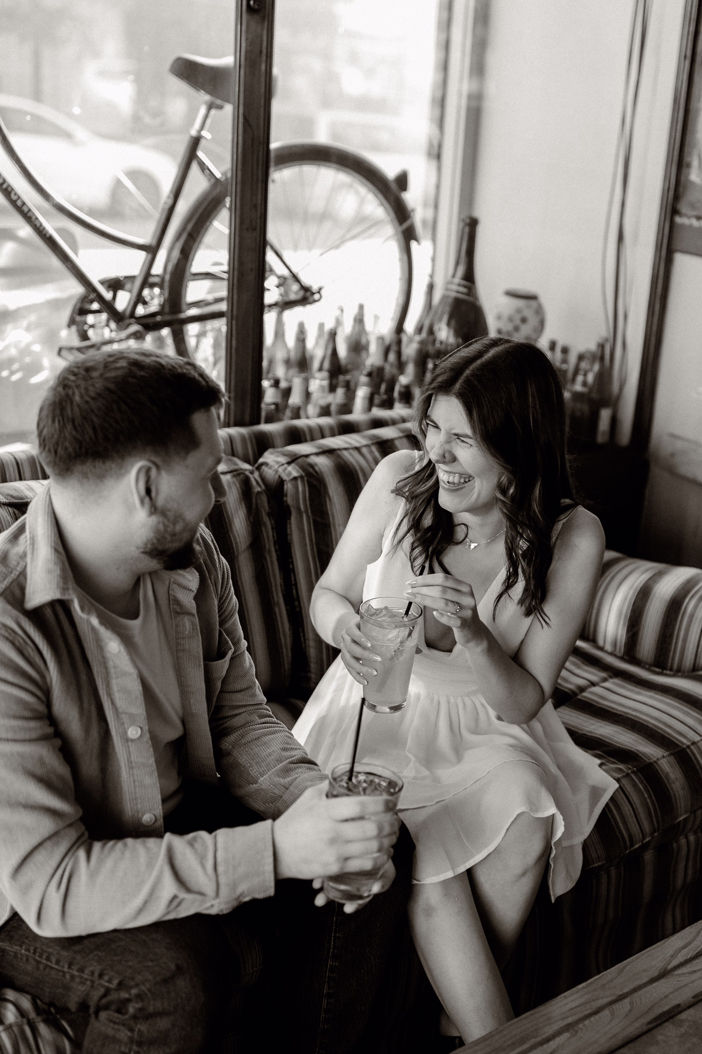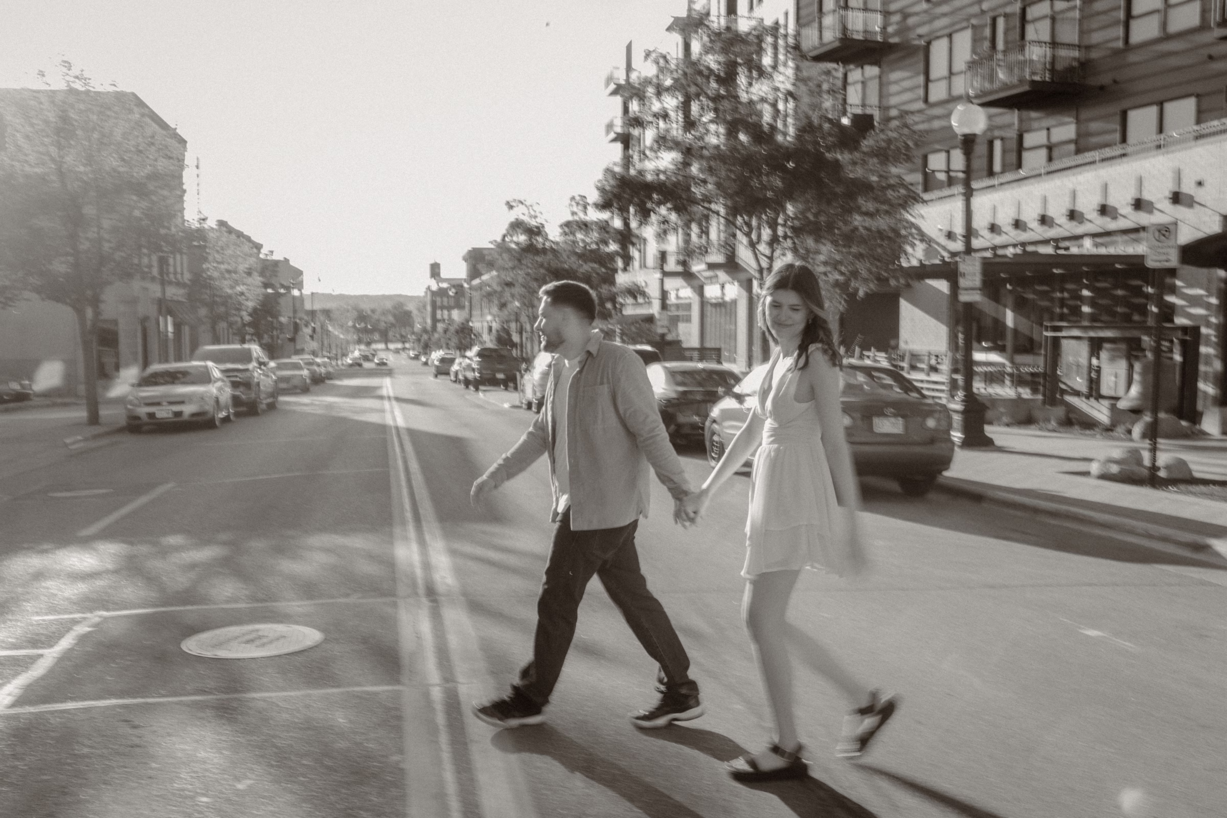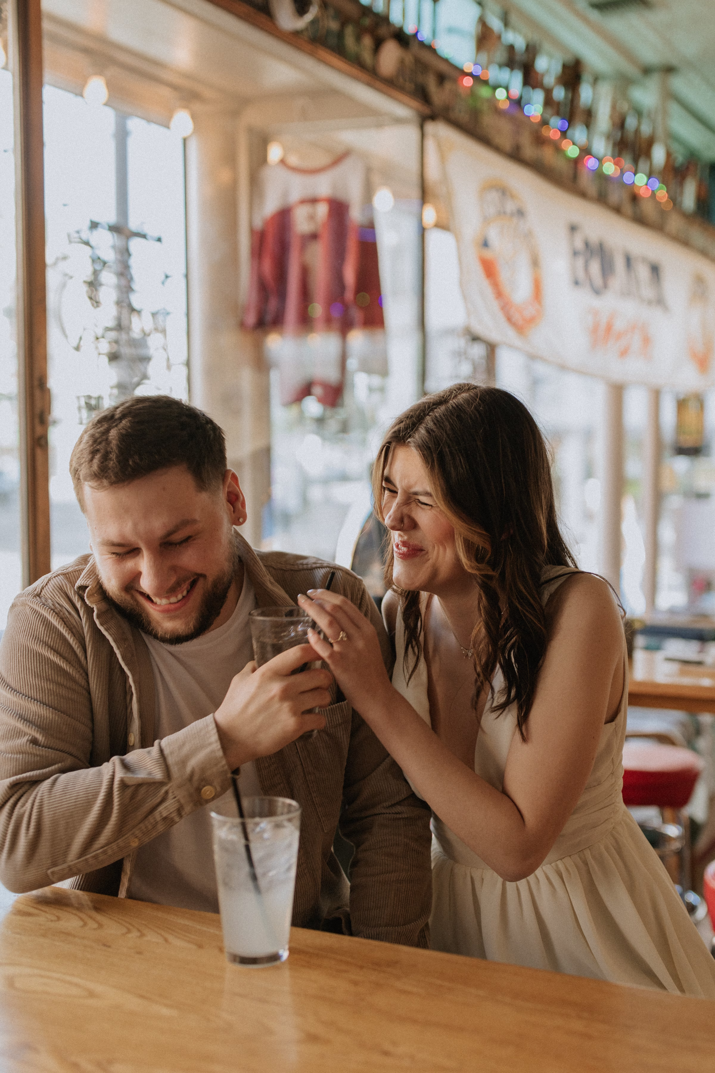 La Crosse, Wisconsin, has many scenic locations, and Marilyn & Jared wanted to include some of their favorites in their engagement photos. They began at Bodega Brew Pub, a cozy space known for drinks, gatherings, and live music.
