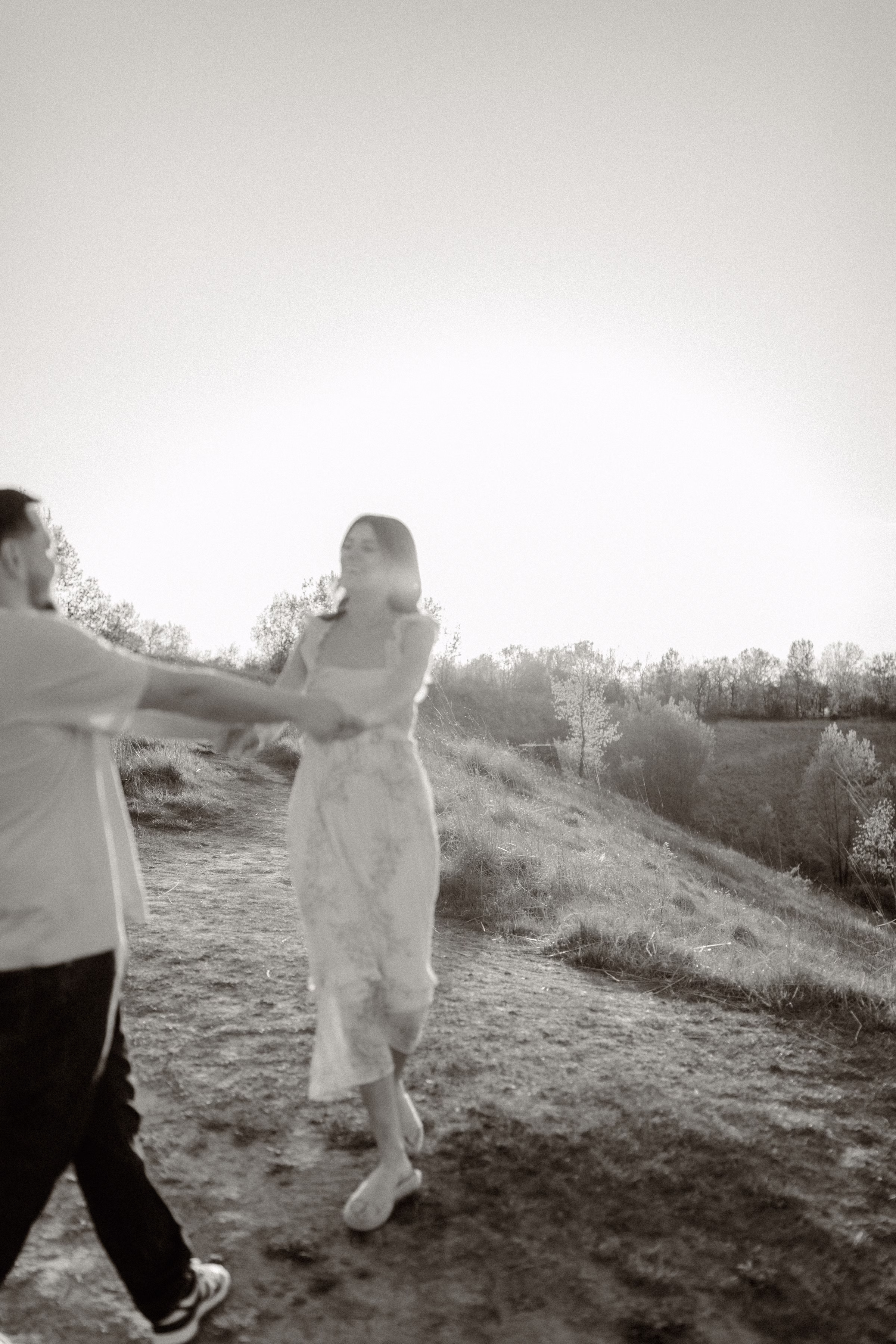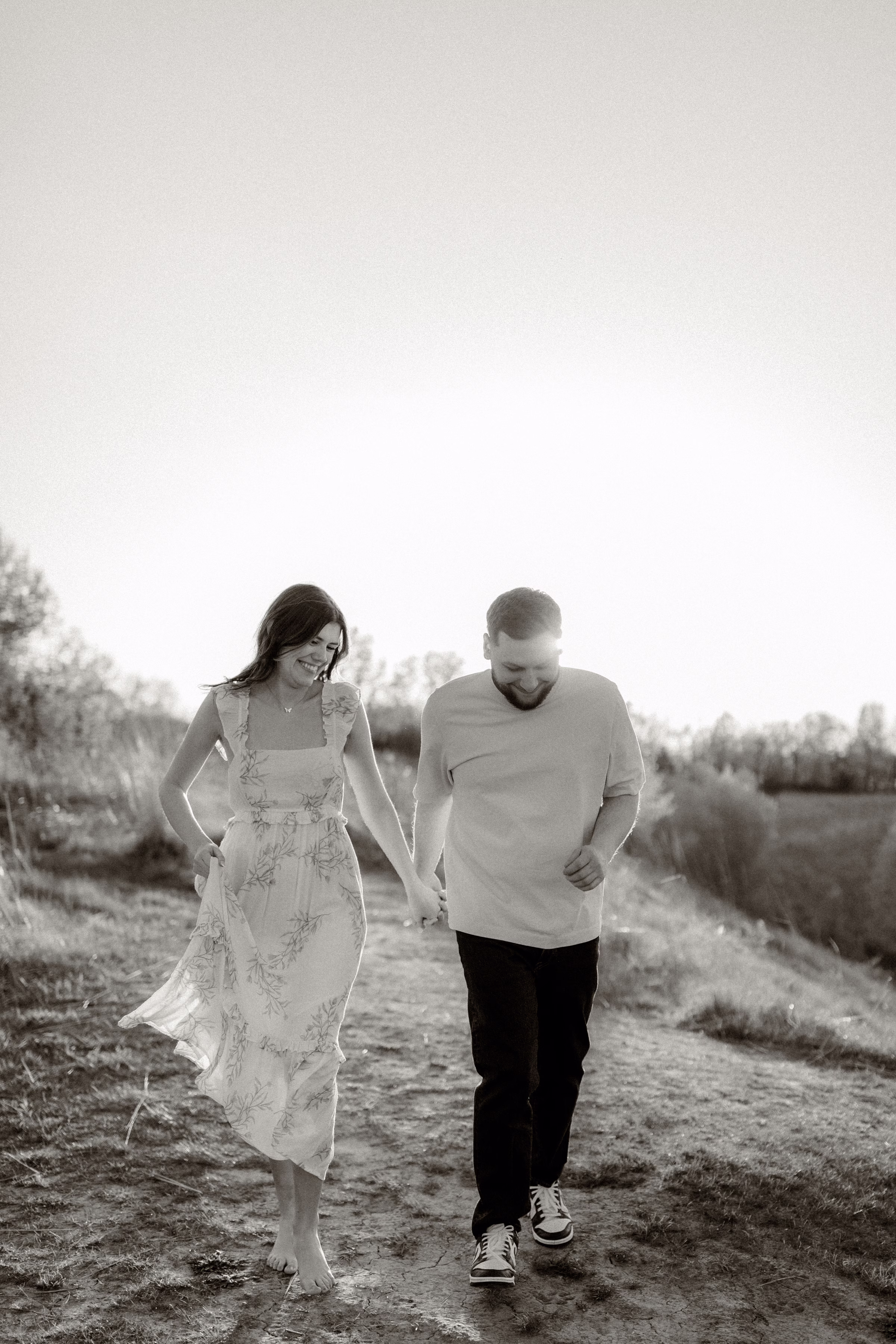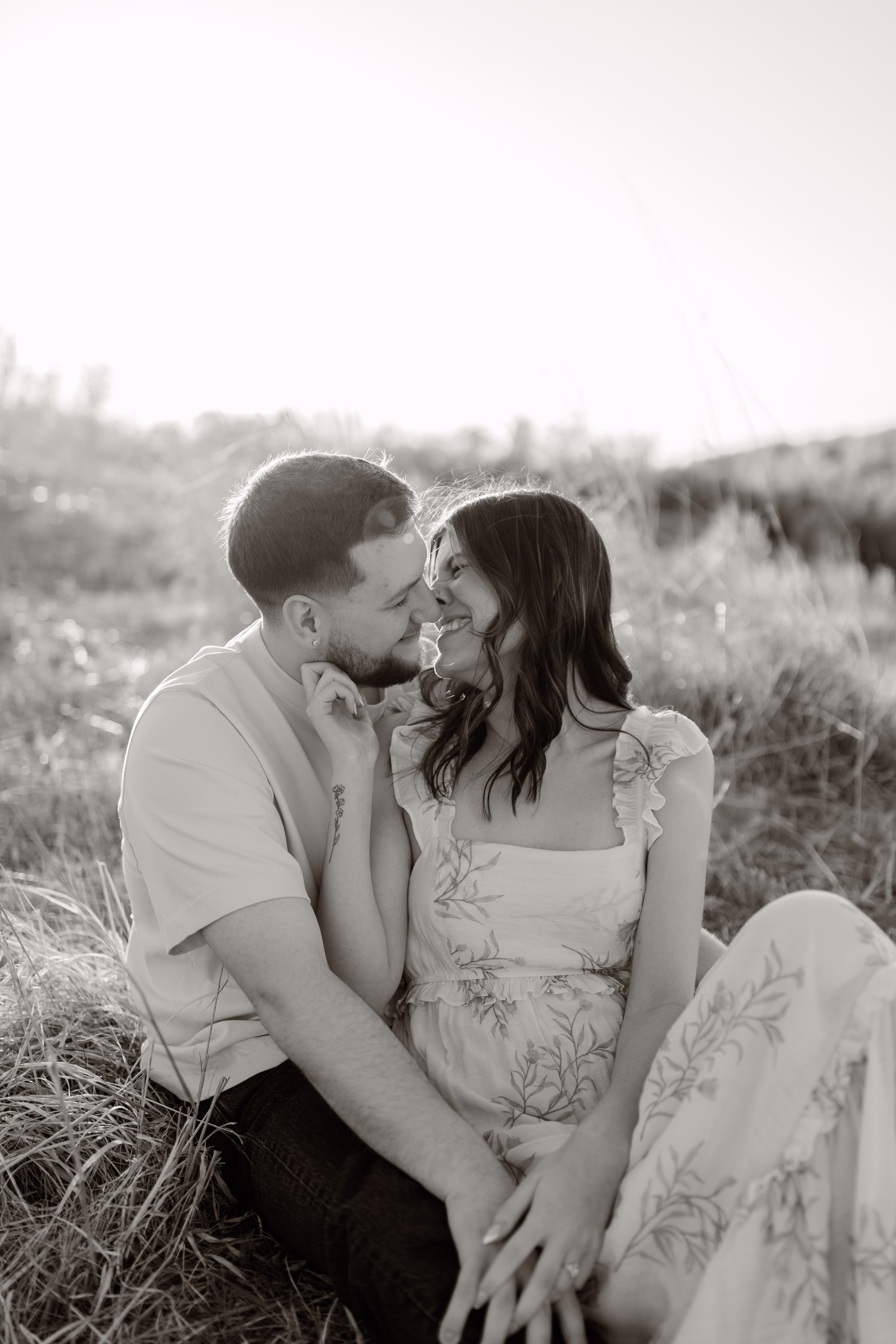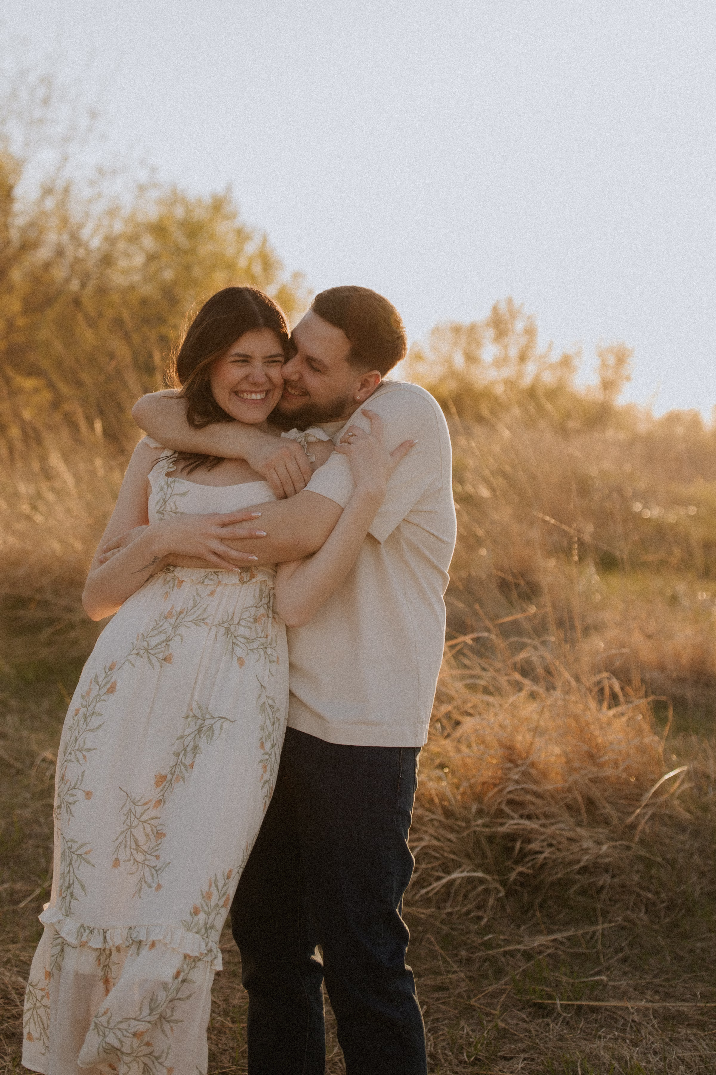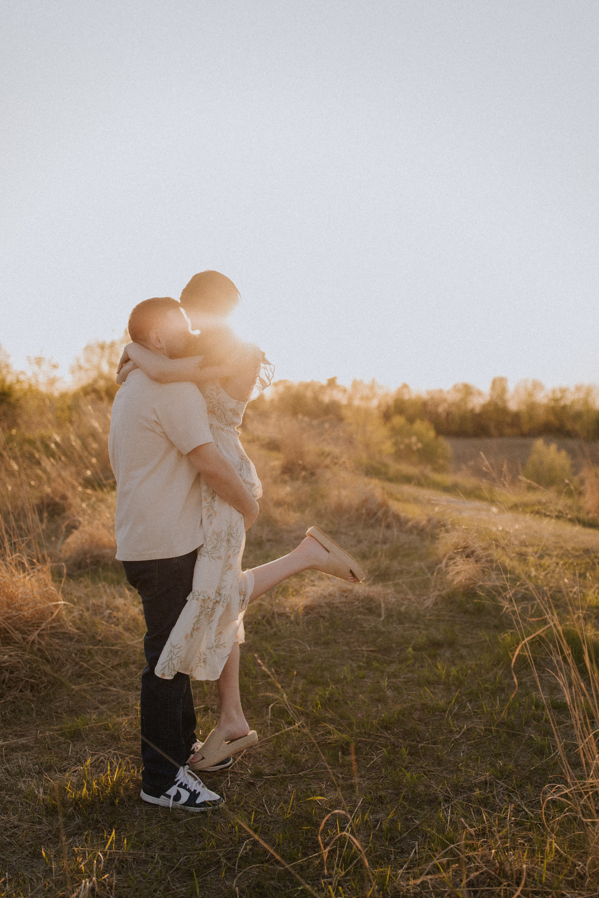 Outfit and location changes are a major consideration in engagement photography. For their final photos, taken at sunset, the couple embraced La Crosse’s beautiful bluffs and rolling hills. Both Marilyn & Jared styled second looks fitting the prairie atmosphere. The results were a combination of joyful, golden hour portraits and sweet, candid moments.