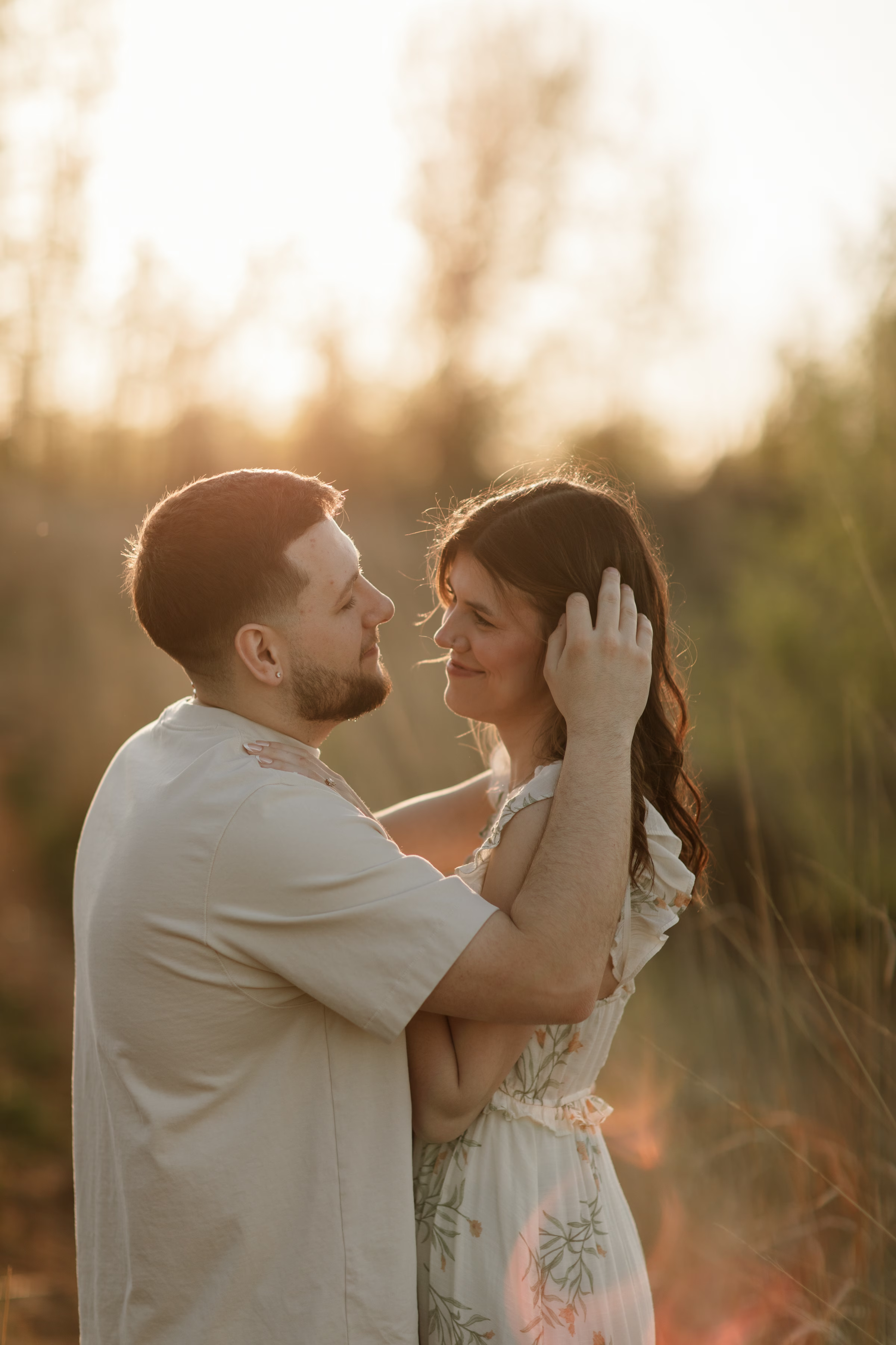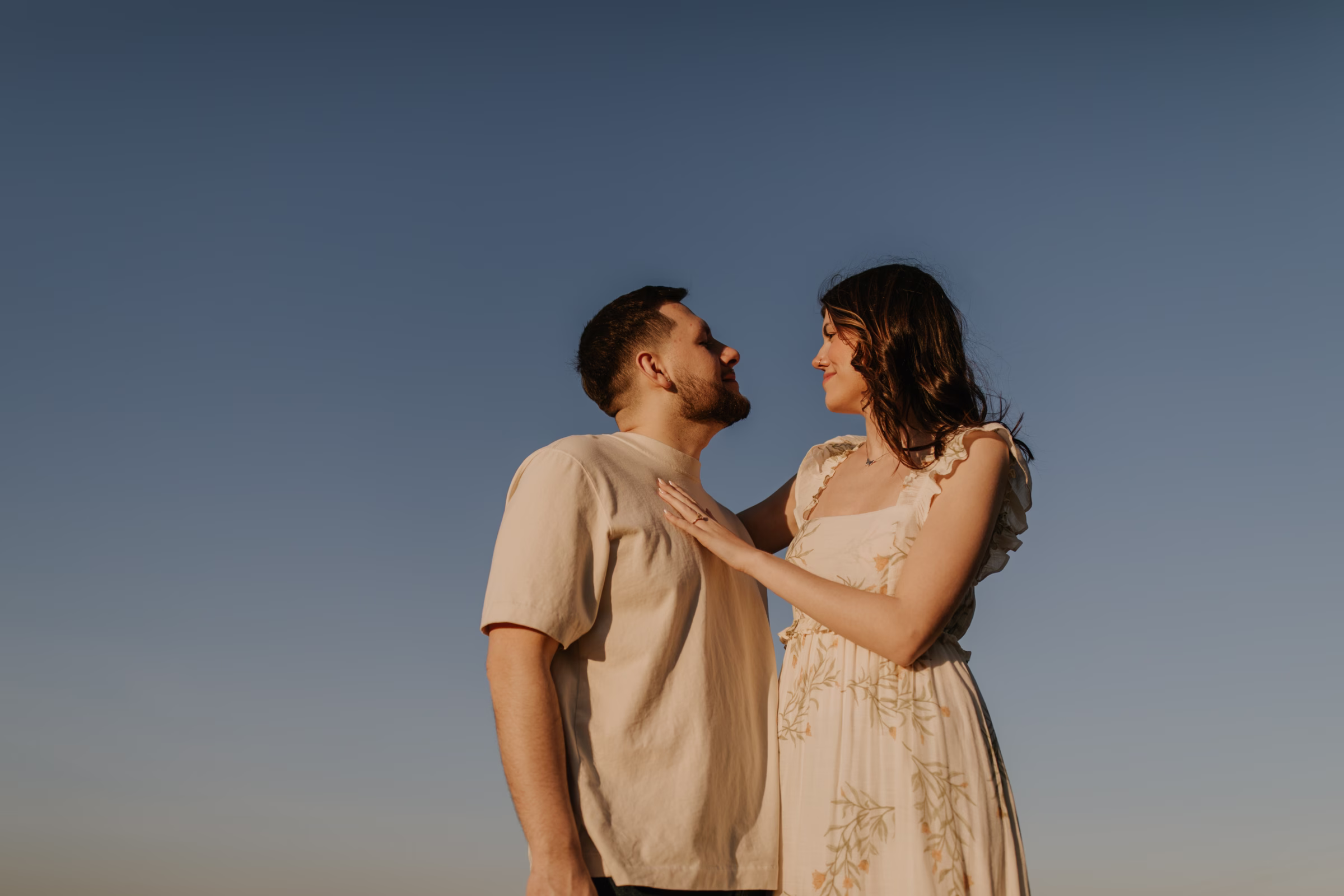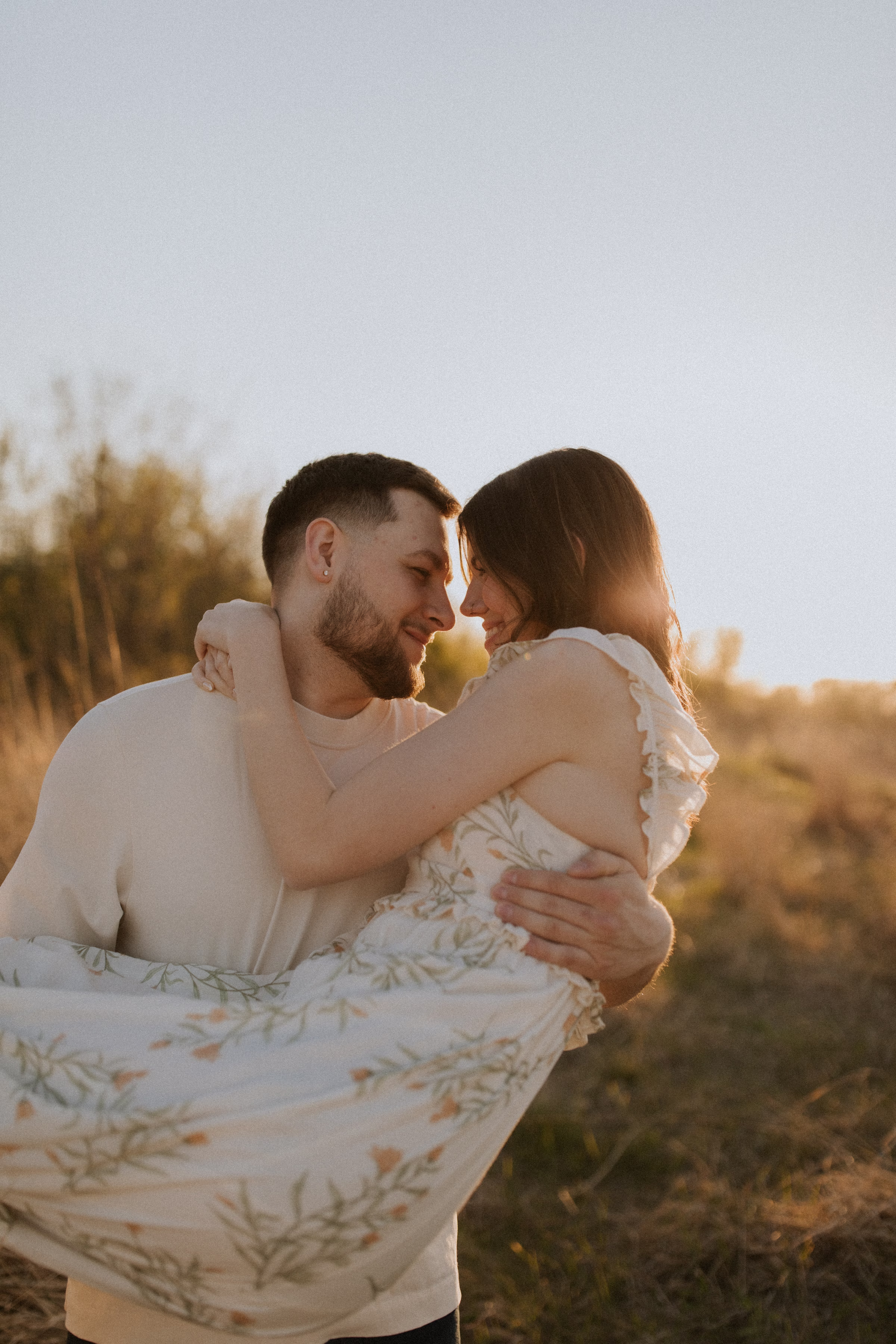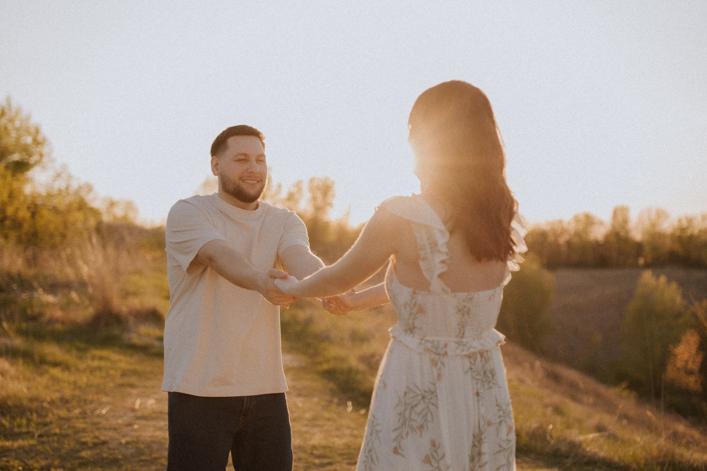 Outfit and location changes are a major consideration in engagement photography. For their final photos, taken at sunset, the couple embraced La Crosse’s beautiful bluffs and rolling hills. Both Marilyn & Jared styled second looks fitting the prairie atmosphere. The results were a combination of joyful, golden hour portraits and sweet, candid moments.