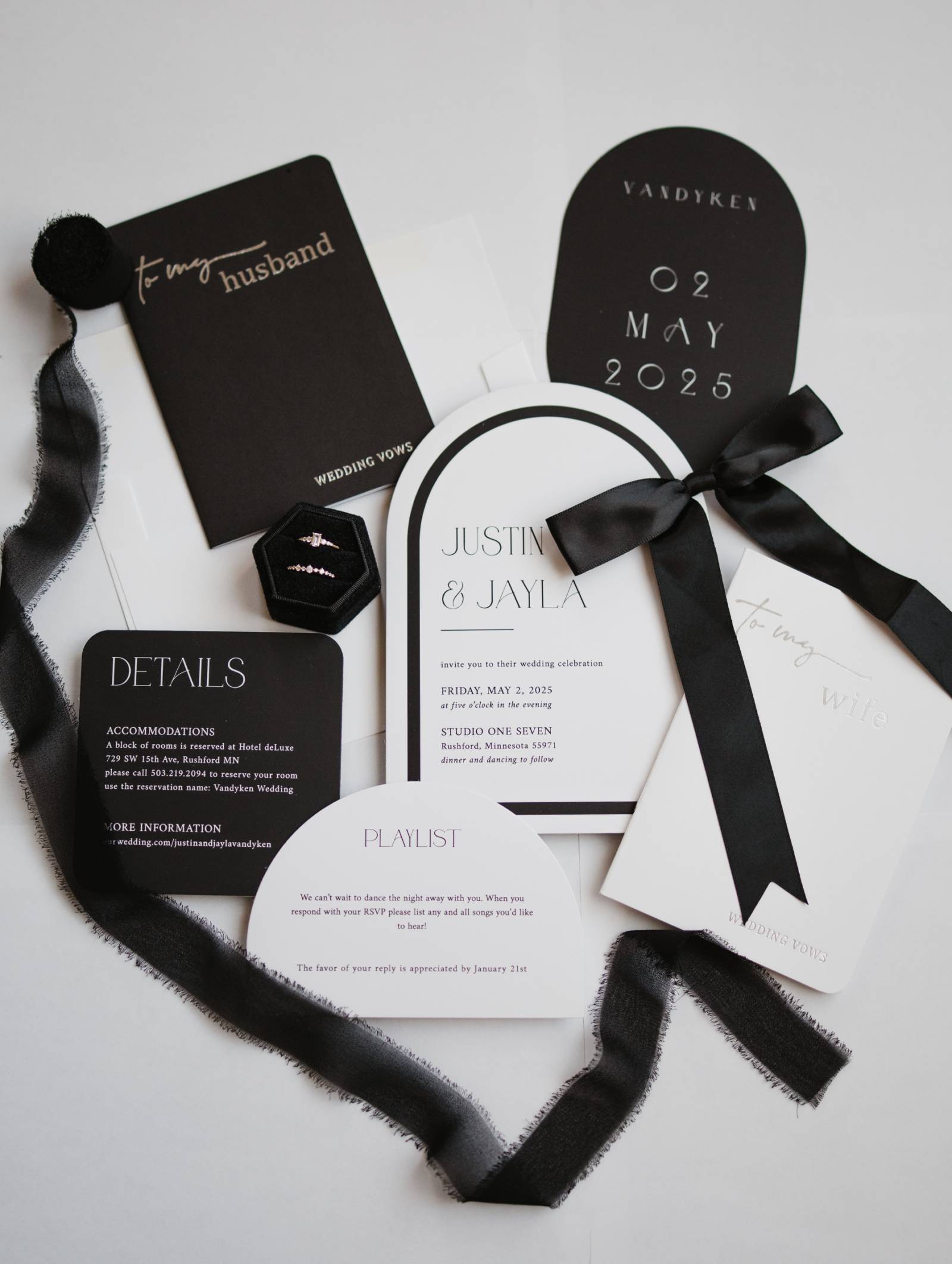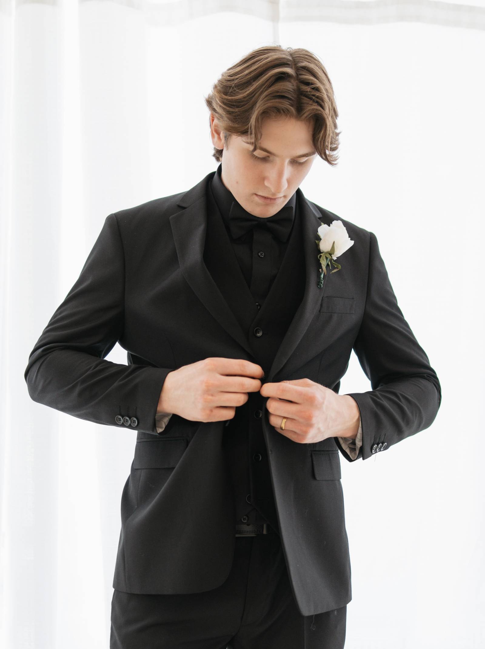 Abigail Peters Photography is dedicated to capturing life’s most precious moments. For this Modern Black Tie editorial, she focused on details, authentic moments, and a natural editing style to showcase her approach to timeless, elegant wedding-inspired imagery.